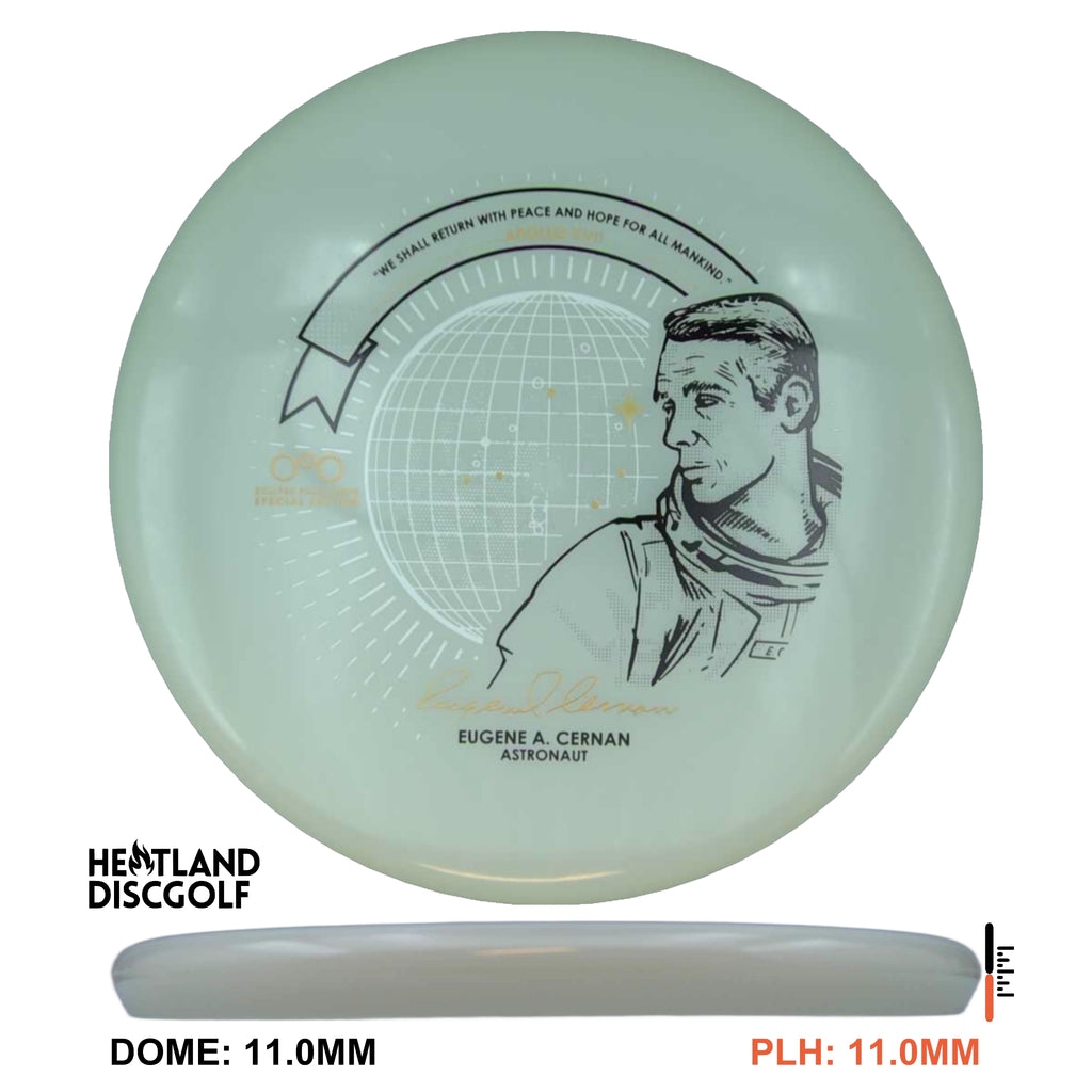 In late 2022 we gave one lucky GYROnaut, Mike Stachyra, the chance to help design a stamp with MVP Disc Sports Art Director, Mike Inscho. It’s taken us a long time, but we are incredibly proud to unveil the Special Edition Color Glow Eclipse Parachute – featuring a tribute to Astronaut Gene Cernan, part of the Apollo 17 mission, and the last man to set foot on the moon.