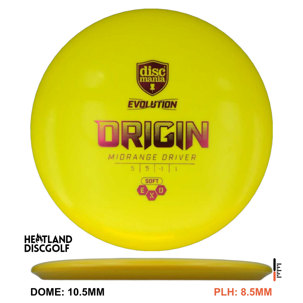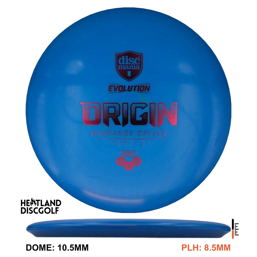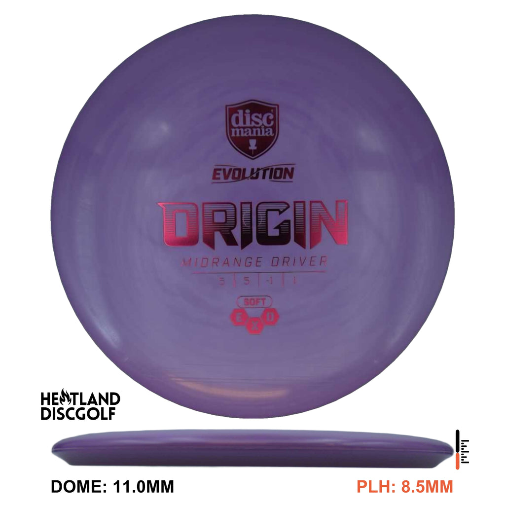 The Origin from from our Evolution product line is a smaller diameter midrange with big potential. It is fairly understable at high speeds, making a perfect ally for long turnover shots and precise, laser straight lines when thrown with control. It will thrive in tailwinds, wooded fairways, and calmer conditions out on the course. This disc has a lot to offer to all skill levels!