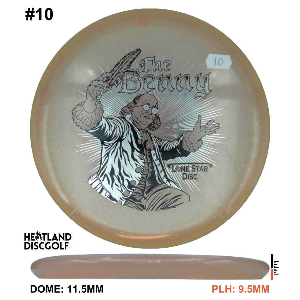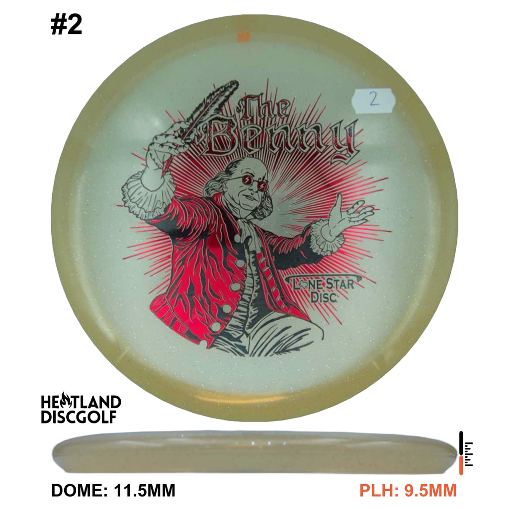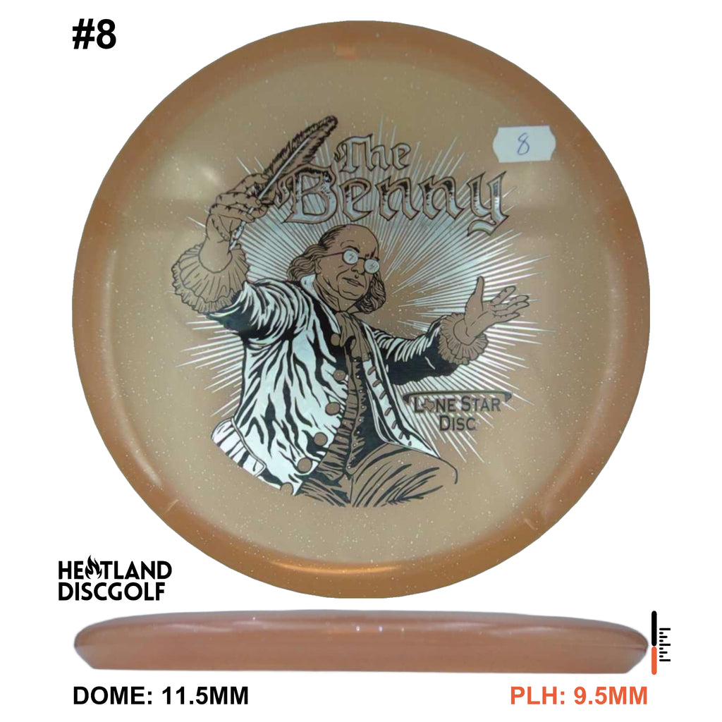 The Benny is a beaded, straight-to-stable complement to our flagship Penny Putter. It promises a consistent and straight flight with a touch a reliable fade at the end of its flight: an ideal throwing putter.