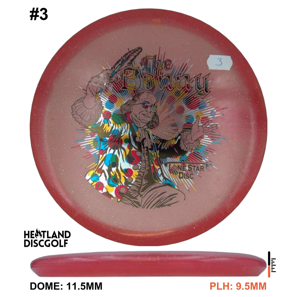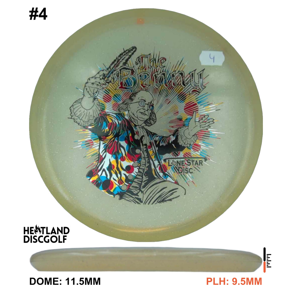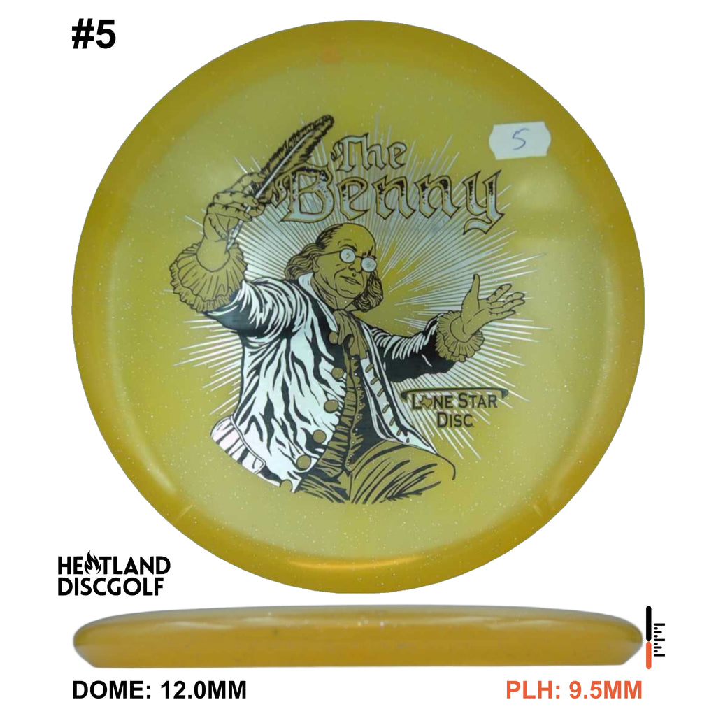 The Benny is a beaded, straight-to-stable complement to our flagship Penny Putter. It promises a consistent and straight flight with a touch a reliable fade at the end of its flight: an ideal throwing putter.