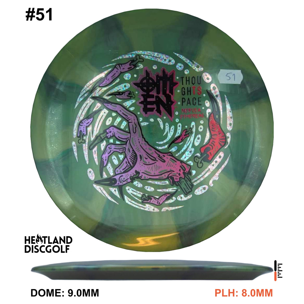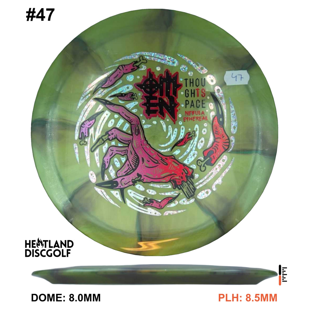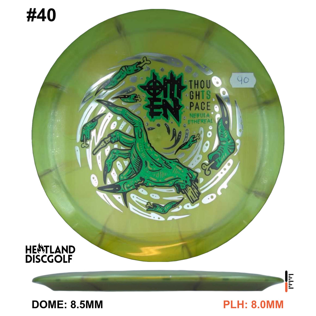 The Omen is an overstable 9-speed driver from Thought Space Athletics. If you need a solid, hard fade when throwing side-arm, backhand, or overhead, you can always count on the Omen. It is an excellent overstable utility driver and a pre-level, high-performance disc for power throwers.