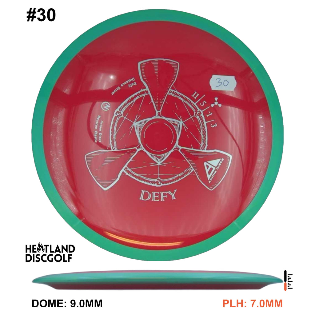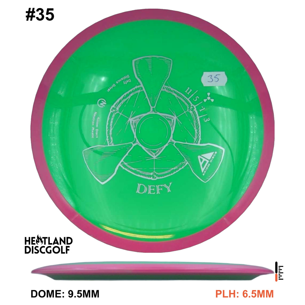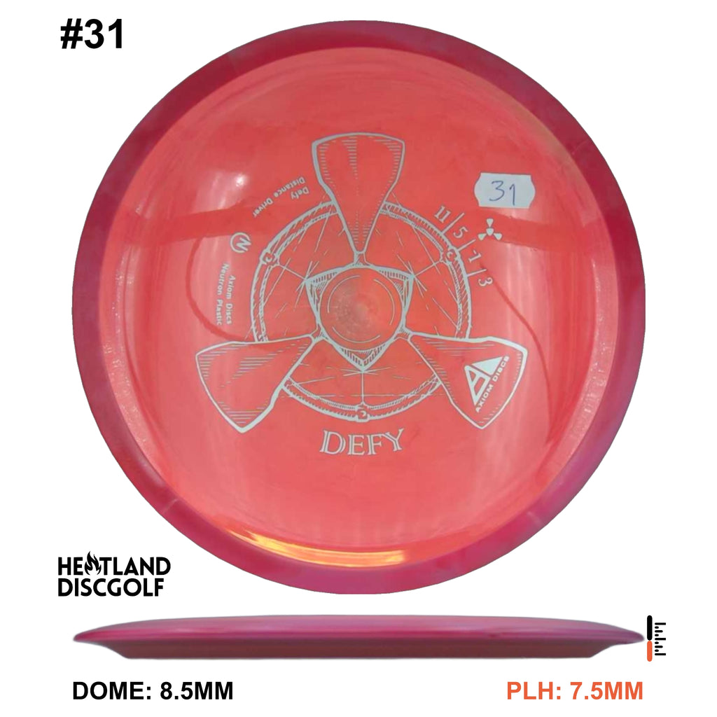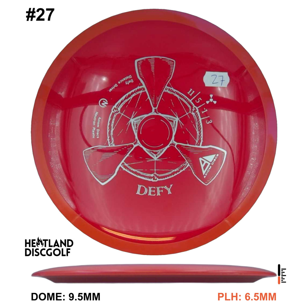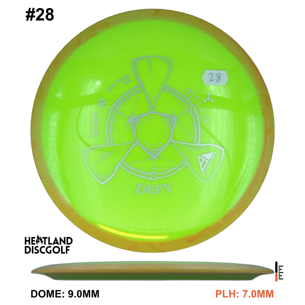 The Defy is straight with a nice bite of overstability at the end, and is best described as a heavily seasoned MVP Photon or a longer Axiom Crave. Like the Crave the Defy exhibits remarkable resistance to turnover even at high power. Players seeking a long straight power driver will appreciate the line-locking tendencies of the Defy, and throwers not fully powering the Defy will still get a highly useable long overstable disc.