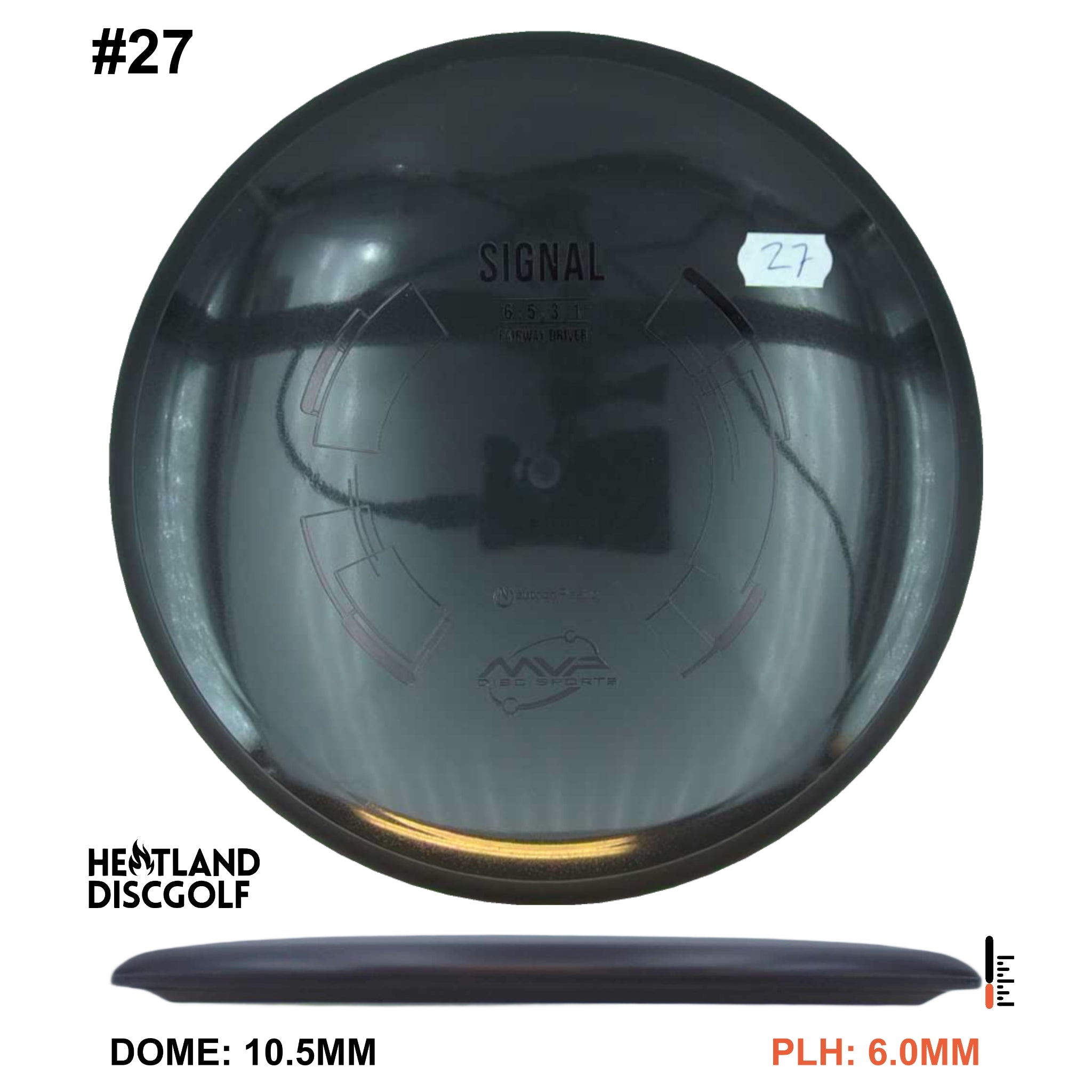With a narrow 16mm rim and a significantly understable flight profile, the Signal will be the easiest-throwing MVP driver for a beginner. While beginners and developing players will enjoy an easy straight flight, expert throwers will need to dial it down or turn on their expert mode. Thrown at high power, the Signal begs for lines to be worked through hyzer-flips and height adjustments, yielding everything from laser beams to smooth turns. On wooded courses the Signal can be manipulated onto a variety of dynamic lines, excelling under backhand throws and the cleanest of forehands. For those daring to go the distance, the Signal holds the key to roller city!