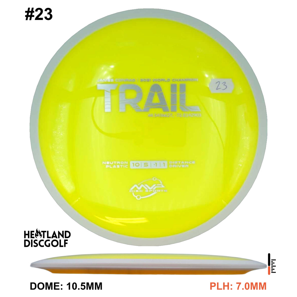 The first official 10-speed driver in the MVP lineup, the Trail is a stable-understable distance driver that, as you might expect of a Conrad disc, excels in hyzer-flip drives and turnovers. Releasing with flight numbers of 10 | 5 | -1 | 1, throwers of all power levels will find the Trail to be an exceptionally responsive driver for a variety of shot shapes, making the Trail a phenomenal disc for all skill levels.