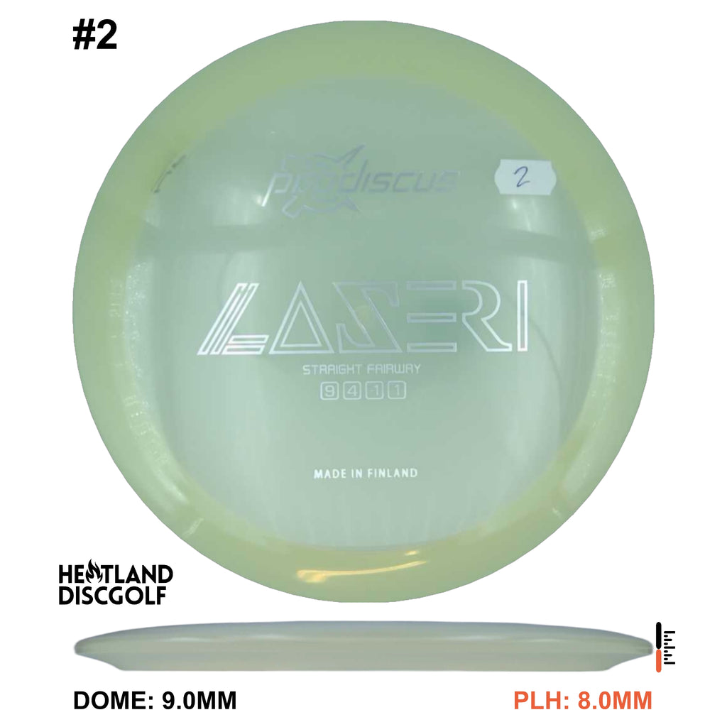 The Prodiscus Laseri is a neutral disc with a flight rating that is similar to the RESPECTi, but not quite as overstable. With the name like “Laser” you’d expect this disc to be a fast, straight-flyer -- and it delivers.