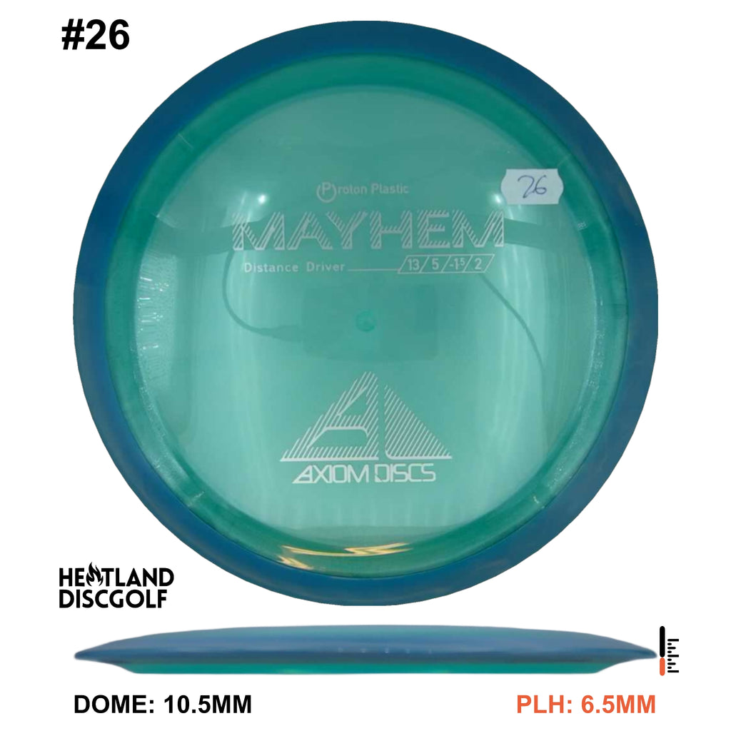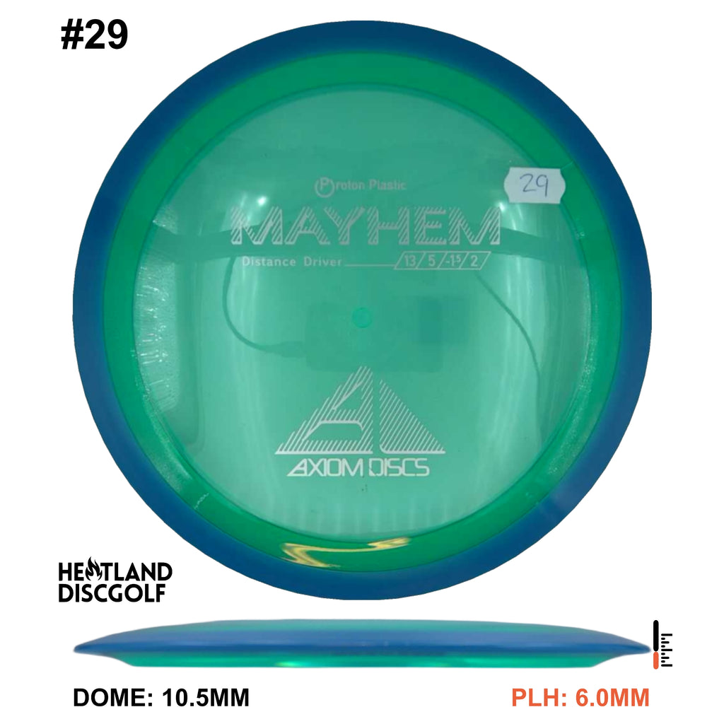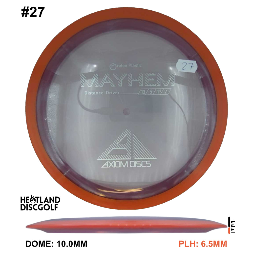 Mayhem has a responsive straight-stable profile and plenty of speed, making it a perfect workhorse driver for many advanced and expert throwers. Like the MVP 23mm class, the Mayhem has a pronounced dome to promote distance-covering glide. Mayhem is best compared to a beat MVP Octane.