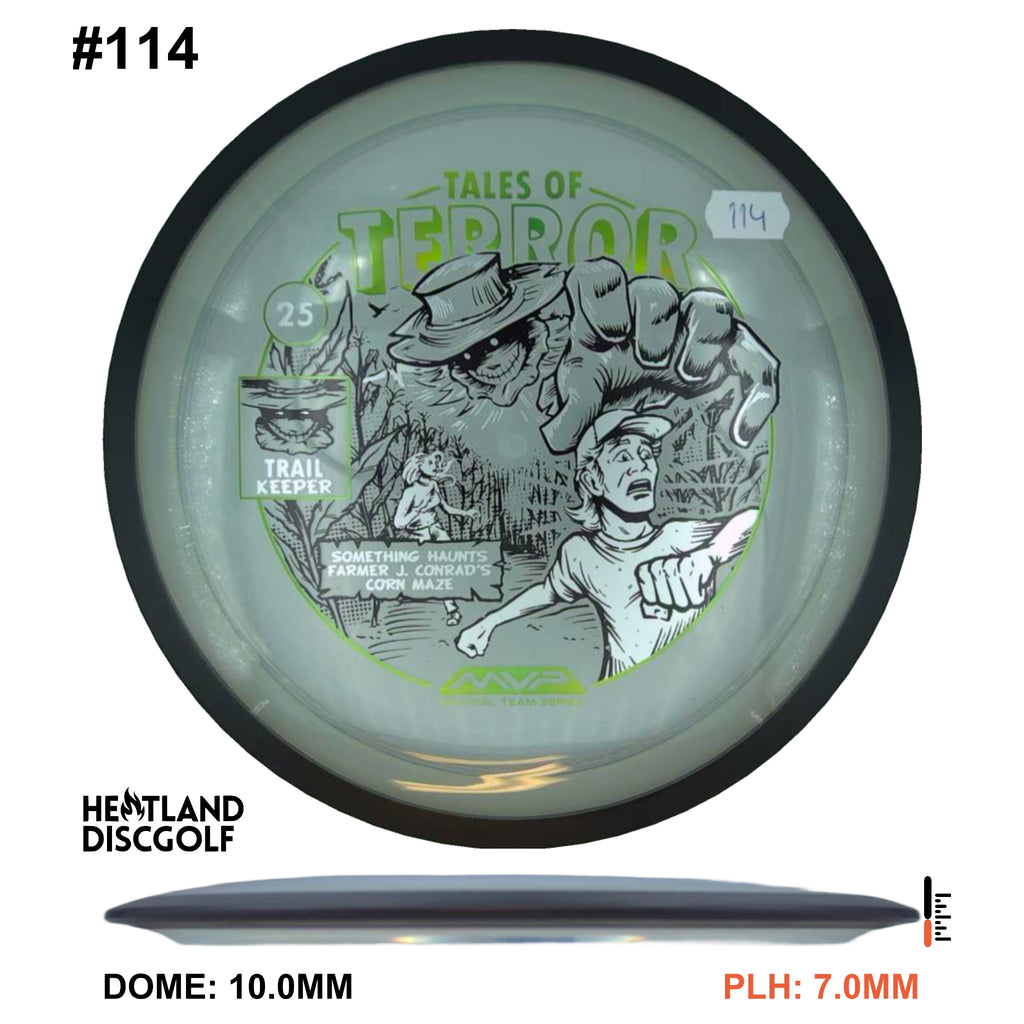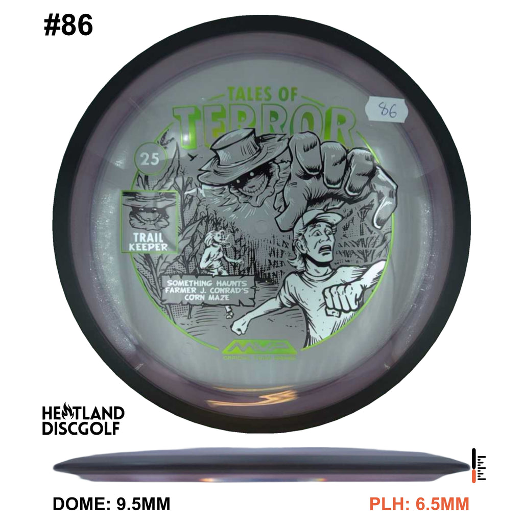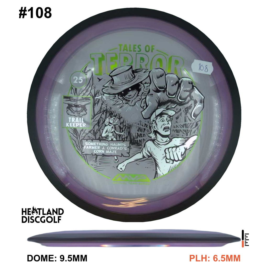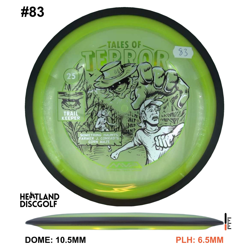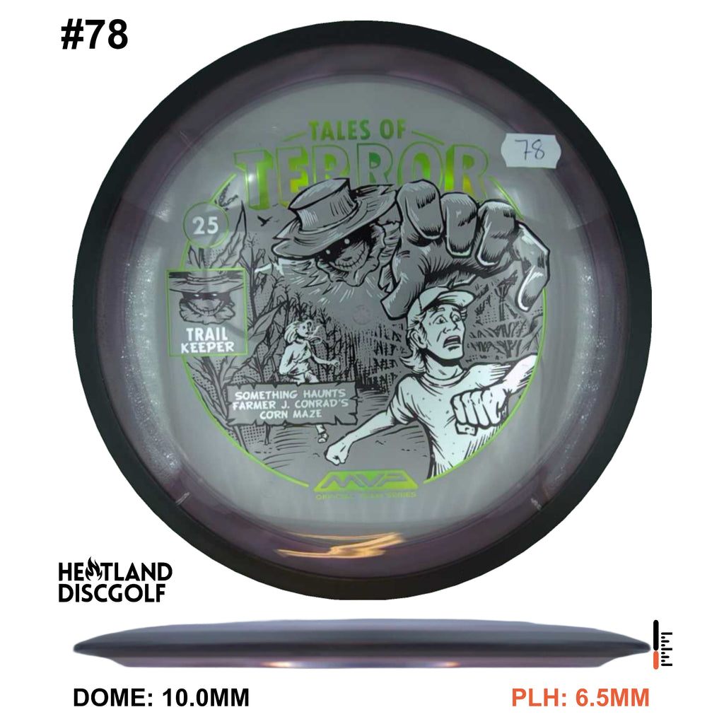 The highly requested fan favorite Proton Trail has returned! Green C Studio adorns this disc with a glimpse of the Trail Keeper haunting Conrad’s Corn Maze, a classic horror story. Excelling in hyzer-flip drives, turnovers, and straight shots, the Trail has become one of the most popular drivers in the MVP lineup that throwers of all power levels will find significant use for. You don’t have to get lost in a killer corn field to get your hands on one of these, just head over to your favorite local or online MVP dealer to get yours today!
