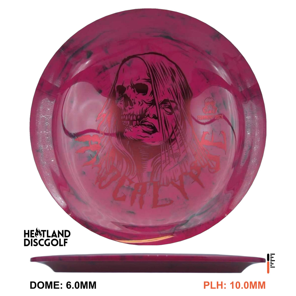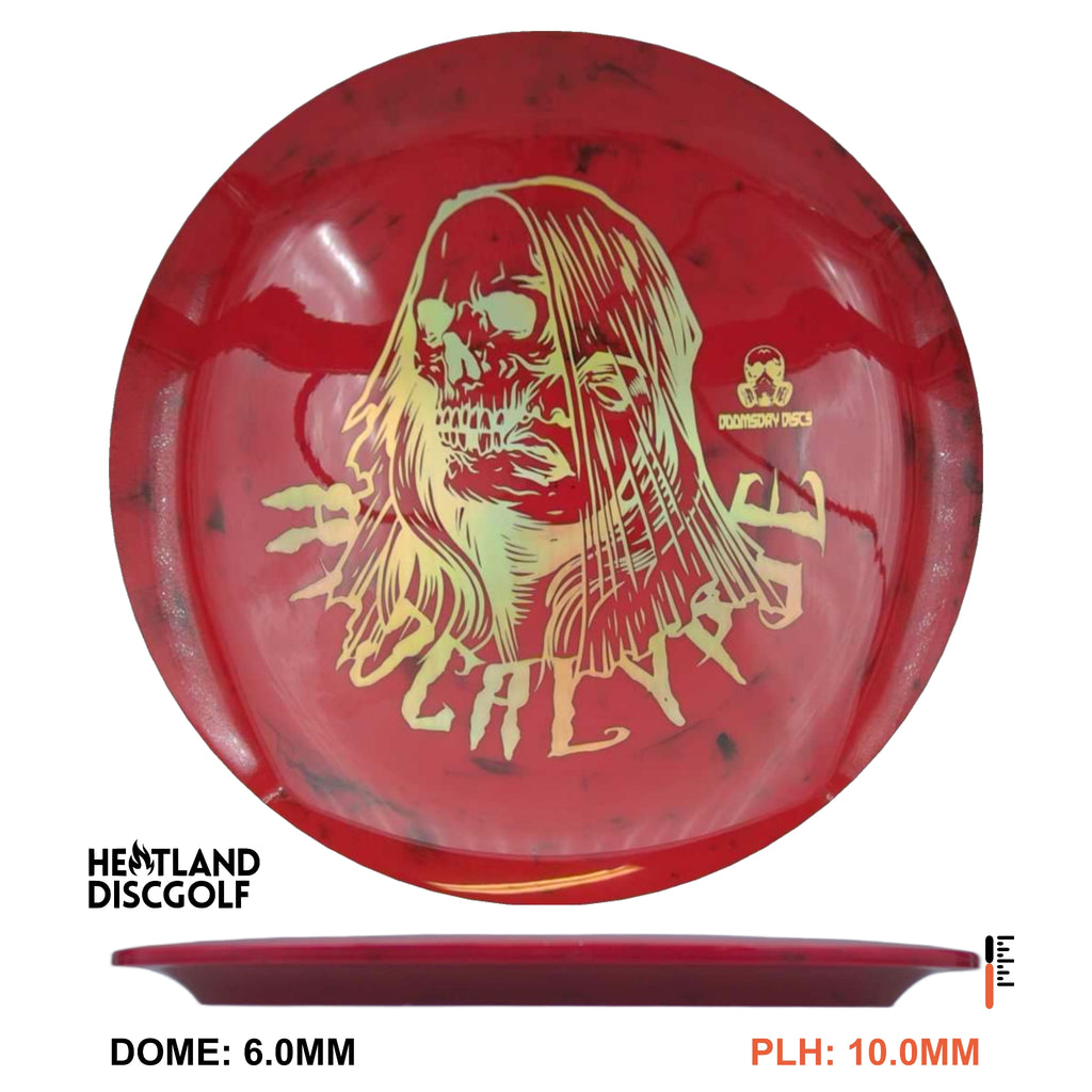 There's not a lot of good ways to describe a disc as massively overstable as the Apocalypse by Doomsday Discs because it reaches new levels of ridiculous. It is an ultra-flat-top, high-speed (wide rim) driver, but with so much fade that it immediately dumps, making it almost a "non-distance" driver. It is 100% a utility driver for when players need a disc to instantly fade, or for overhand throws, or playing into headwinds that are strong enough to blow away small livestock. Watch for this disc to become a conversation piece in videos and reviews, and possibly even a tool for throwing contests throughout the disc golf market.