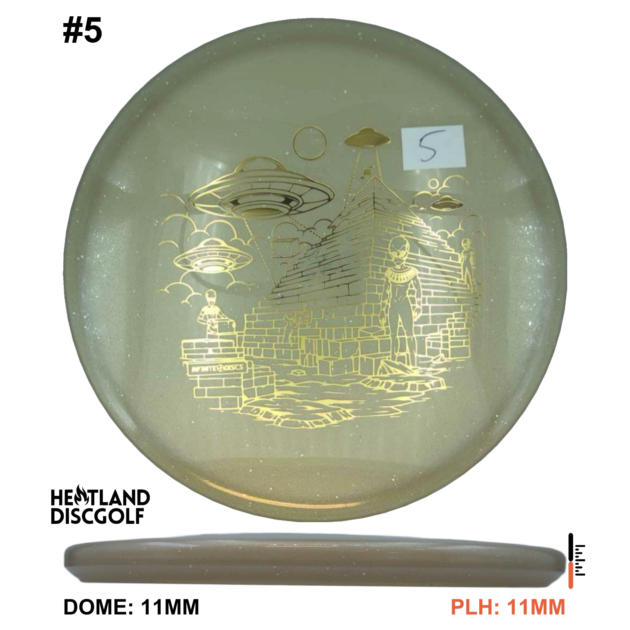 Flight Consistency: Discs made from Stardust plastic maintain their flight characteristics over time, offering predictable performance.This blend is utilized in several Infinite Discs models, such as the Emperor and Tomb, catering to players seeking a combination of durability, grip, and visual flair.