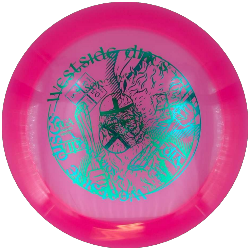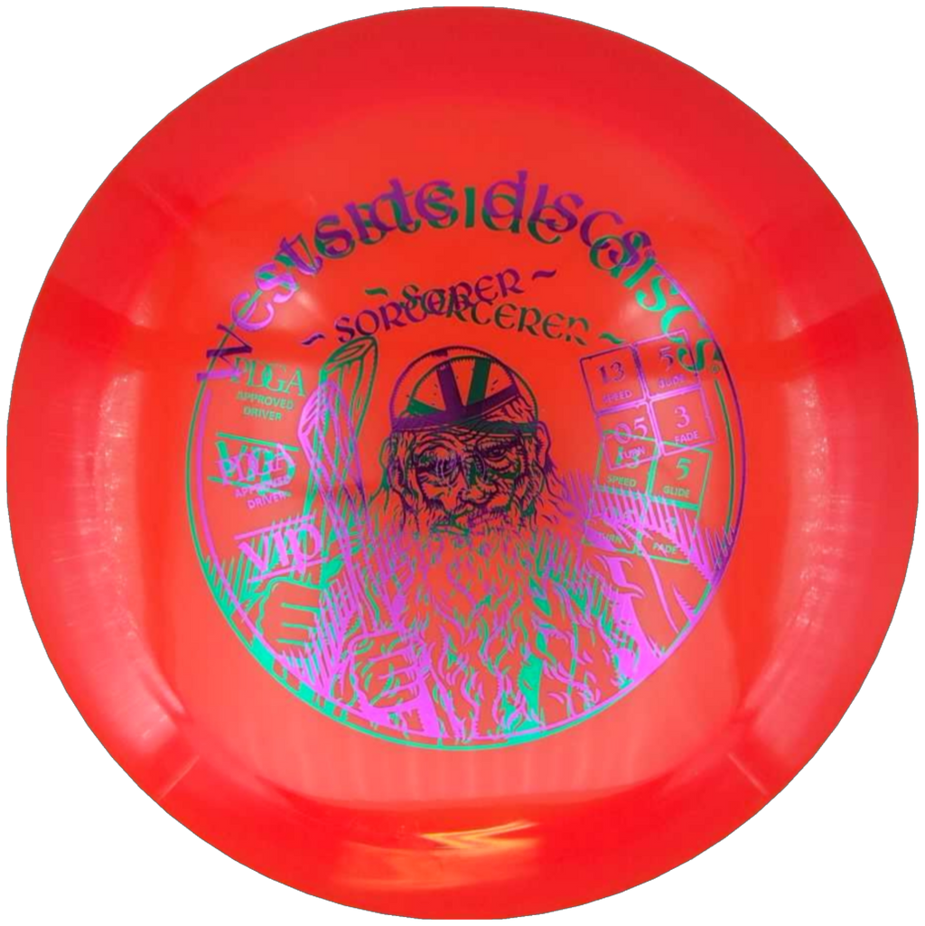 The Sorcerer is Westside's answer for a high speed disc for all skill levels. With a smaller grip than most high speed discs, the Sorcerer leaves the hand fast. For professional players, it is great for long anhyzers that actually come back when it runs out of speed. The Sorcerer provides a nice long “S” curve line. For lower arm speeds, the Sorcerer will actually get flat and glide before diving to the left. Many drivers designed for slower arm speeds have poor flight integrity. The sorcerer will give you that “pro throw” you have been looking for on the course.