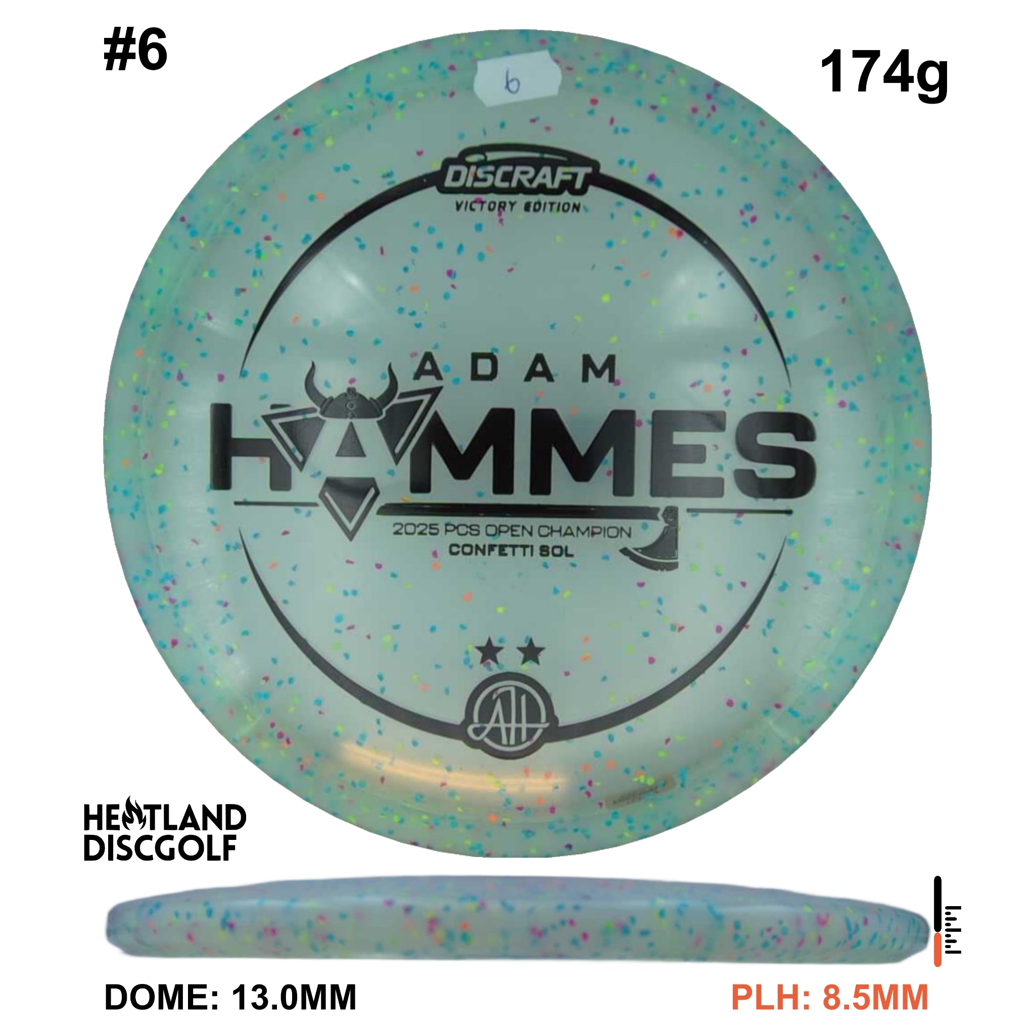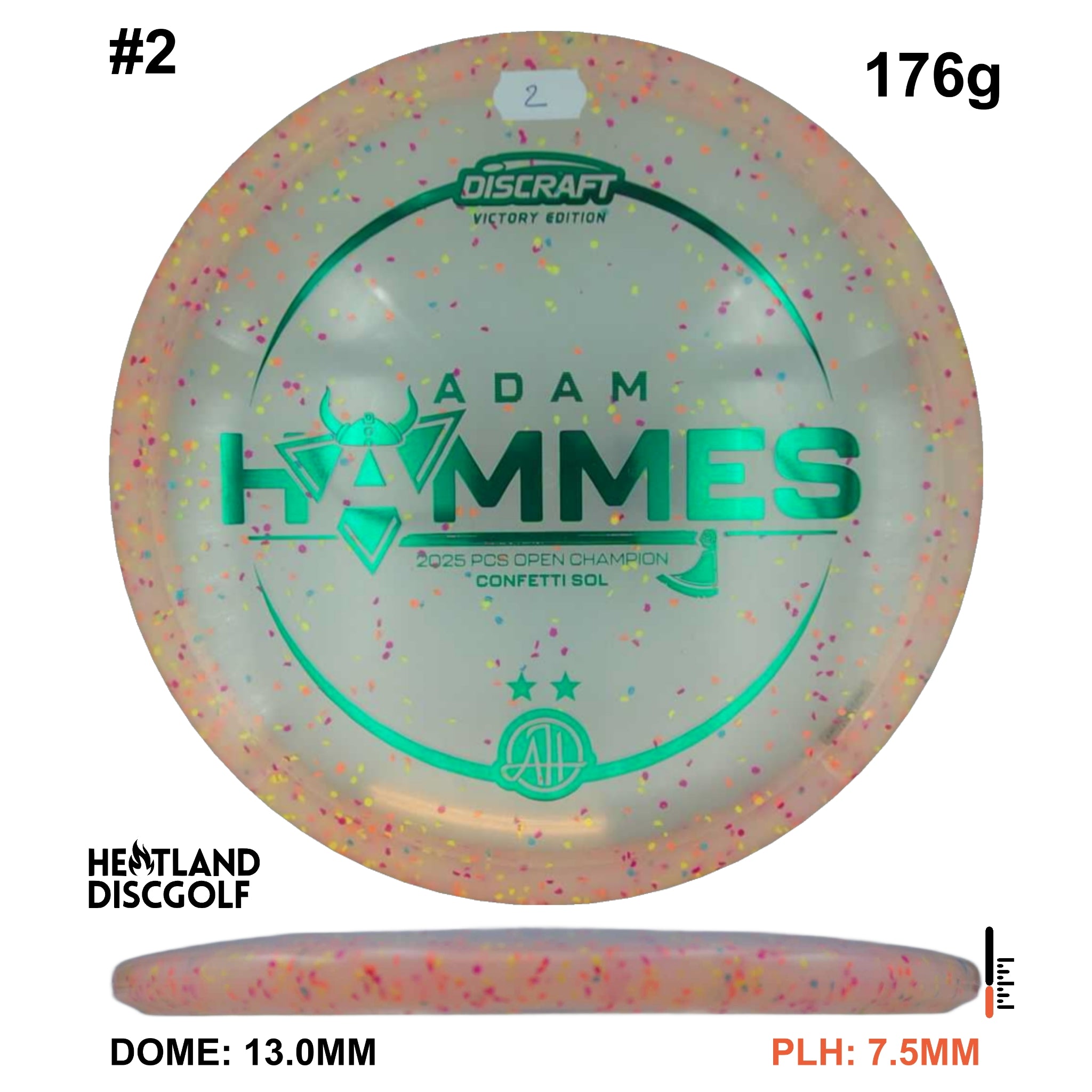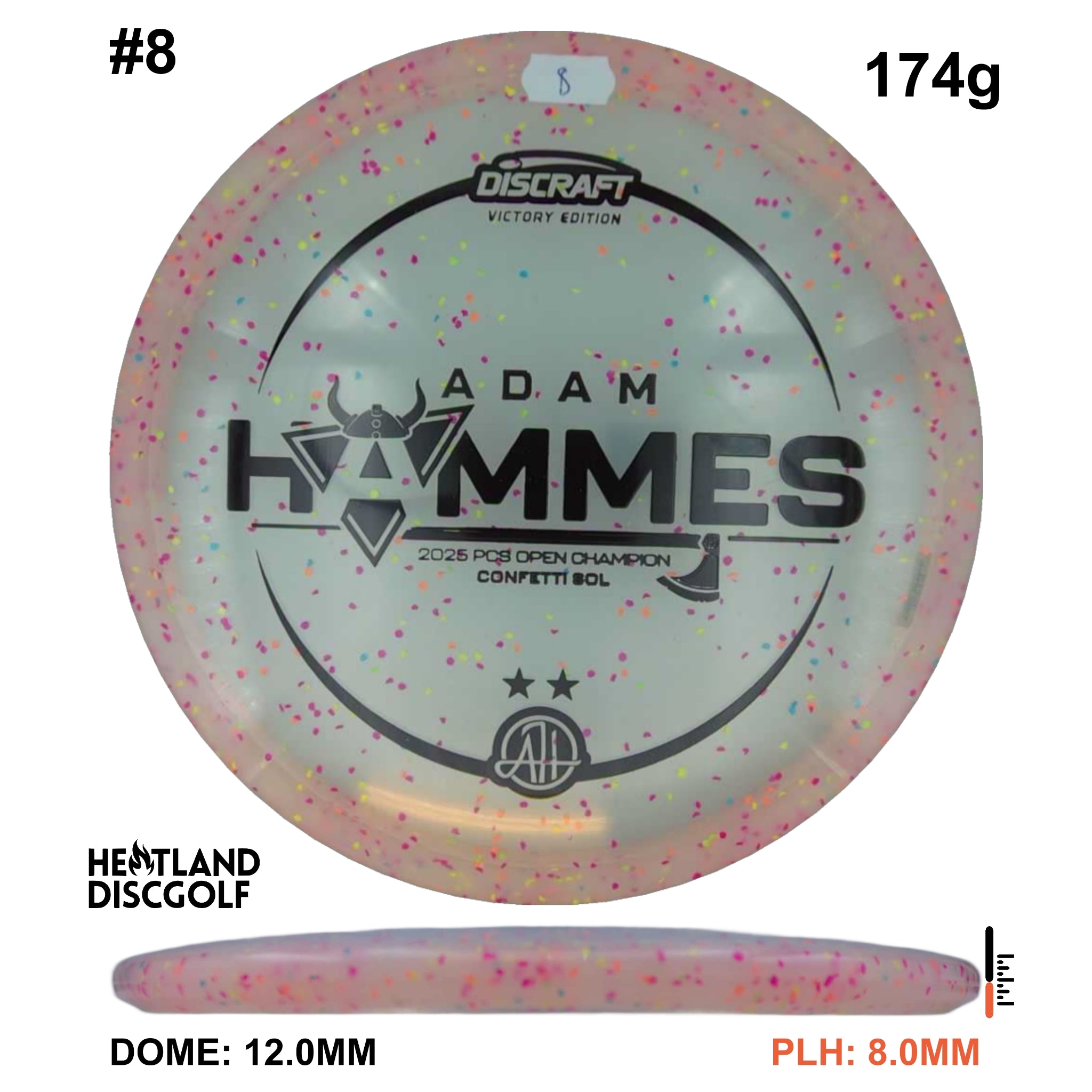 Adam Hammes put on a show at WACO with a wire-to-wire win, and this Victory Edition Confetti Sol celebrates that performance in style. The Sol is a go-to for smooth turnovers, effortless hyzer flips, and controlled glide through tight woods—perfect for players who like to shape lines with touch and finesse. This special run in Discraft’s vibrant Confetti Z plastic adds some extra flair to one of the most workable discs in the lineup. It flies pretty—and wins pretty, too.