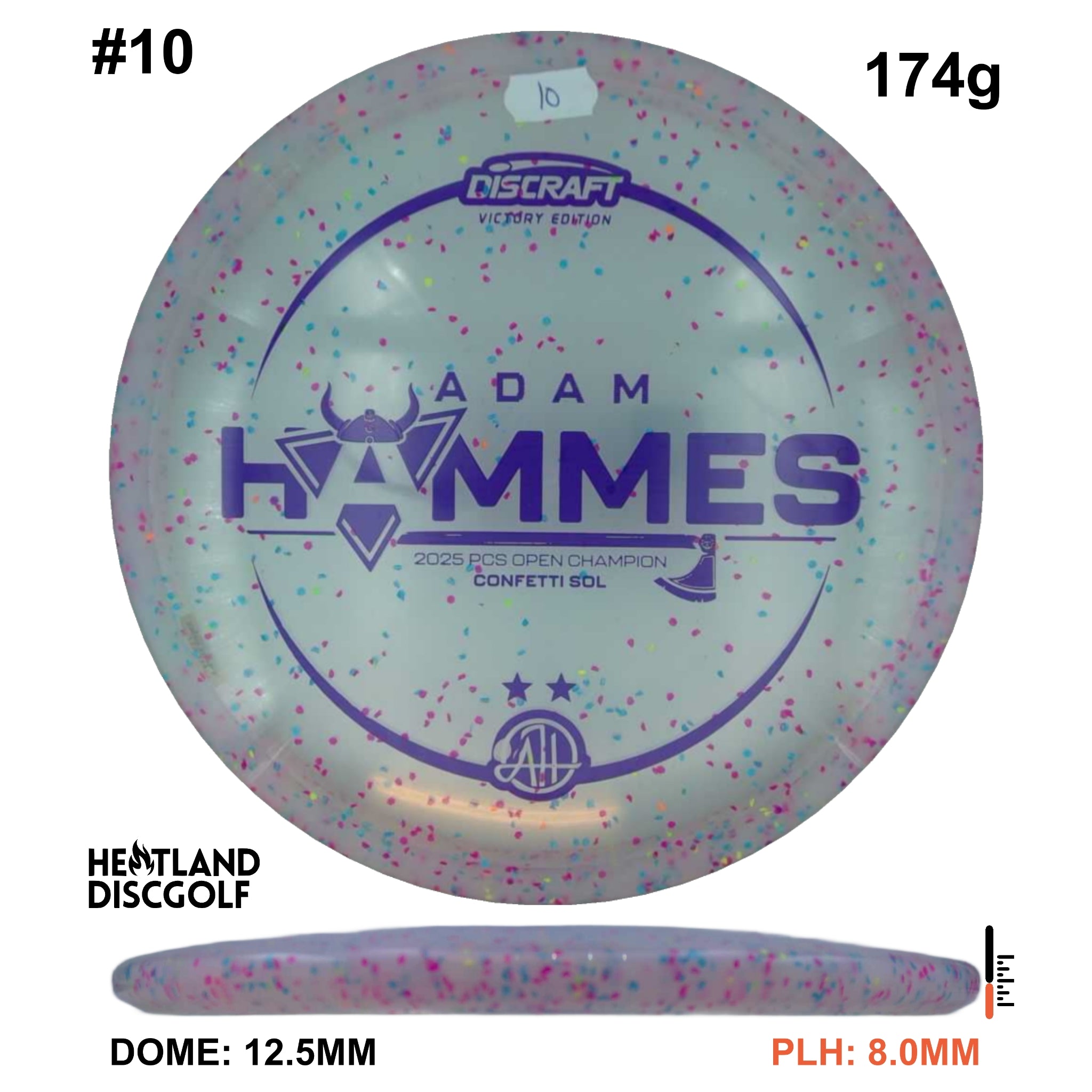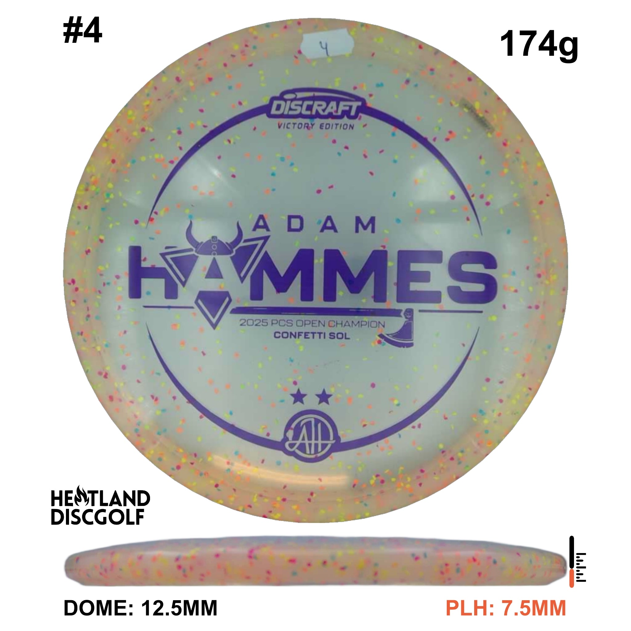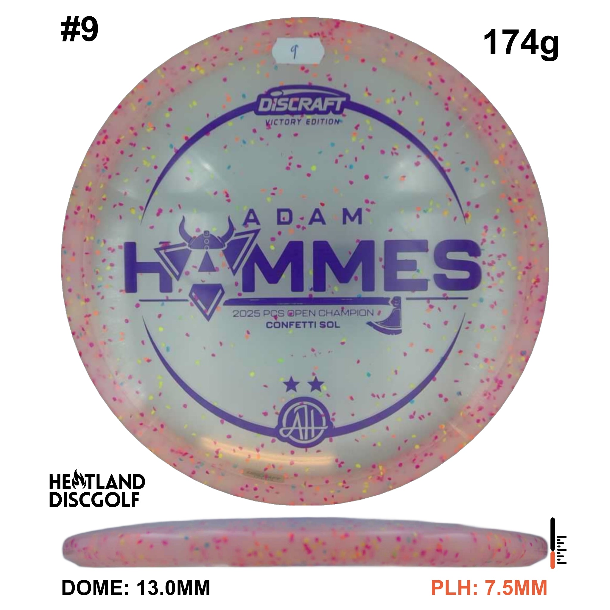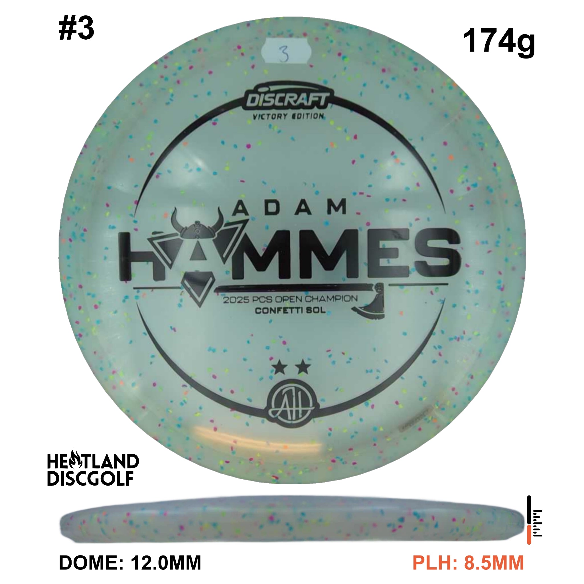 Adam Hammes put on a show at WACO with a wire-to-wire win, and this Victory Edition Confetti Sol celebrates that performance in style. The Sol is a go-to for smooth turnovers, effortless hyzer flips, and controlled glide through tight woods—perfect for players who like to shape lines with touch and finesse. This special run in Discraft’s vibrant Confetti Z plastic adds some extra flair to one of the most workable discs in the lineup. It flies pretty—and wins pretty, too.
