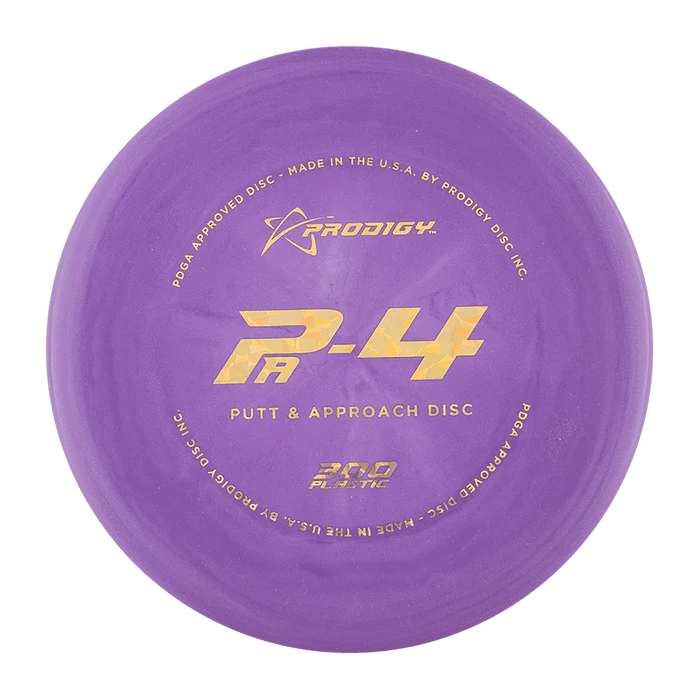 The Prodigy Disc PA-4 is an understable Putt & Approach disc. It is designed for all players and skill levels. The PA-4 will turn up when thrown hard and will then have a long glide and gentle turning finish. 300 plastic PA-4 is a great choice for a straight putting putter too.