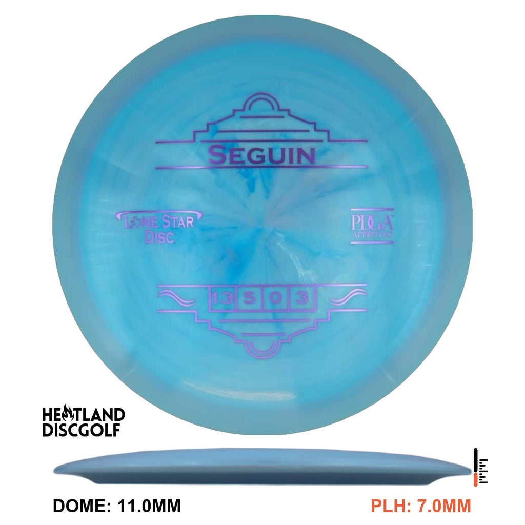The Lone Star Disc Seguin is a wide-rimmed, overstable distance driver. The Seguin is perfect for flex lines and fighting headwinds. It's high-speed rim will be better for players of an Intermediate and higher skill level, as this overstable disc will be sure to have a bigger fade at the end of it's flight.