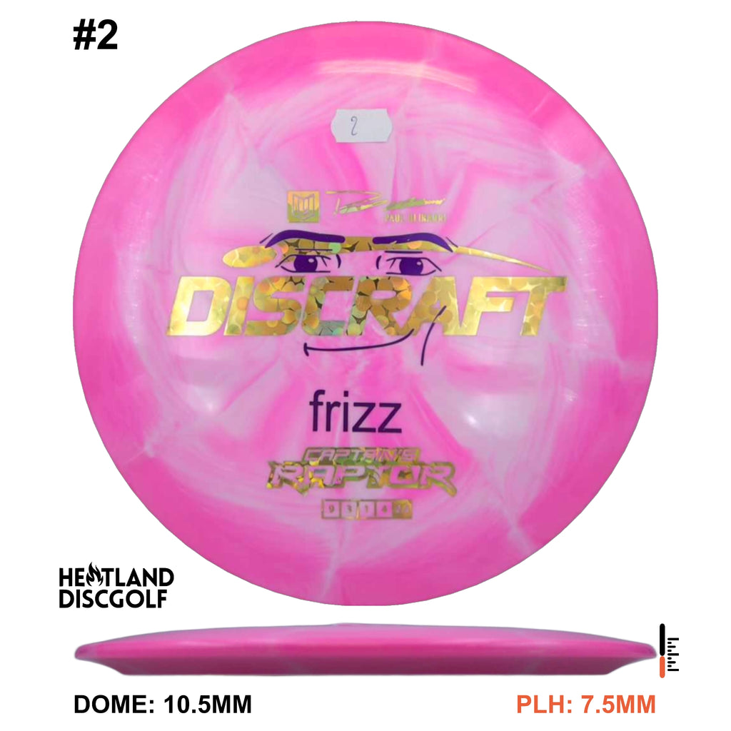 Discraft Raptor that was ran in Special Blend Z plastic for the 2022 release. This disc was inspired by Team Discraft Captain, Paul Ulibarri. This is a new mold that will be a once per year, limited edition release. When they are gone for the year, they are gone! The Captain's Raptor is an over-stable fairway driver that is meant for professionals and advanced players. The Captain's Raptor is great in windy conditions and is an ideal forehand disc or overstable backhand disc.