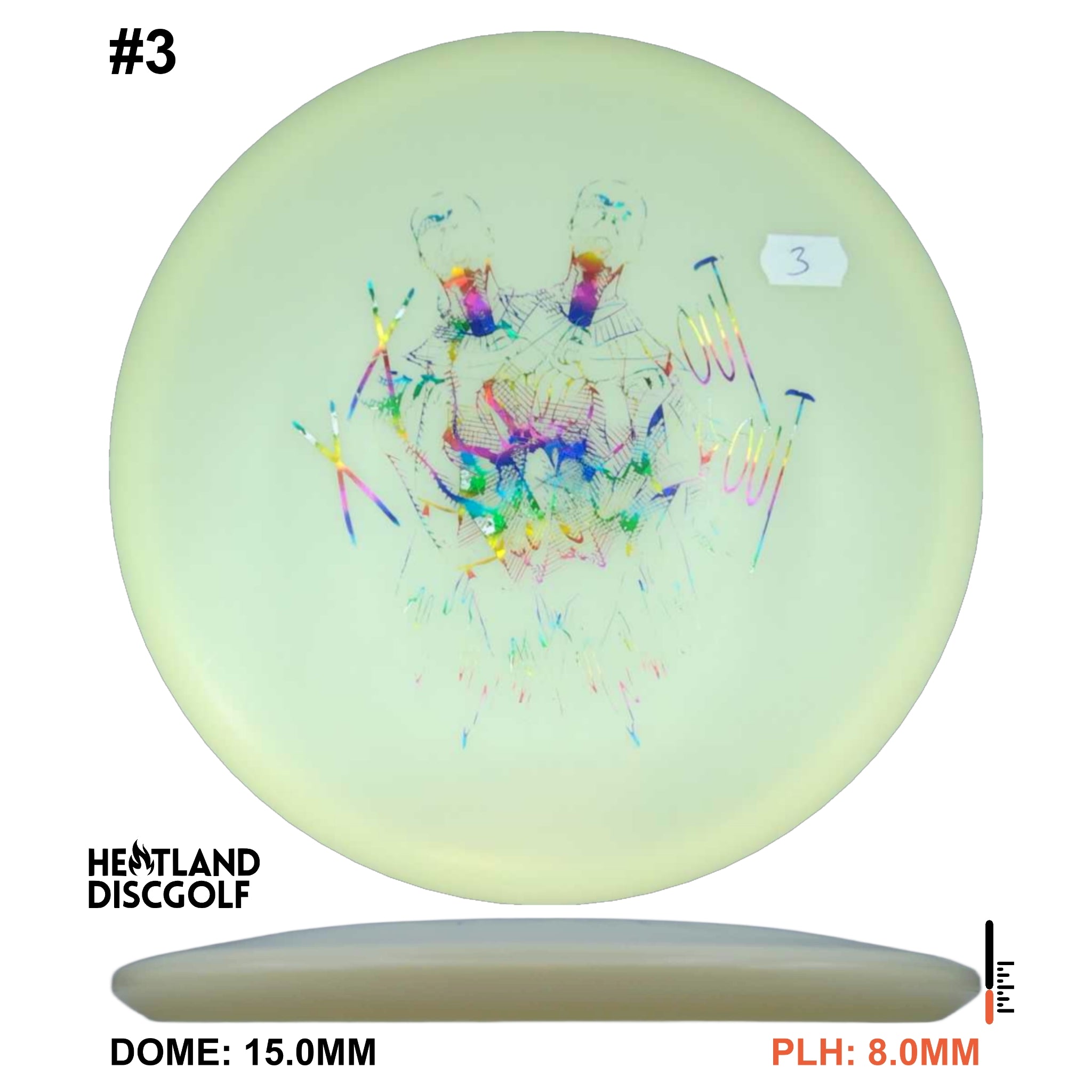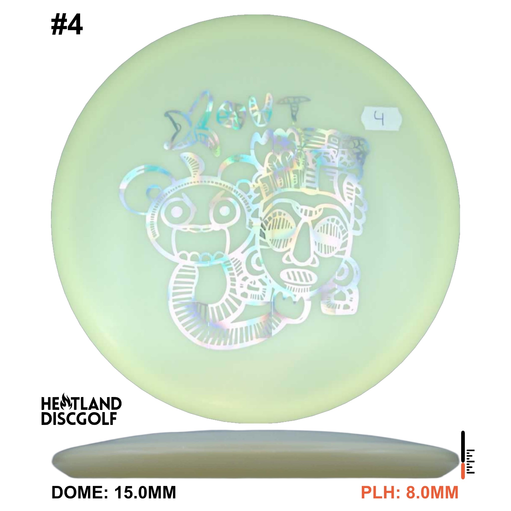 The stamp with Egyptian symbols denotes that the disc is a factory second, X-Out or misprint. This is a glow-in-the-dark version of C-Blend plastic, which is the equivalent of Innova's Champion plastic. It is often a transparent, ultra durable plastic that provides outstanding performance and long life. The Glow C-Blend can be either colored or traditional "white" glow.