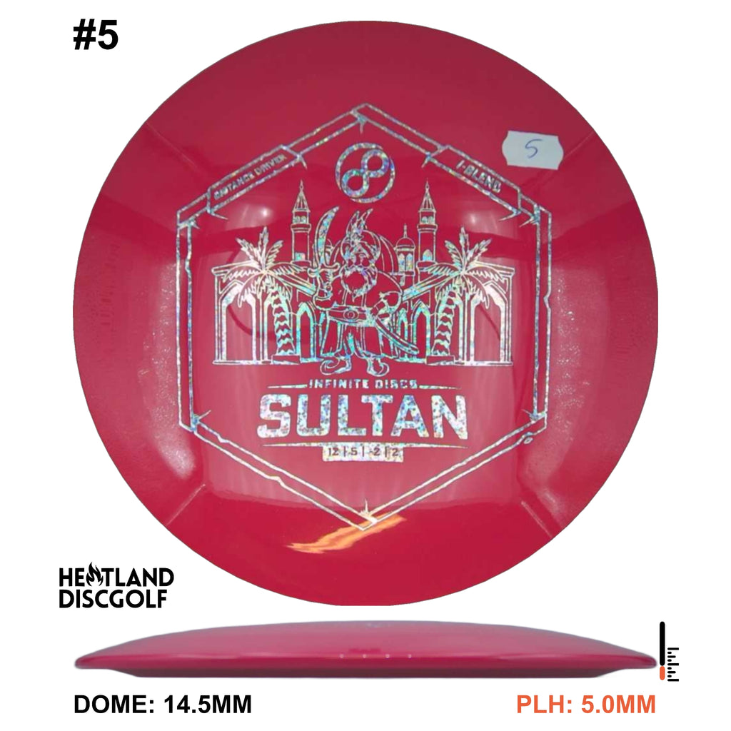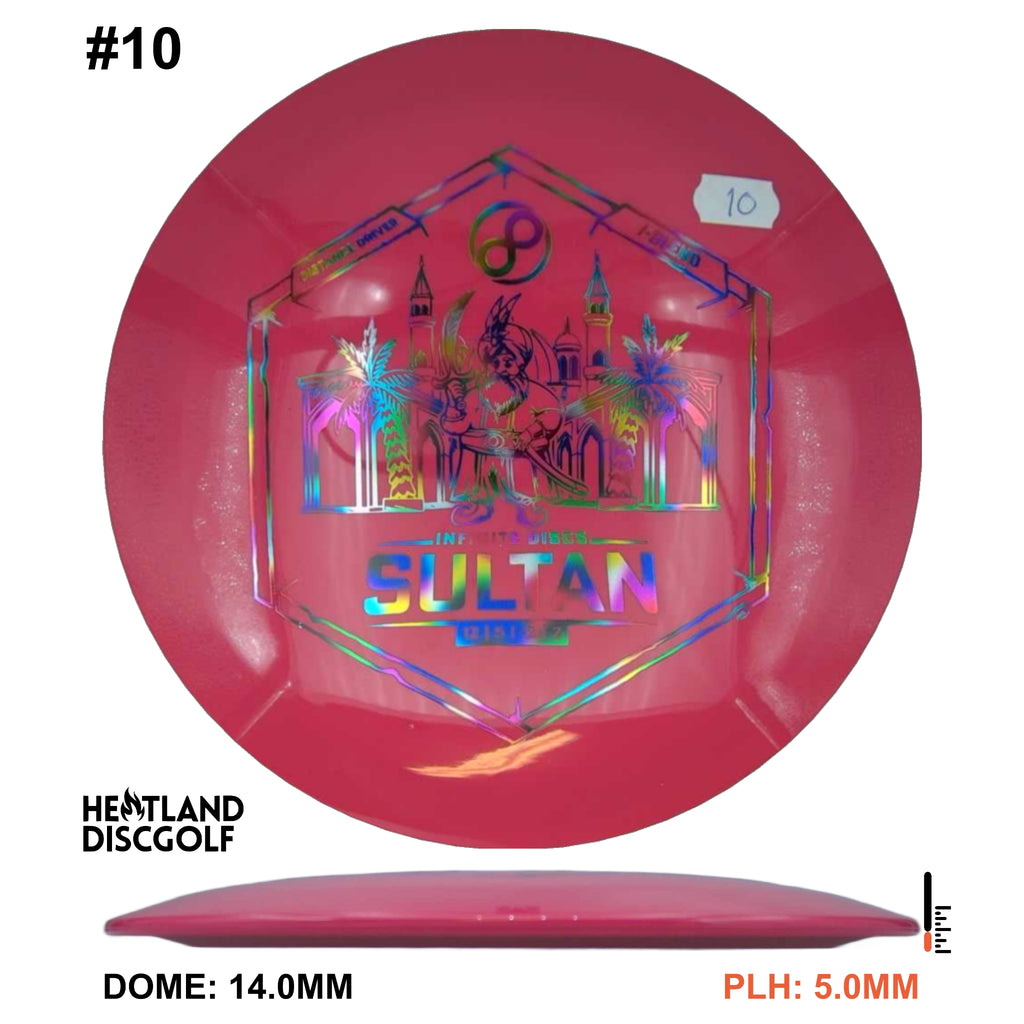 The Infinite Discs Sultan is a high-speed distance driver designed for maximum glide and controlled turnover flights. The Sultan offers effortless distance potential for players with the arm speed to handle it. The unique beaded rim provides a secure grip and enhanced torque resistance, helping the disc maintain a smooth, consistent finish even on longer throws. Ideal for shaping shots through the fairway or executing big anhyzer lines, the Sultan brings a versatile option to the distance driver slot.