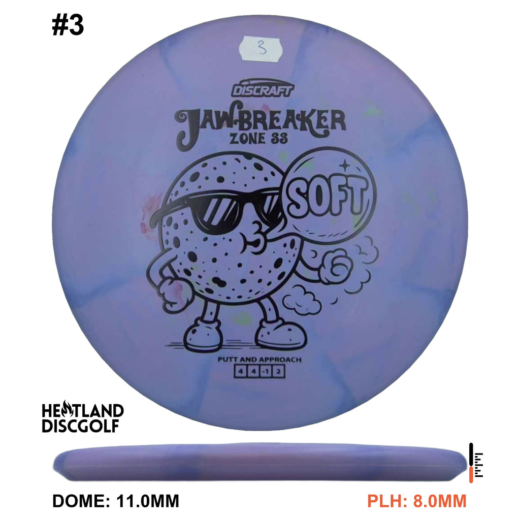 The Jawbreaker Soft Zone SS delivers a straighter, more workable version of the classic Zone, perfect for controlled approaches and touch forehands. With less fade and more glide, it offers precision on those finesse shots where a standard Zone might hook too hard. Molded in grippy, flexible Jawbreaker Soft plastic, it provides a tacky feel and dependable grip in all conditions. Topped with the Jawbreaker Man stamp, this release combines performance and personality in one standout disc.
