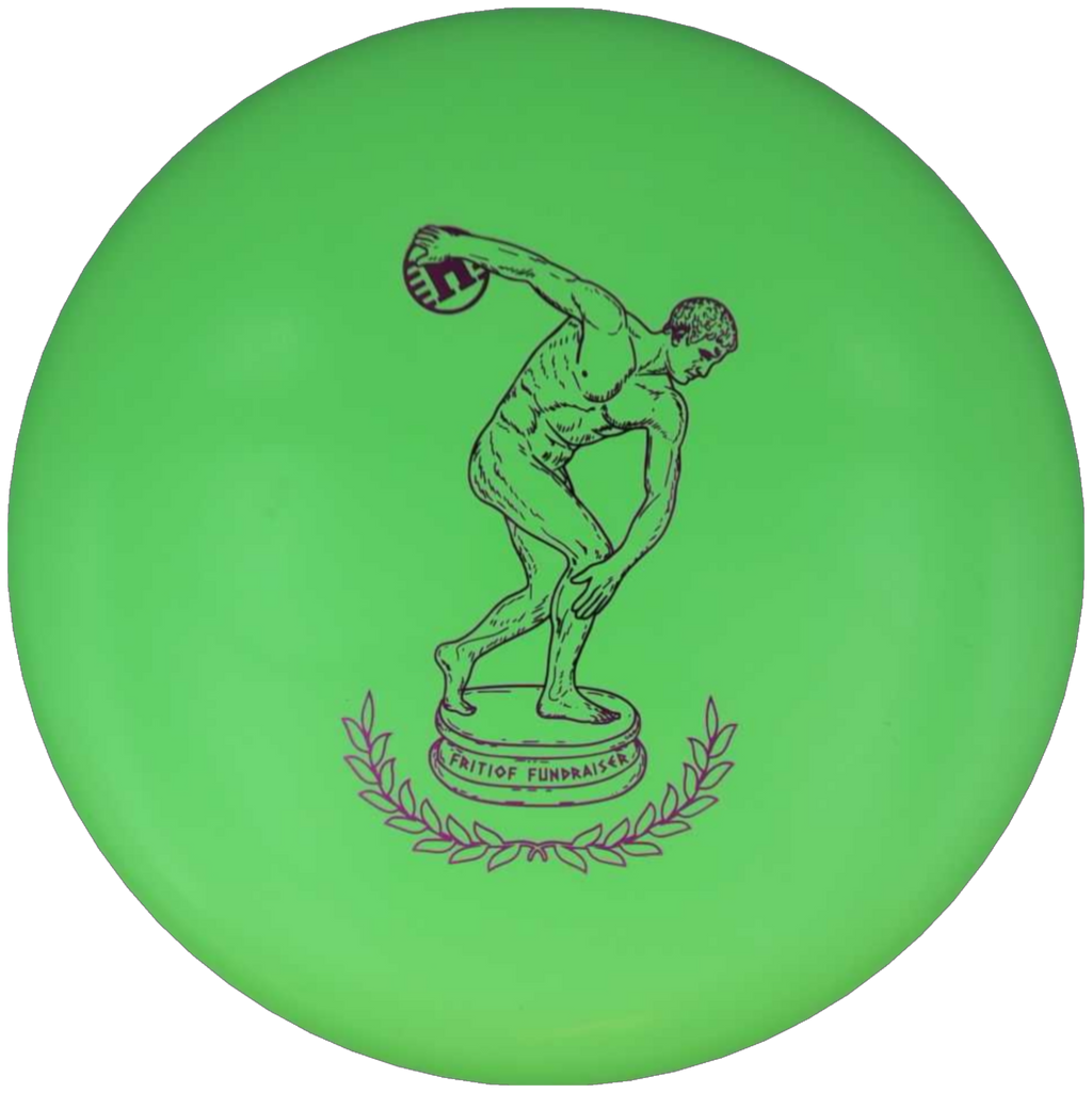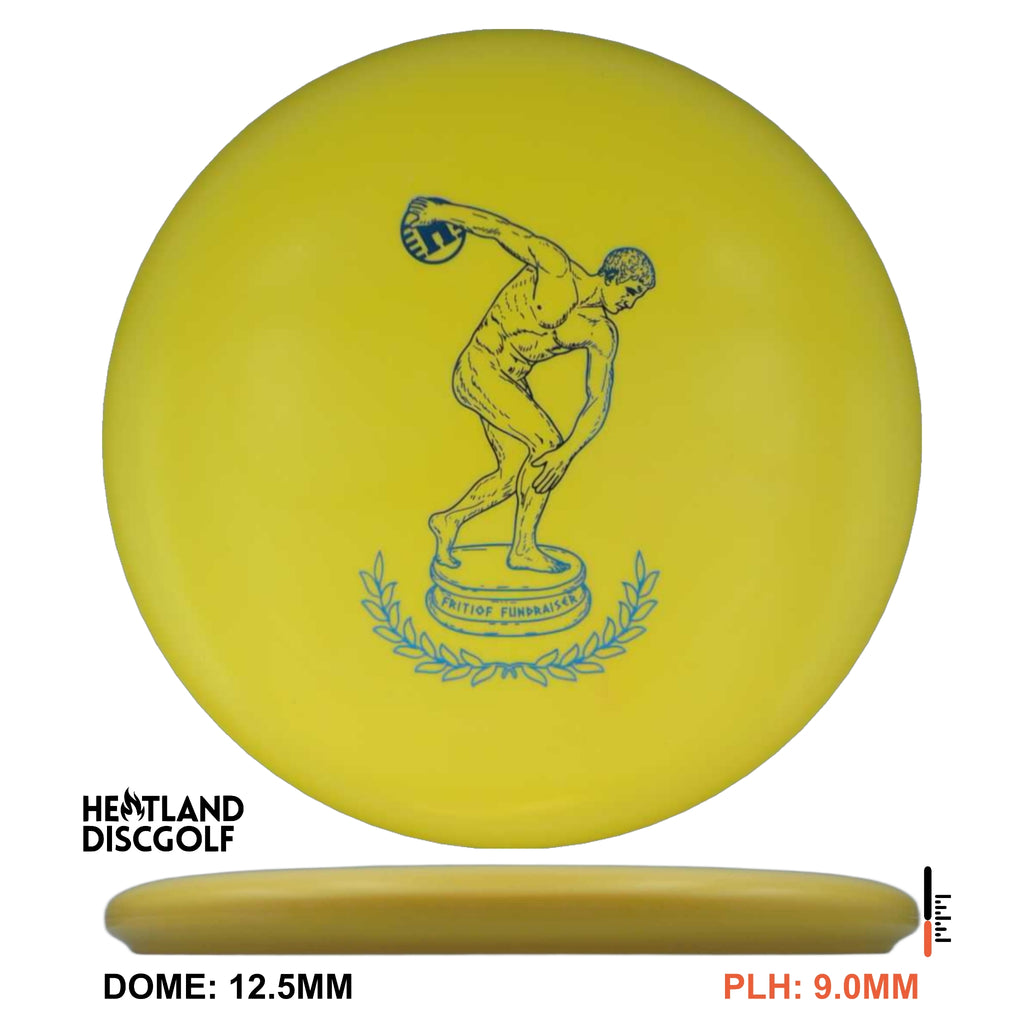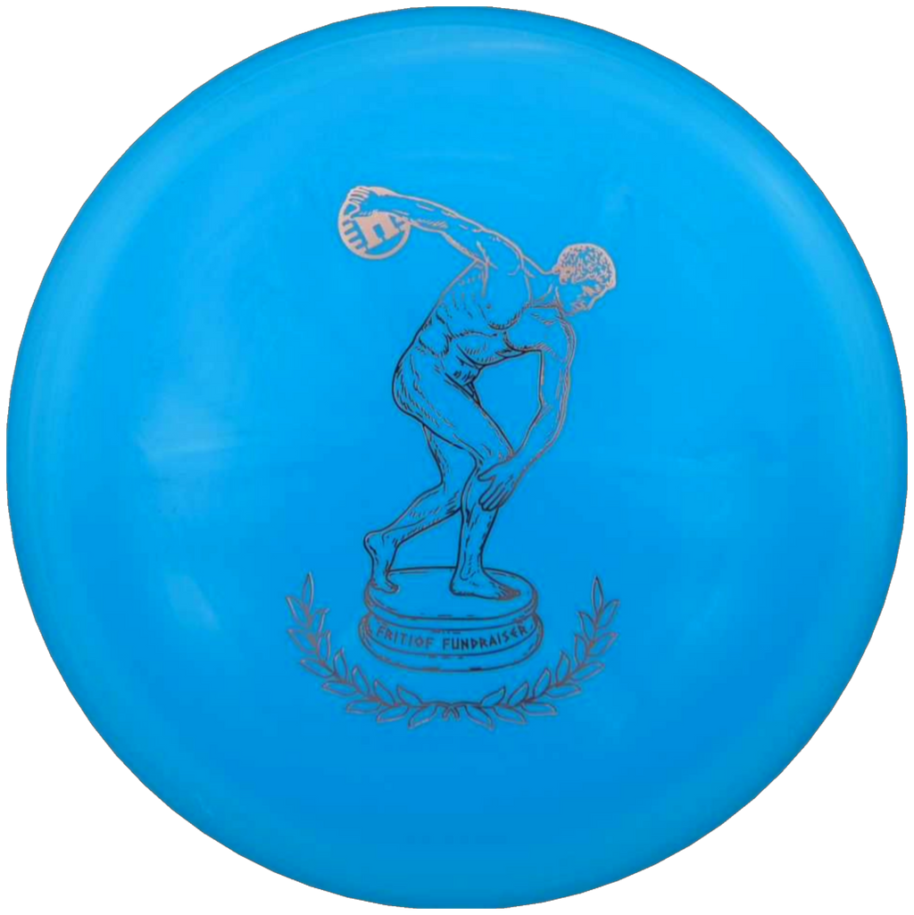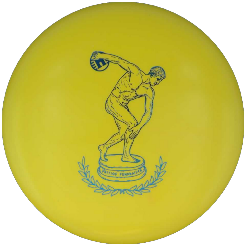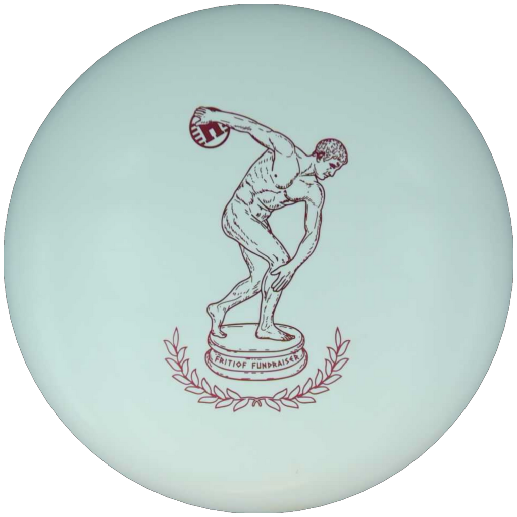 The 2025 signature stamp features a Greek statue throwing a disc, blending ancient athletic style with modern disc golf. It’s both a functional workhorse and a collectible supporting Fritiof’s tour season.