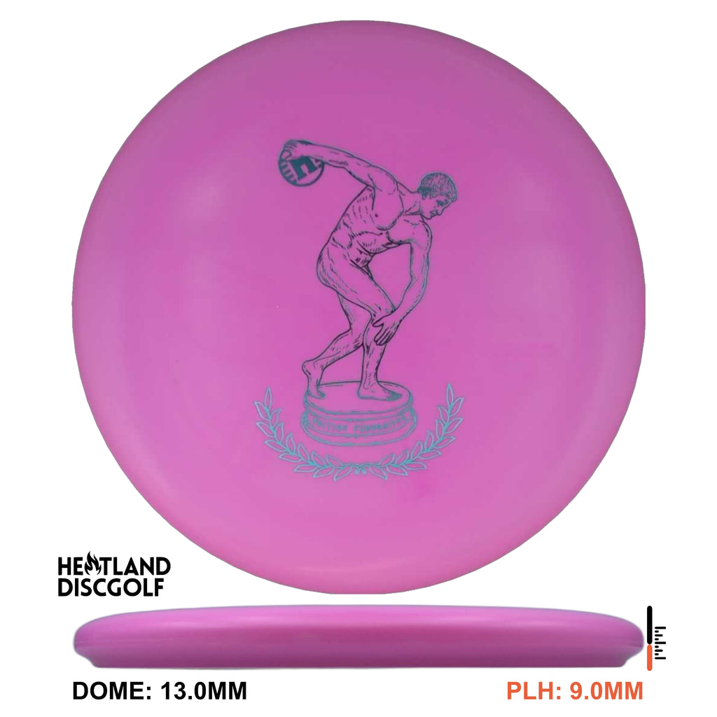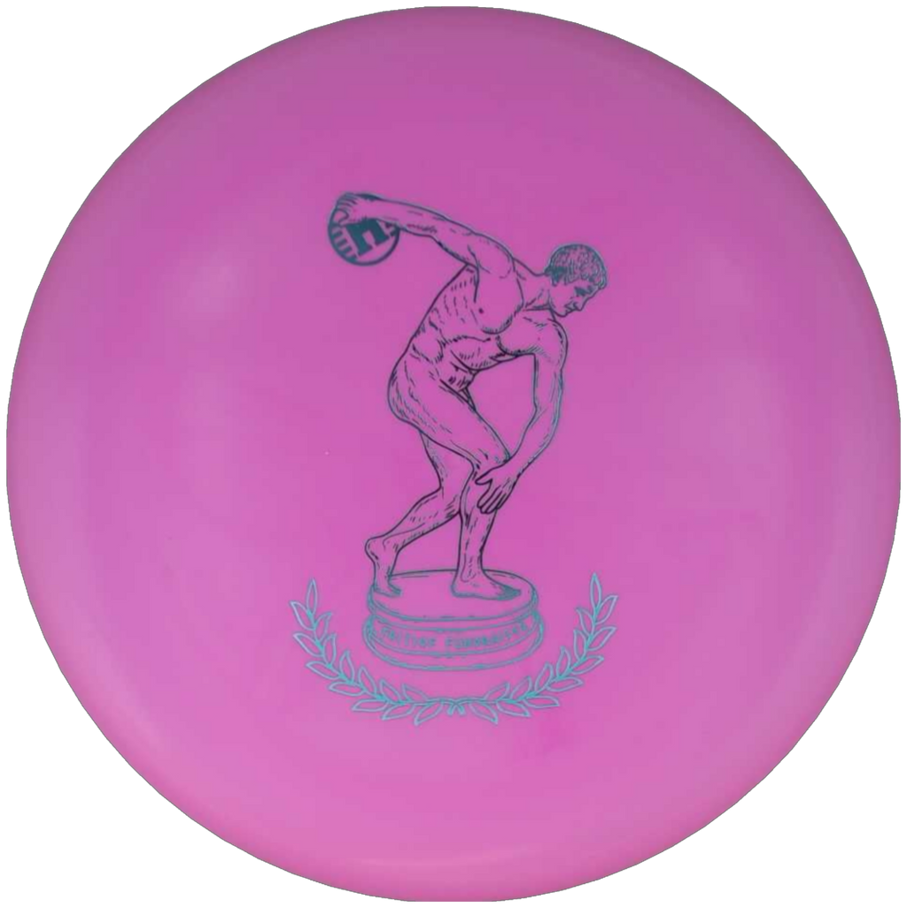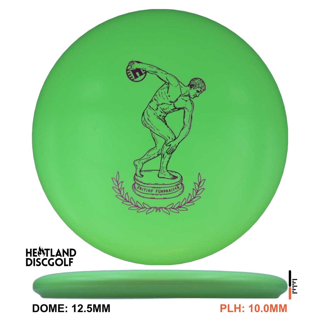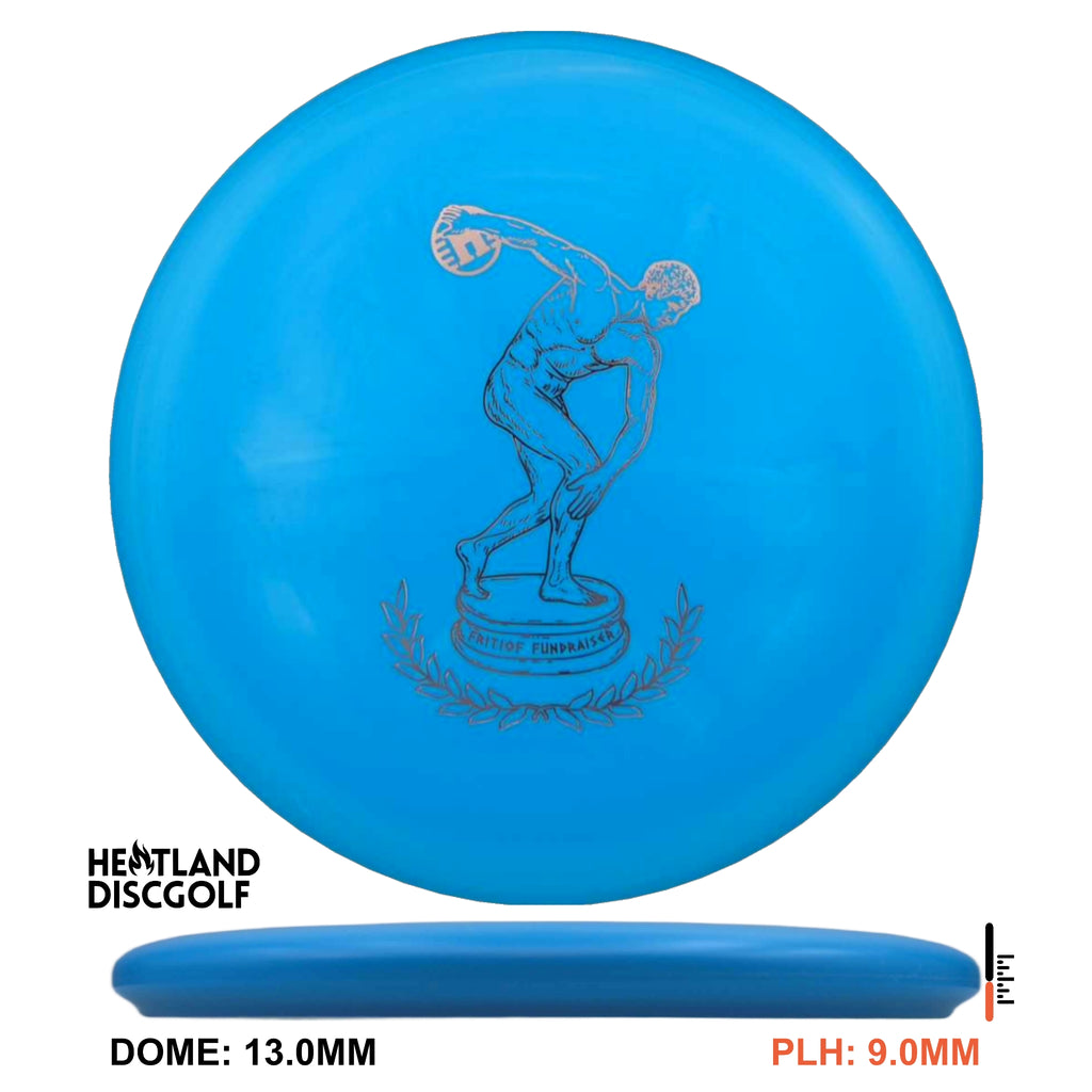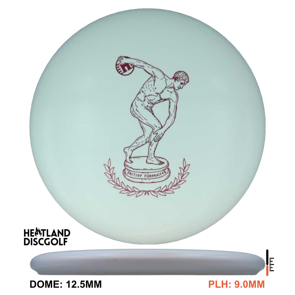 The 2025 signature stamp features a Greek statue throwing a disc, blending ancient athletic style with modern disc golf. It’s both a functional workhorse and a collectible supporting Fritiof’s tour season.