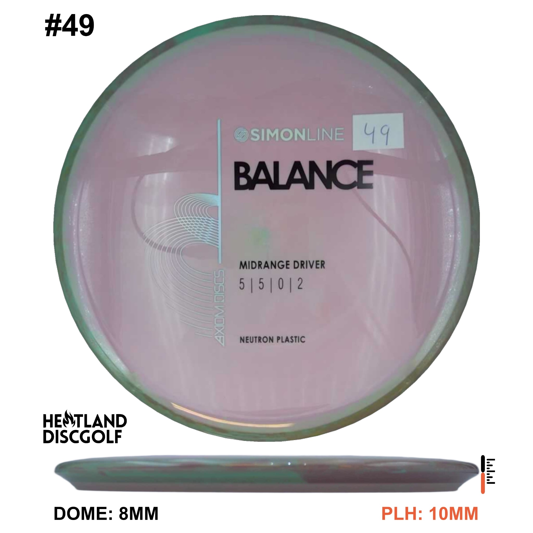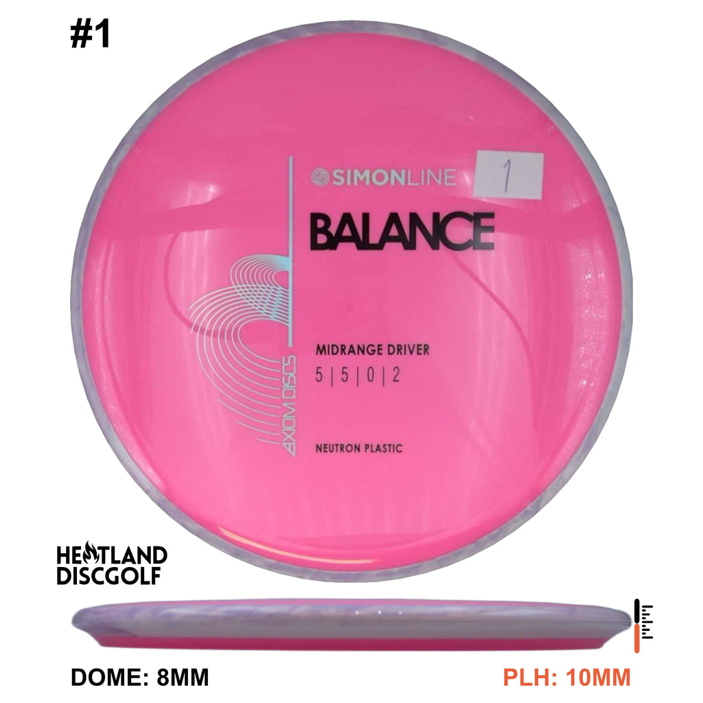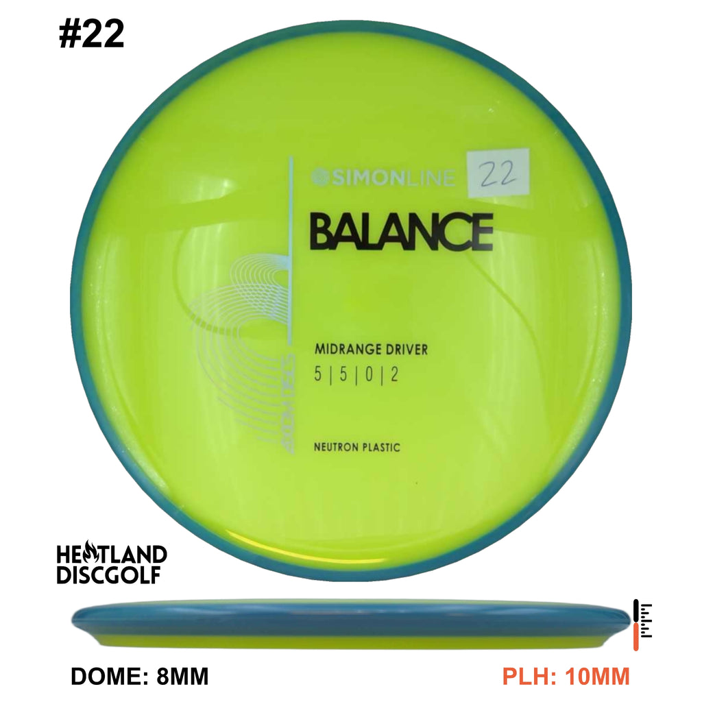 The next disc in the Simon Line is primed for its stock release – the Neutron Balance! For those following the development process of this disc, you’ll know there have been three Prototypes released for the Balance, each with minor differences in stability. This allowed Simon to try multiple options and pick the version he prefers most (v2) to go into full production while giving you all a peek behind the curtain of the process. Settling in with flight numbers of 5 | 5 | 0 | 2, the Balance falls between the MVP Reactor and Axiom Pyro – overstable enough for torque resistance, wind-fighting, and a reliable, consistent flight – while still having the flexibility of a midrange for shot shaping. High-power players will have a versatile, straight flier with a dependable bite of fade towards the end, while those with less power will find the perfect overstable wind-fighting complement to their midrange lineup. The Balance joins the Pixel and Time-Lapse as part of the Simon Line – curated by Simon Lizotte himself.