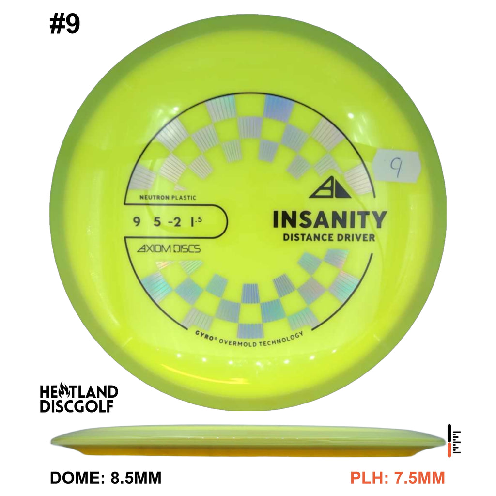The Insanity is Axiom's first distance driver with a 20mm rim width. This disc is slightly less stable than the ultra popular MVP inertia. If you're looking for a straight flying GYRO driver with loads of attractive color options, you might as well try Insanity.