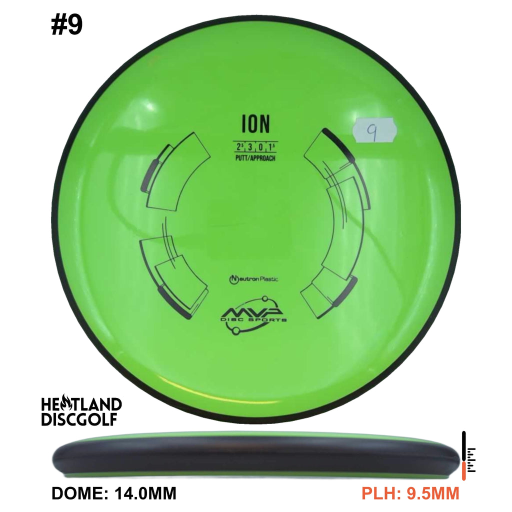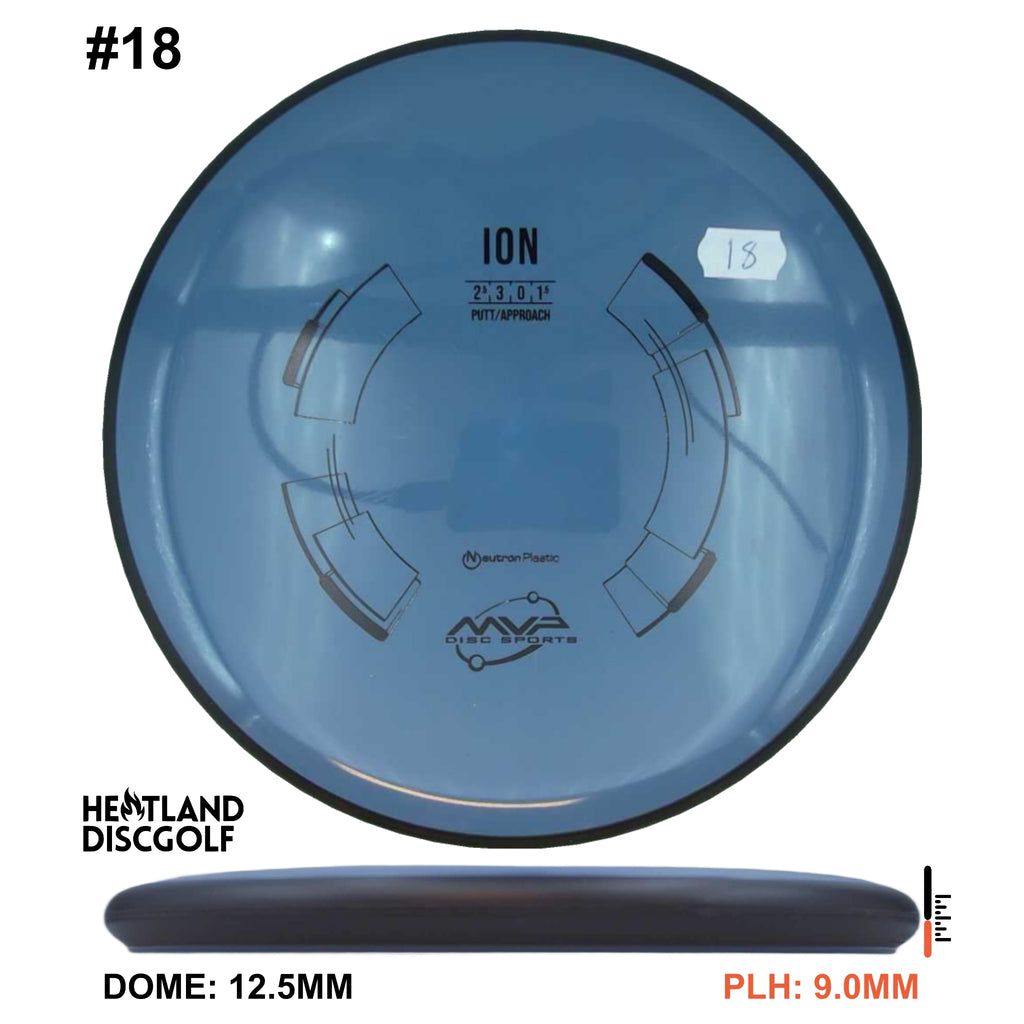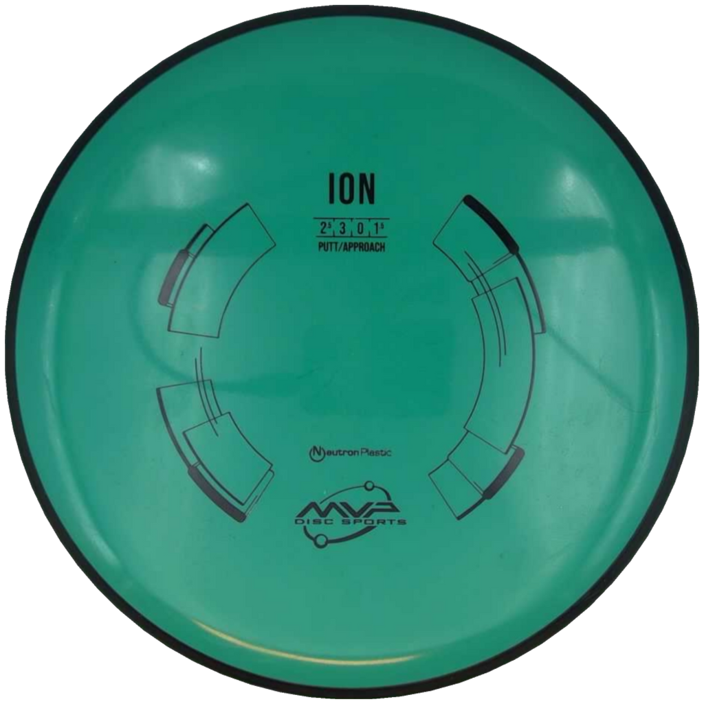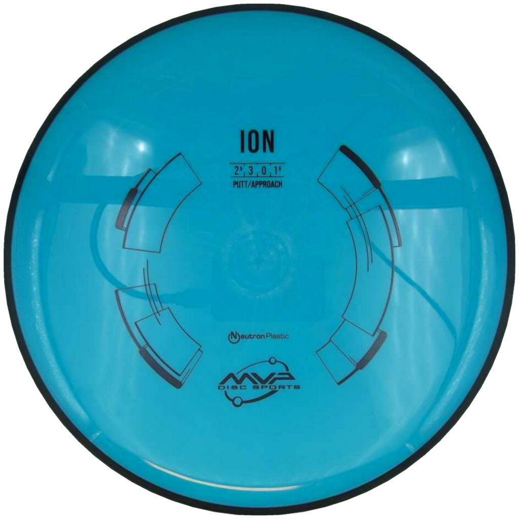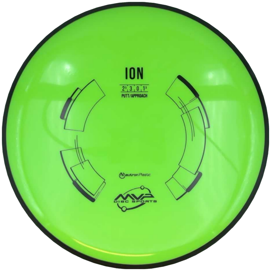 The Ion is a straight-flying putter with a lot of glide that has an over-molded edge. This over-molded edge allows for a choice in flexibilities and firmnesses without sacrificing a desired soft, tacky outside edge. A softer outside edge will aid in grabbing the chains and dropping into the basket. In addition to its unique over-mold design is the comfortable grip of the disc. The edge where the flight plate meets the rim is rounded, so you fingers conform to the disc when you hold it.