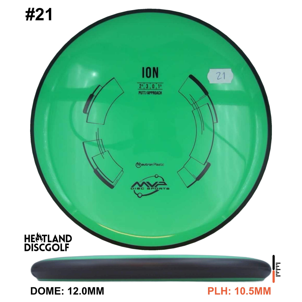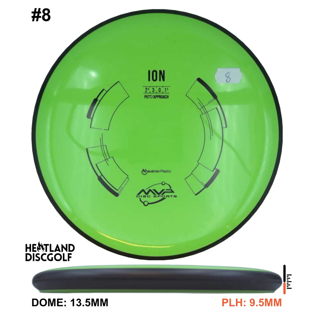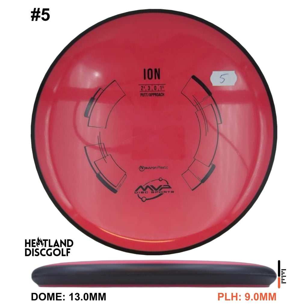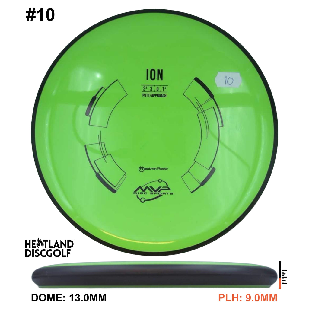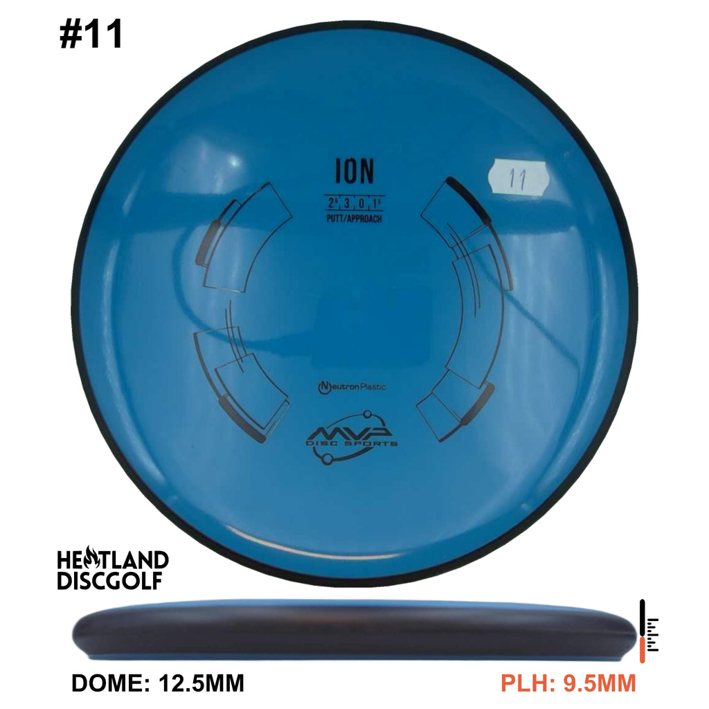 The Ion is a straight-flying putter with a lot of glide that has an over-molded edge. This over-molded edge allows for a choice in flexibilities and firmnesses without sacrificing a desired soft, tacky outside edge. A softer outside edge will aid in grabbing the chains and dropping into the basket. In addition to its unique over-mold design is the comfortable grip of the disc. The edge where the flight plate meets the rim is rounded, so you fingers conform to the disc when you hold it.