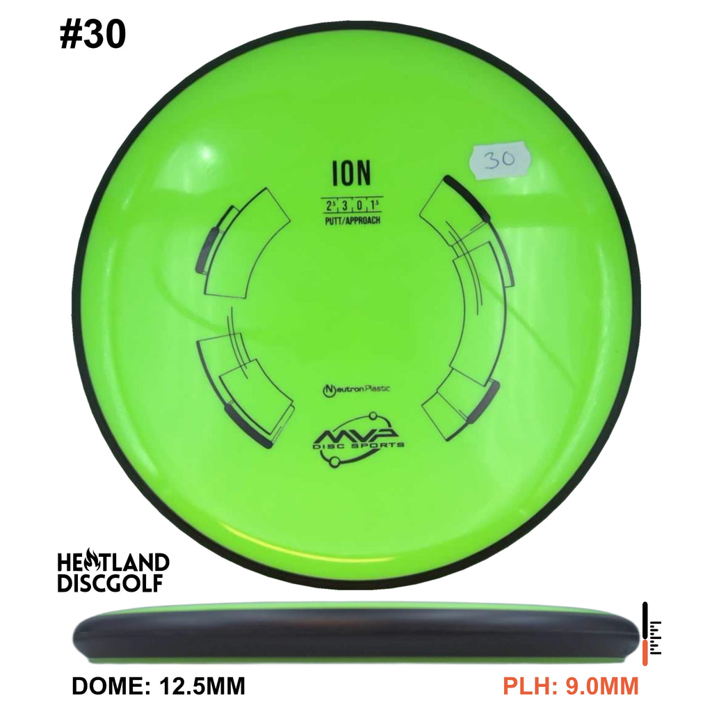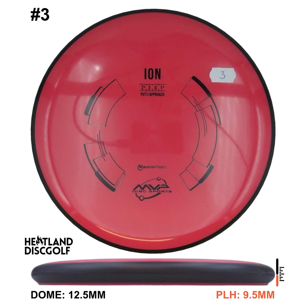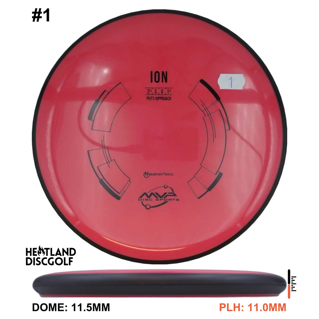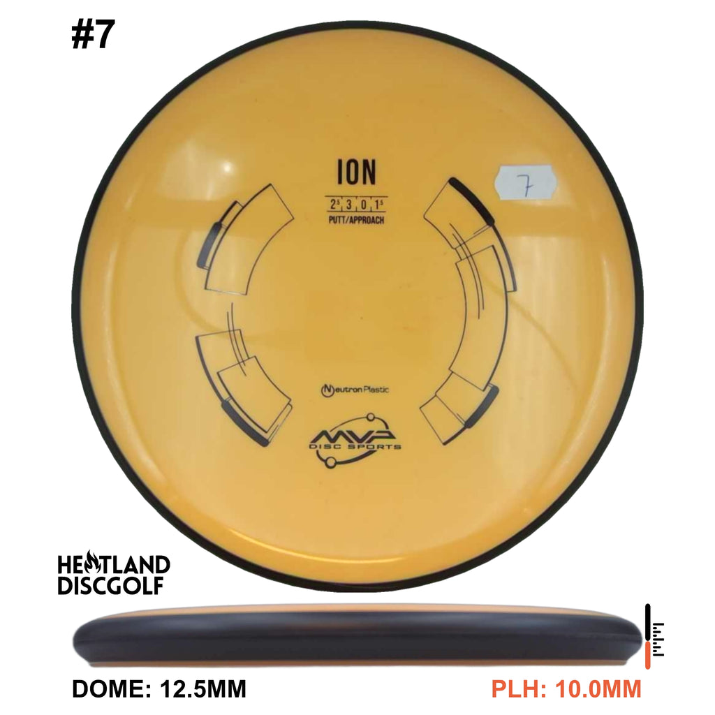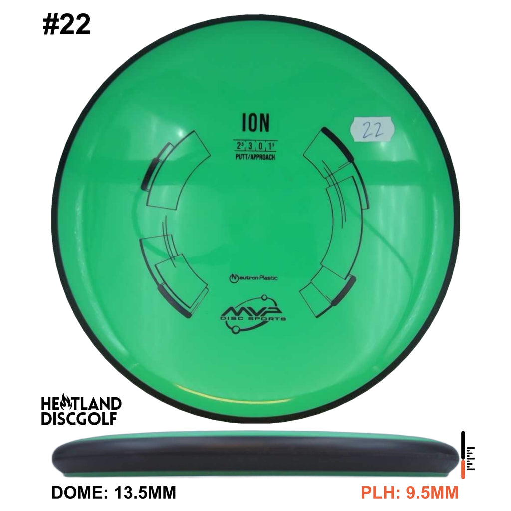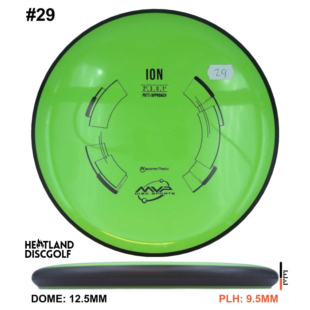 The Ion is a straight-flying putter with a lot of glide that has an over-molded edge. This over-molded edge allows for a choice in flexibilities and firmnesses without sacrificing a desired soft, tacky outside edge. A softer outside edge will aid in grabbing the chains and dropping into the basket. In addition to its unique over-mold design is the comfortable grip of the disc. The edge where the flight plate meets the rim is rounded, so you fingers conform to the disc when you hold it.