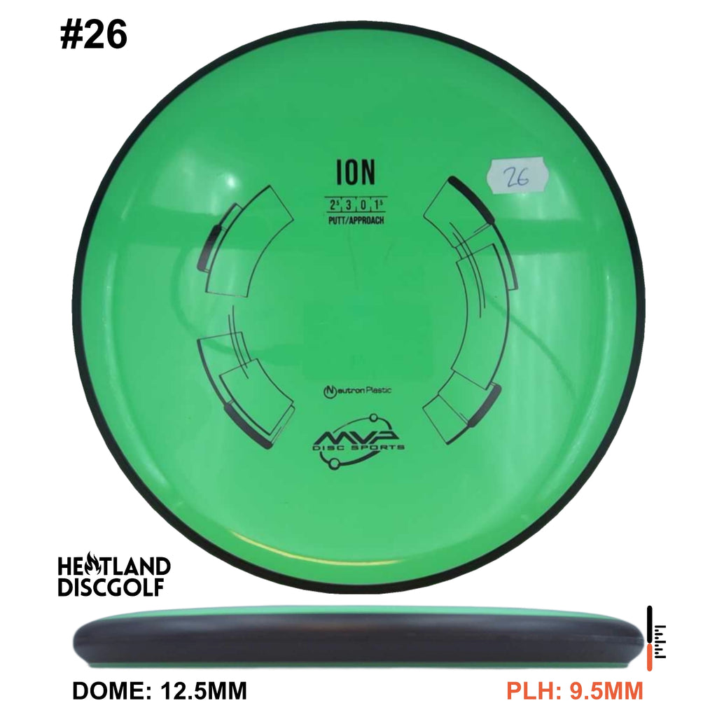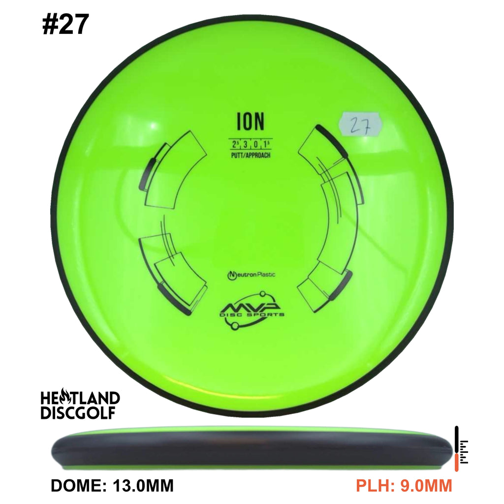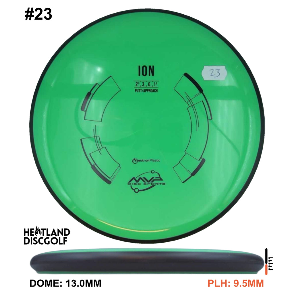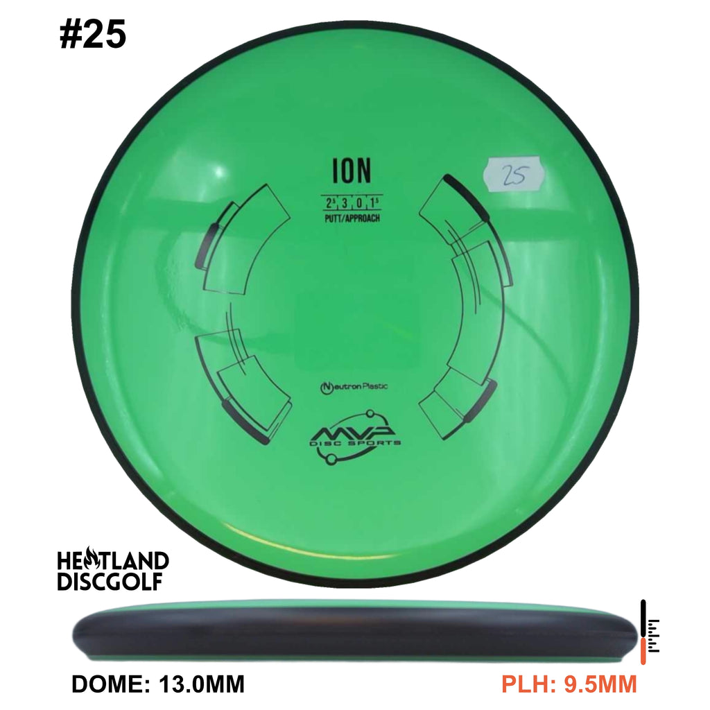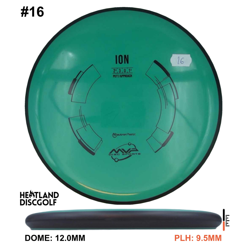 The Ion is a straight-flying putter with a lot of glide that has an over-molded edge. This over-molded edge allows for a choice in flexibilities and firmnesses without sacrificing a desired soft, tacky outside edge. A softer outside edge will aid in grabbing the chains and dropping into the basket. In addition to its unique over-mold design is the comfortable grip of the disc. The edge where the flight plate meets the rim is rounded, so you fingers conform to the disc when you hold it.