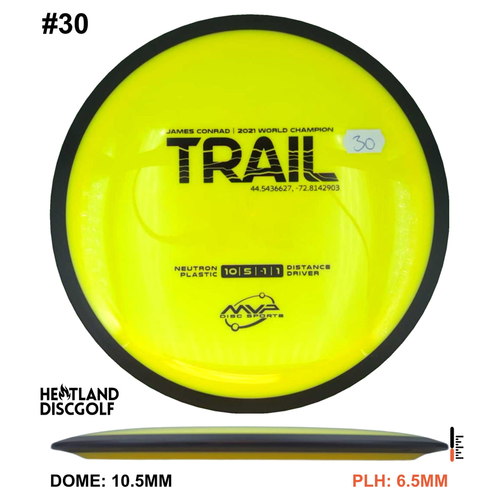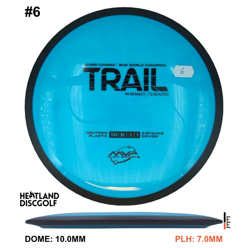The first official 10-speed driver in the MVP lineup, the Trail is a stable-understable distance driver that, as you might expect of a Conrad disc, excels in hyzer-flip drives and turnovers. Releasing with flight numbers of 10 | 5 | -1 | 1, throwers of all power levels will find the Trail to be an exceptionally responsive driver for a variety of shot shapes, making the Trail a phenomenal disc for all skill levels.