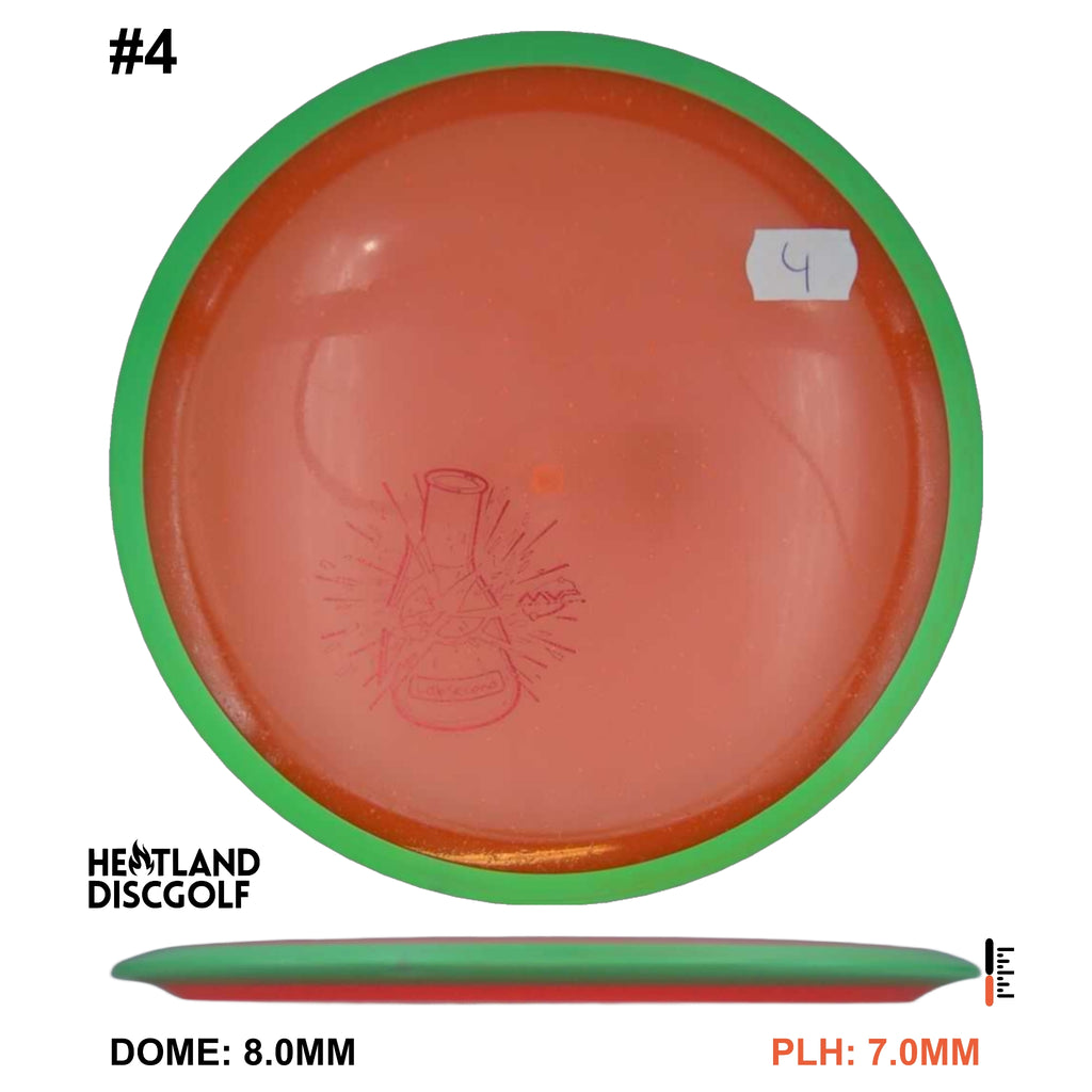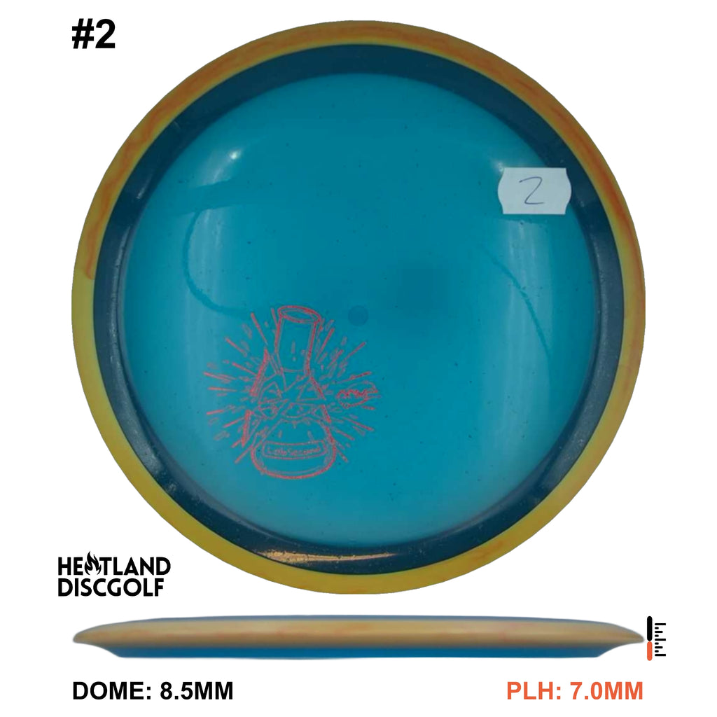 The Virus is Axiom's easiest to throw distance driver, with a glide and responsive understability that keeps it in the air. Power throwers will be able to flex huge turnover shots with straight forward fade. Average throwers will be able to extend and shape lines using the Virus' turn and gentle fade. Compared to the MVP lineup, the Virus resembles a worn-in Impulse.