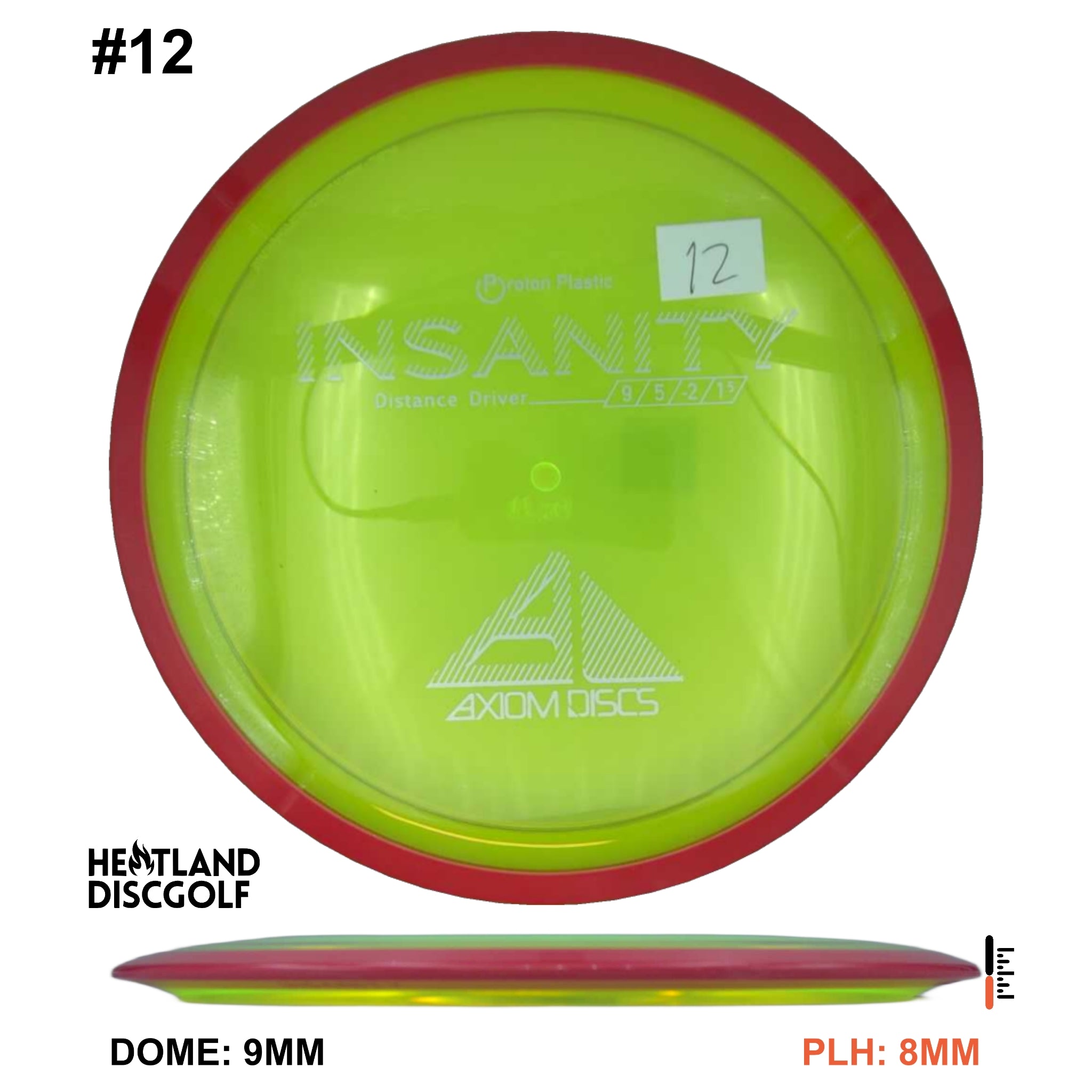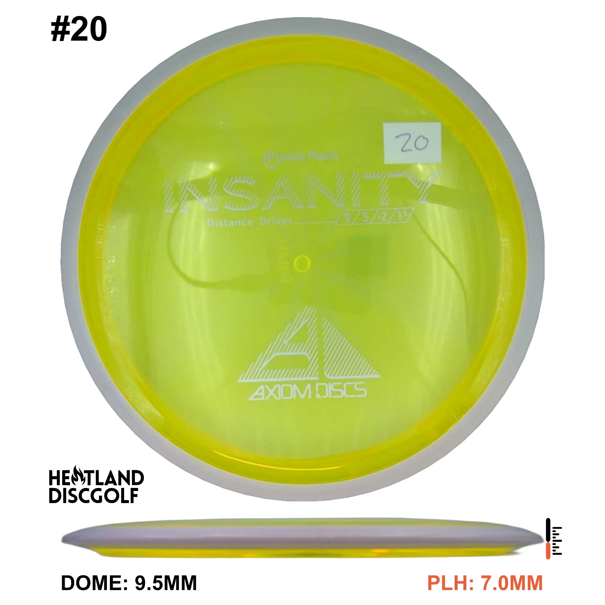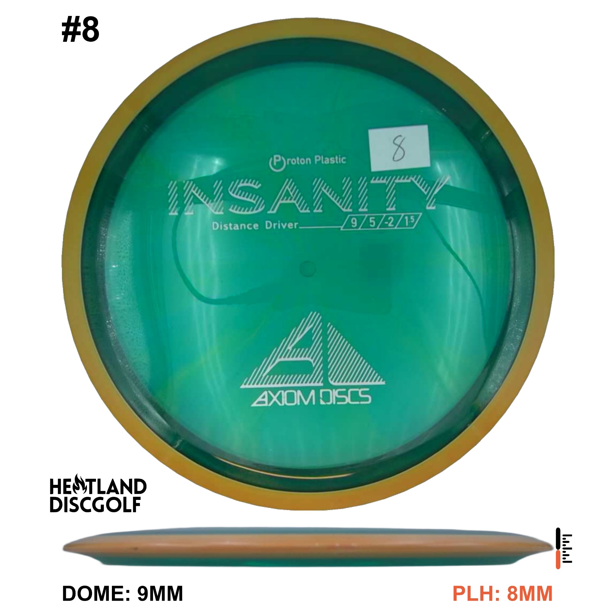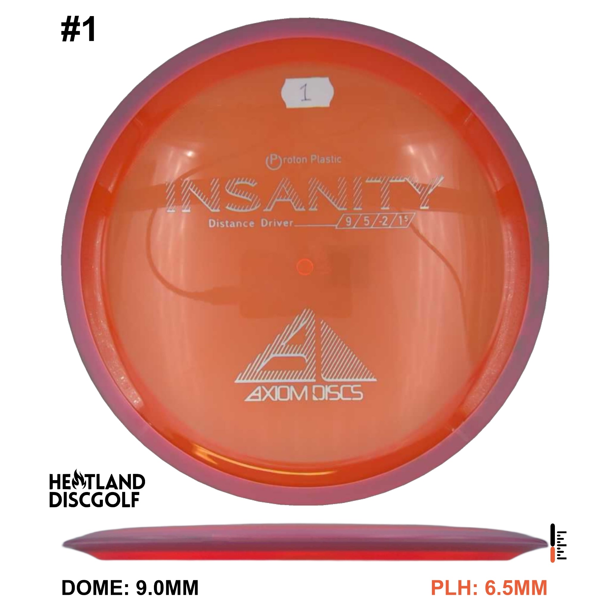 The Insanity is Axiom's first distance driver with a 20mm rim width. This disc is slightly less stable than the ultra popular MVP inertia. If you're looking for a straight flying GYRO driver with loads of attractive color options, you might as well try Insanity.