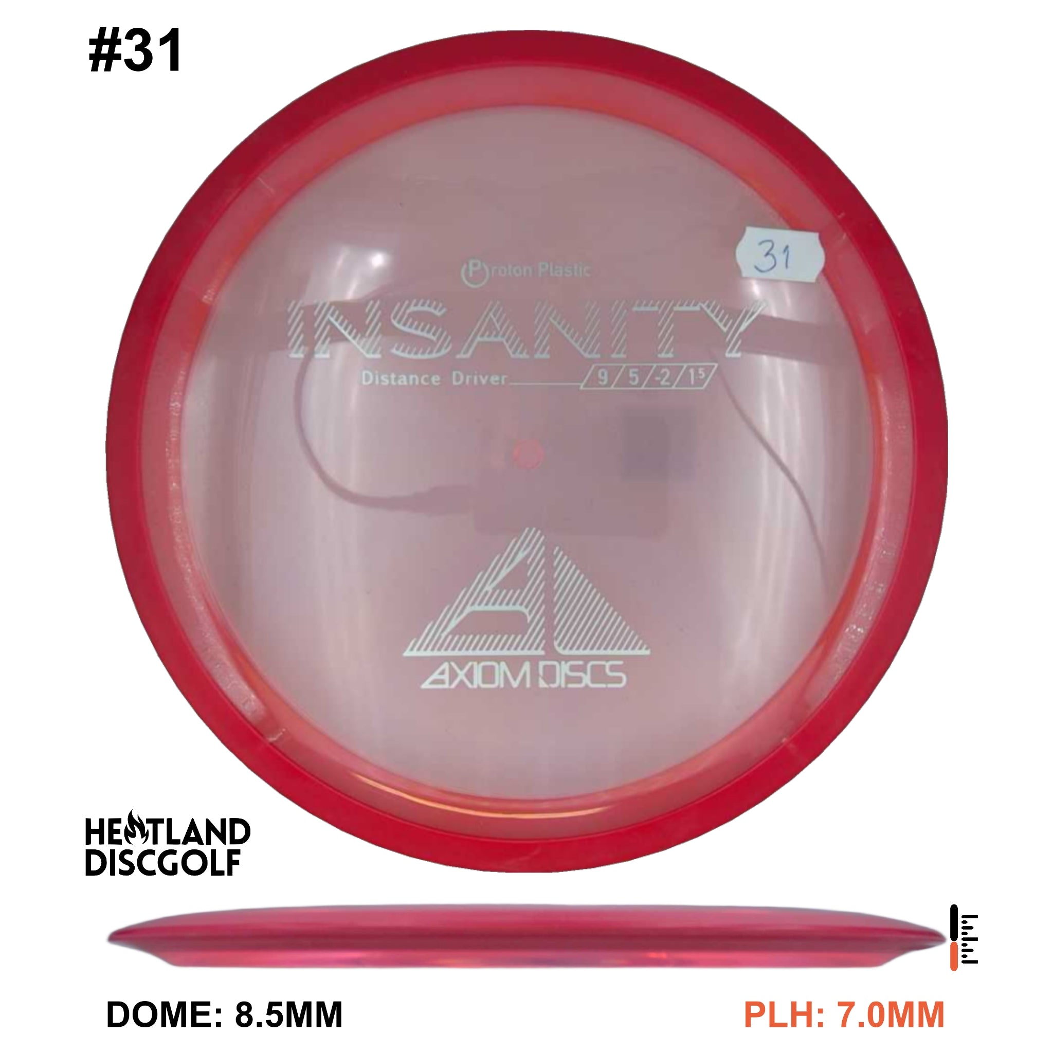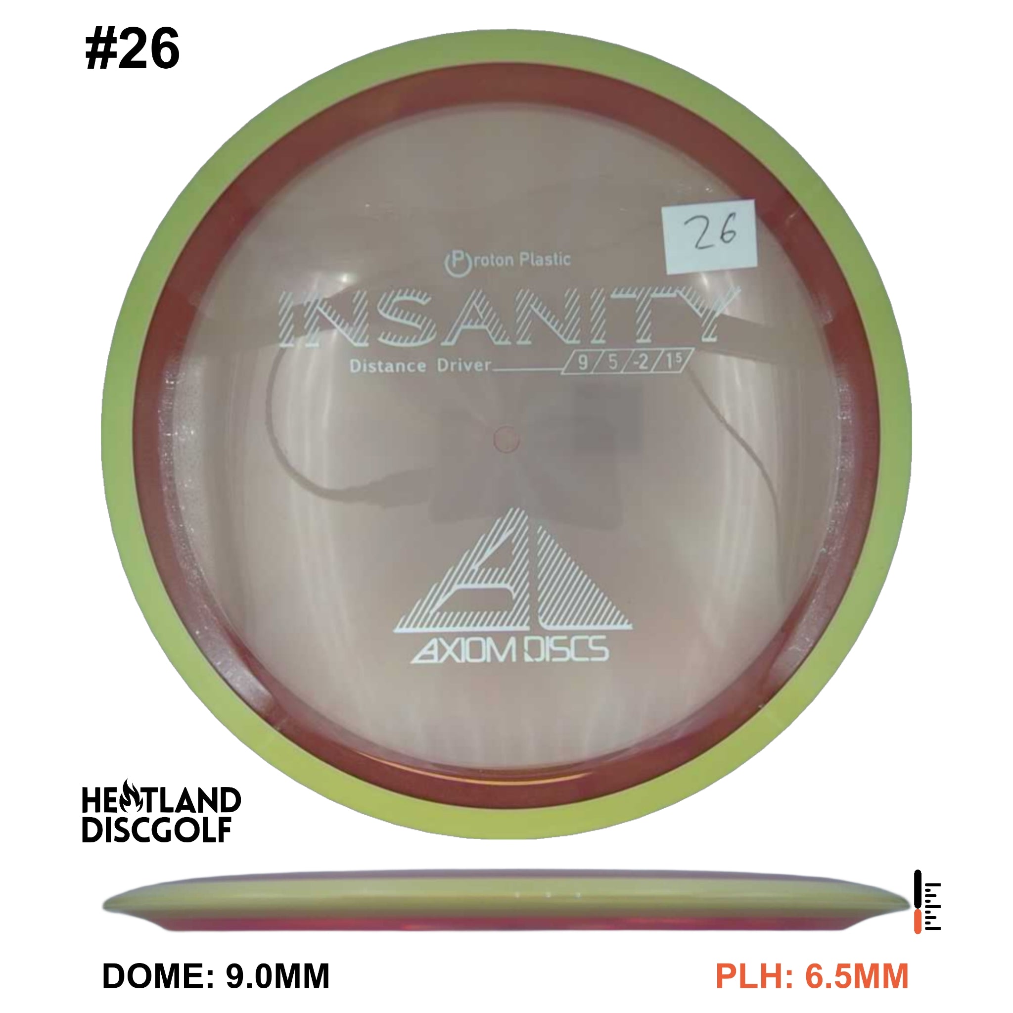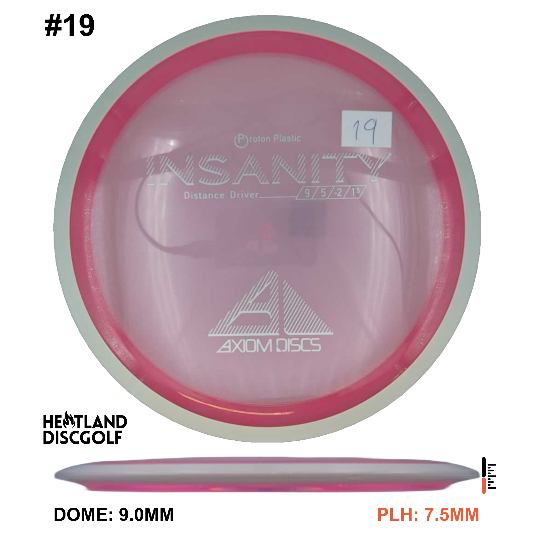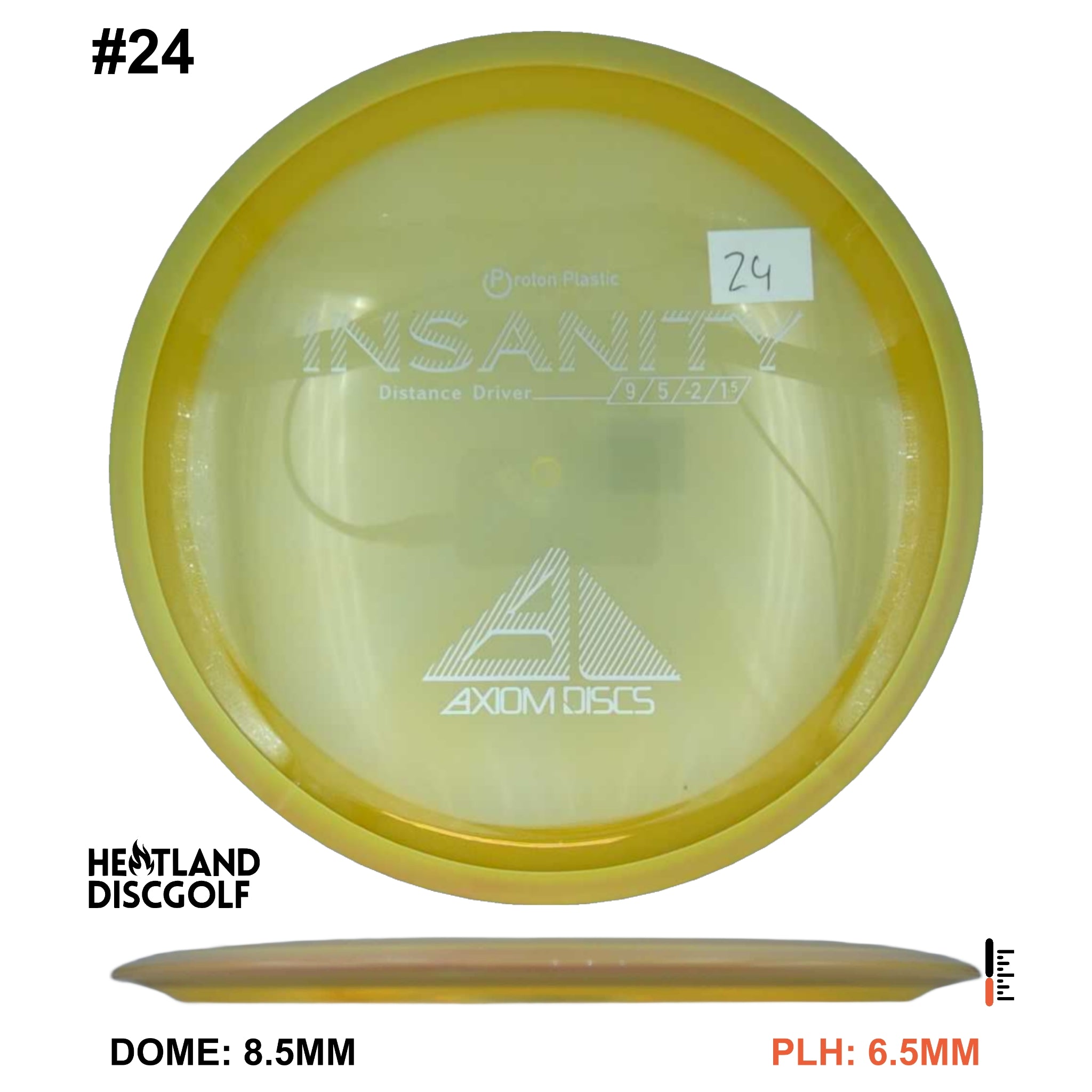 The Insanity is Axiom's first distance driver with a 20mm rim width. This disc is slightly less stable than the ultra popular MVP inertia. If you're looking for a straight flying GYRO driver with loads of attractive color options, you might as well try Insanity.