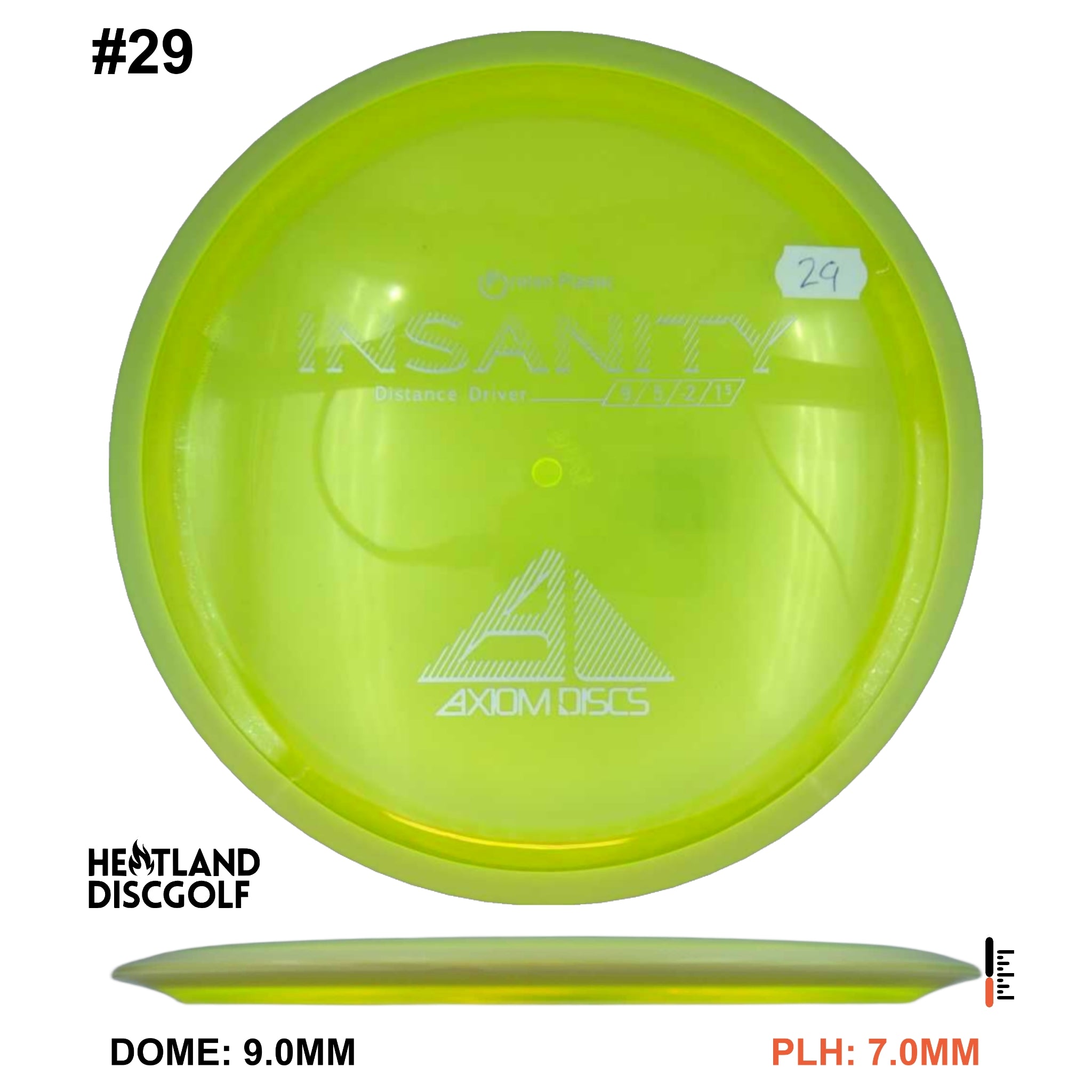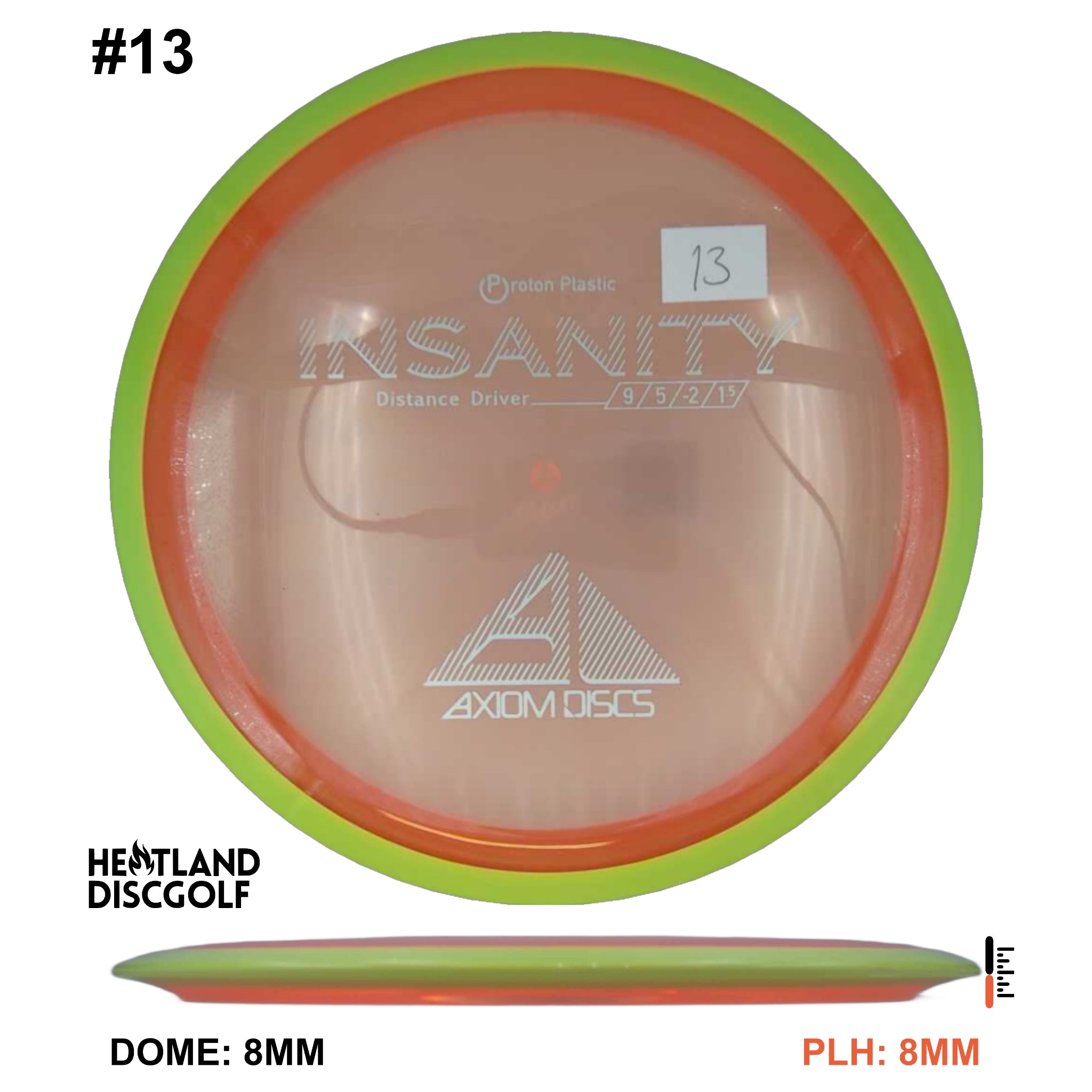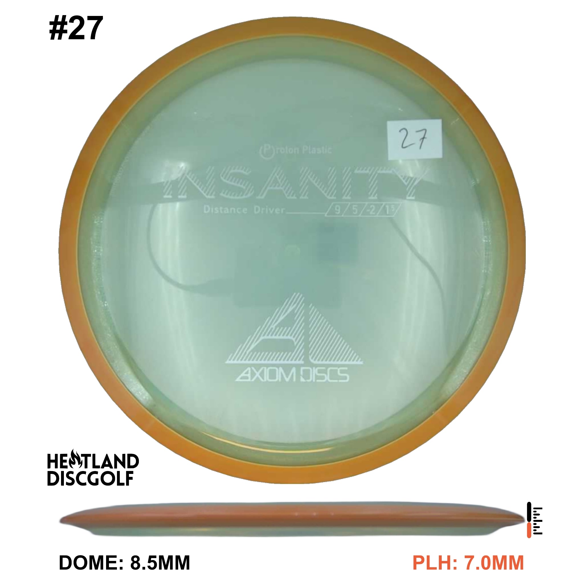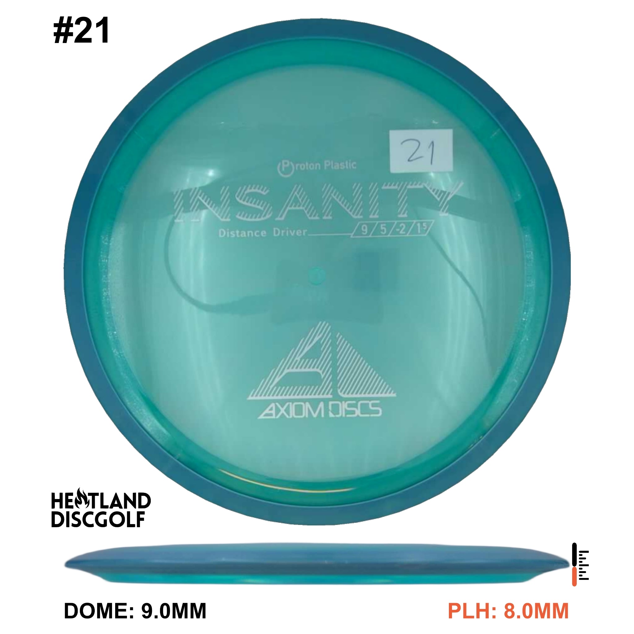 The Insanity is Axiom's first distance driver with a 20mm rim width. This disc is slightly less stable than the ultra popular MVP inertia. If you're looking for a straight flying GYRO driver with loads of attractive color options, you might as well try Insanity.