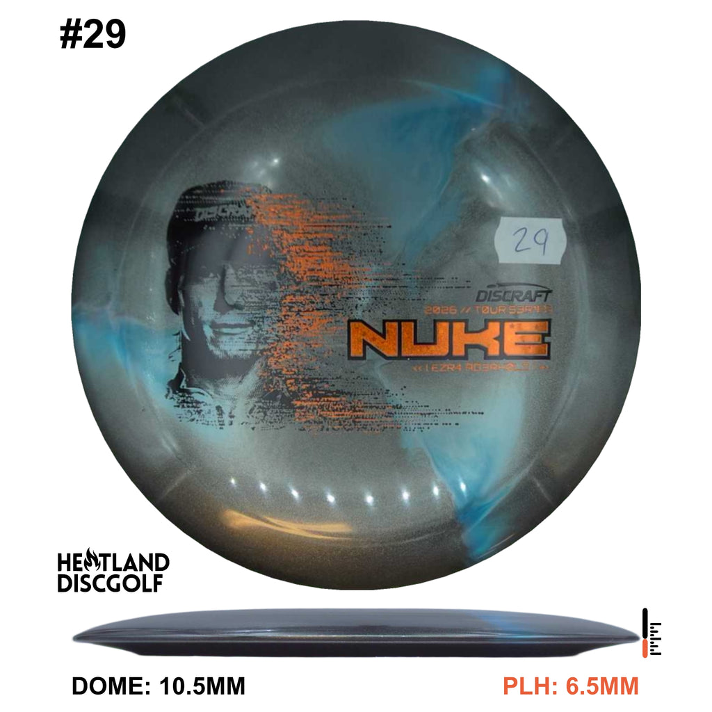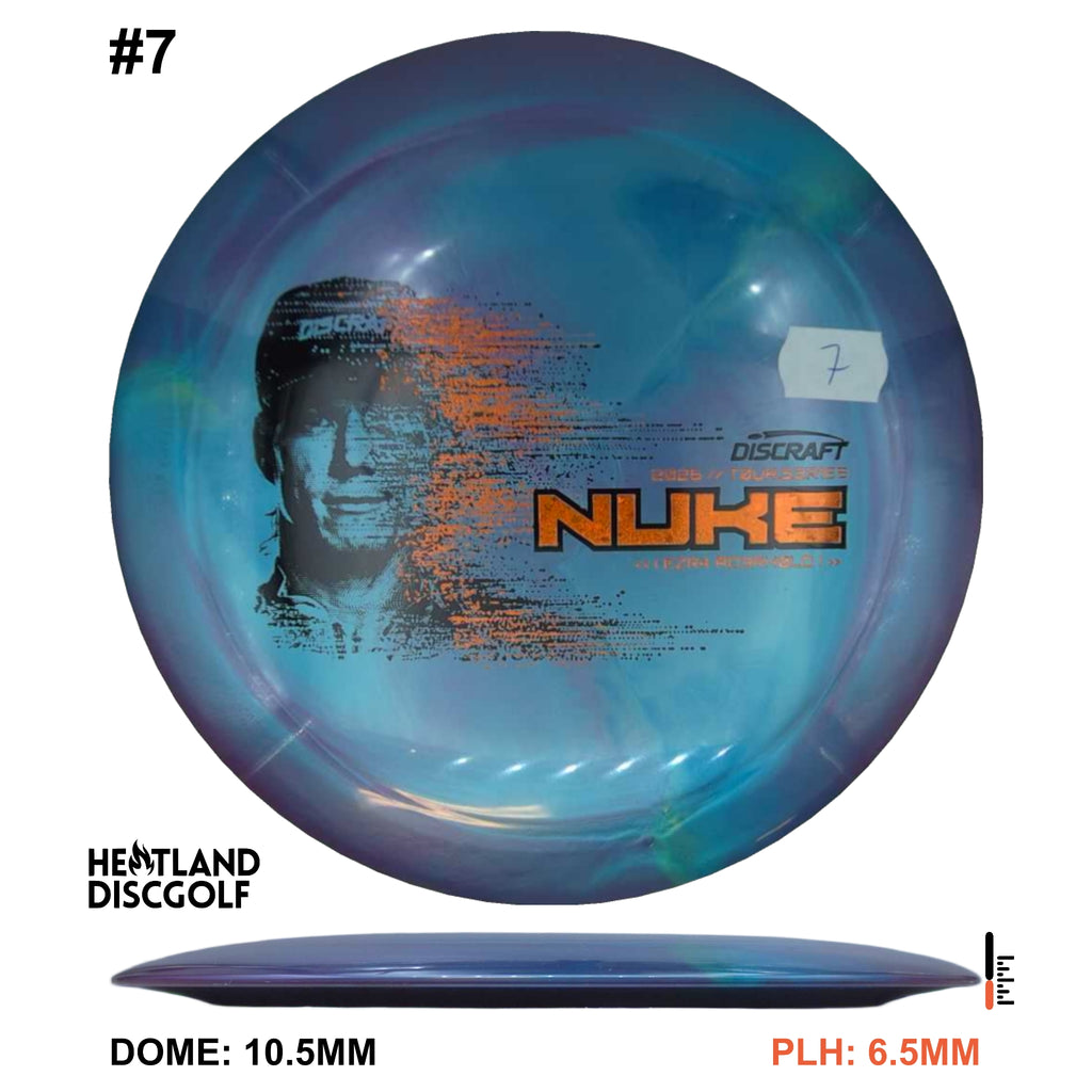 The Ezra Aderhold 2026 Tour Series Nuke is available in our new Special Blend (a Titanium & Big Z mix), bringing bold color pop, a tacky grip that stays secure under max power, and the durability to keep its feel and performance consistent when you’re ripping on it throughout a full season. On the course, the Nuke is a high-speed distance driver built for full-send shots and big finishes. It thrives when you give it full power, providing you with a reliable fade that helps you shape long hyzers, flex lines, and aggressive headwind drives. If you’re looking for a driver that rewards power with real distance and a trustworthy finish, the Nuke is built for that slot.