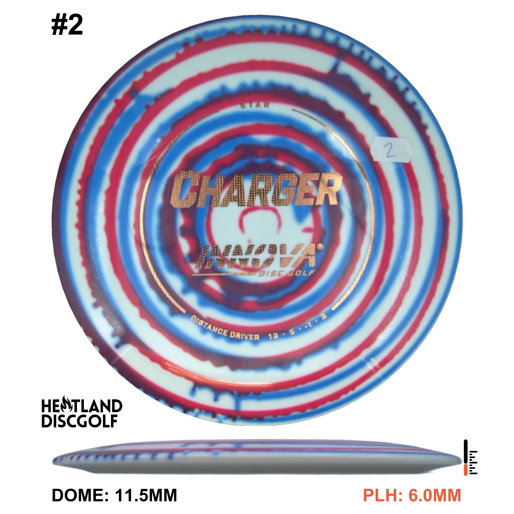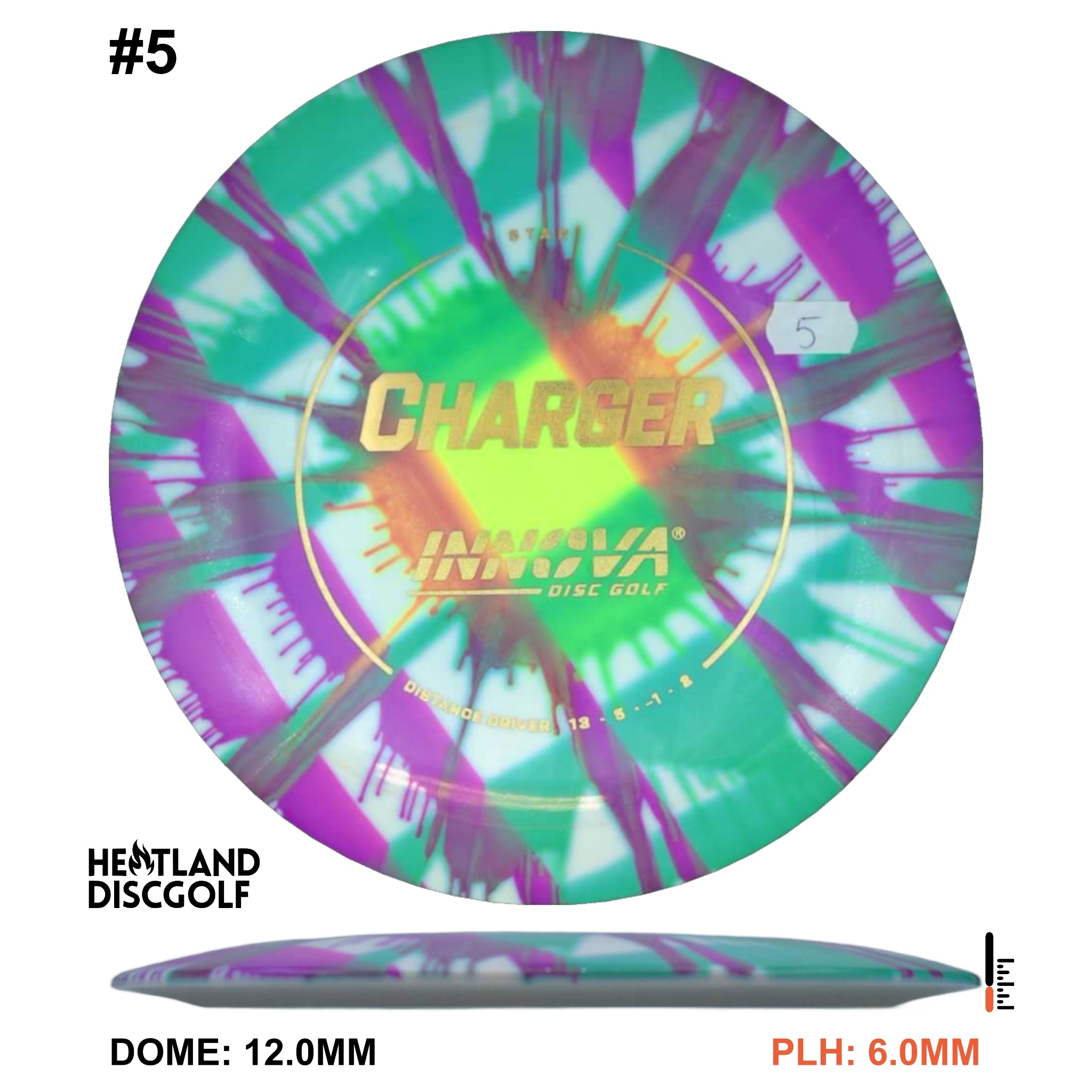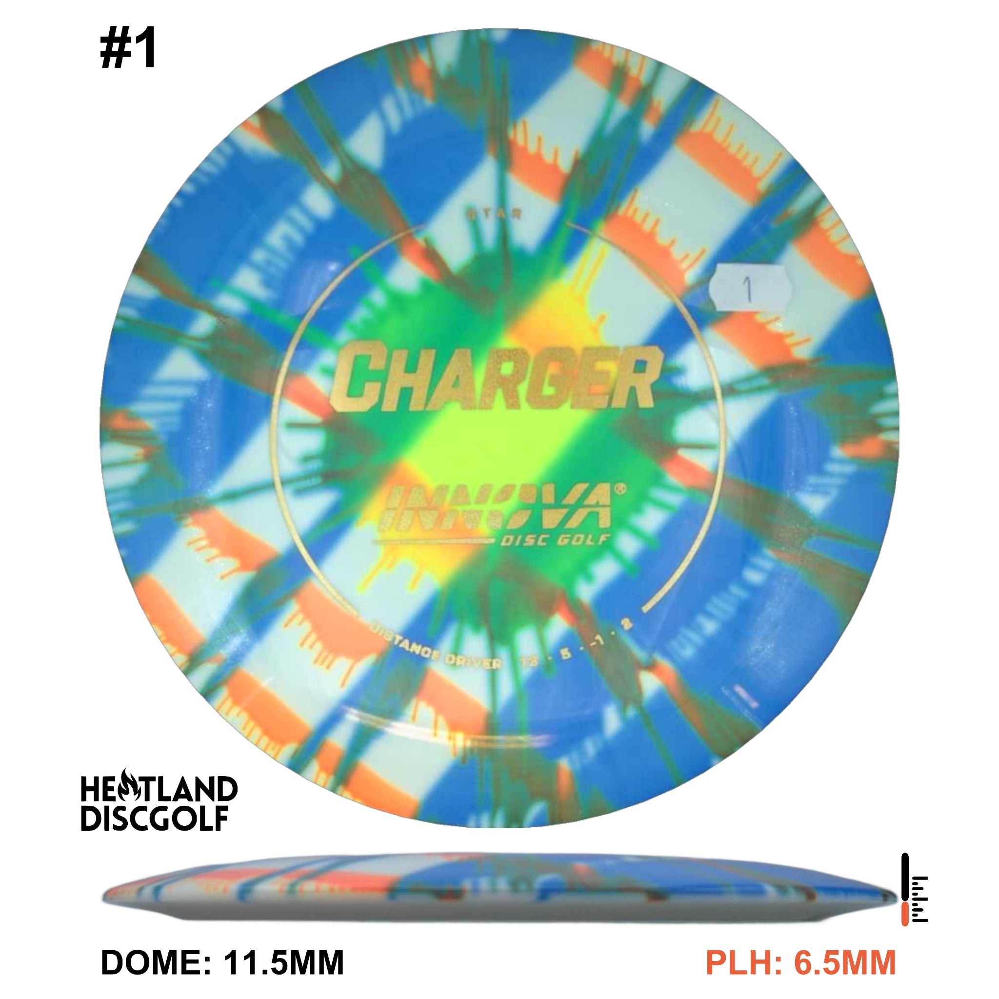 The Charger is a straight-finishing, 13-speed driver that can be thrown at full power without worrying about the disc flipping over. The Charger fills a gap between the Destroyer and the Shryke. For players looking for the consistency of the Destroyer with less fade, try the Charger. For those looking for the big distance of the Shryke, but in a disc that can better handle the wind, try the Charger.