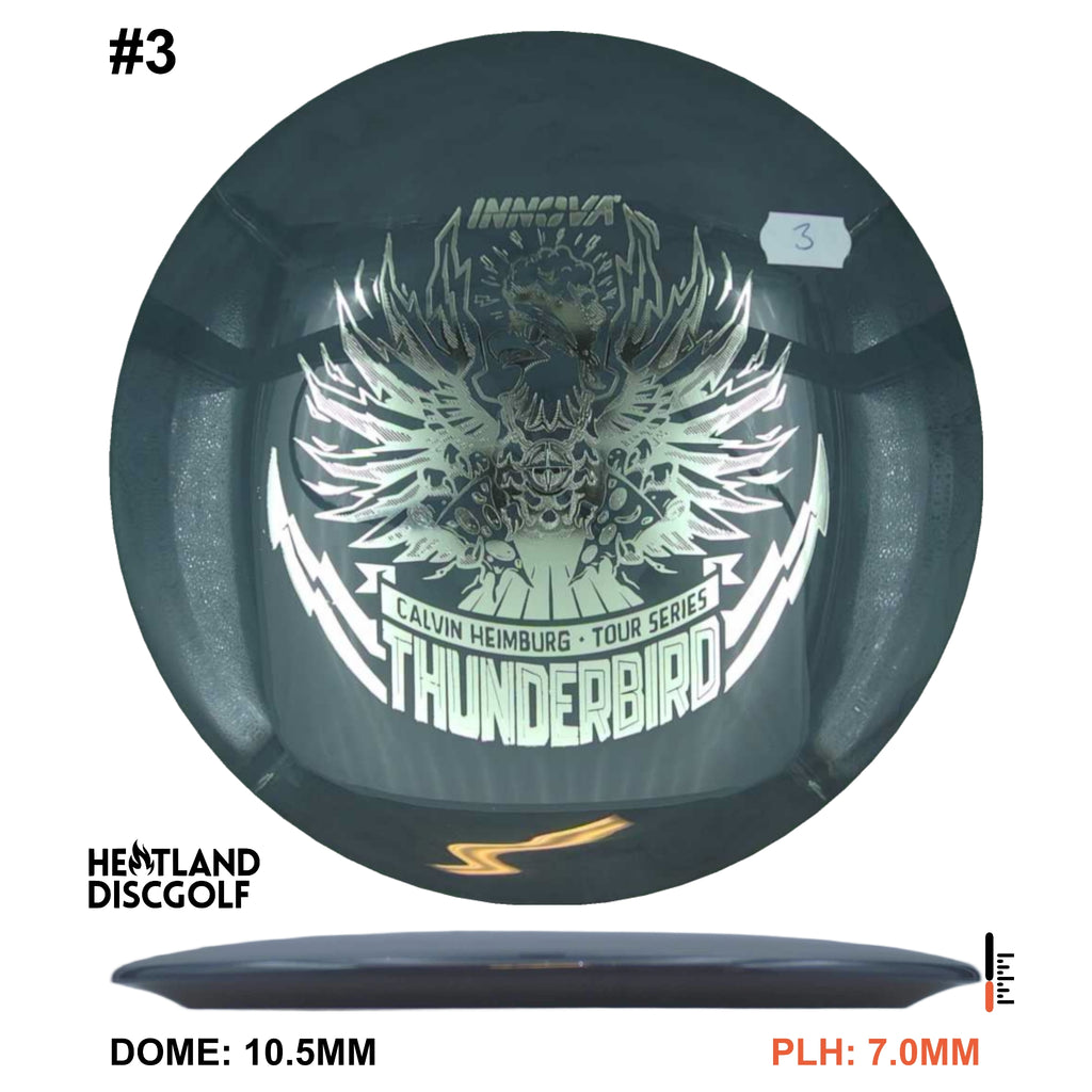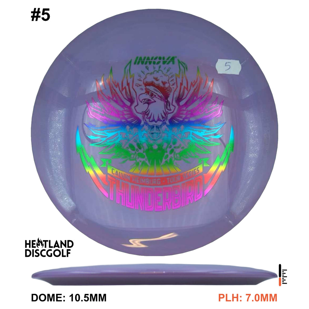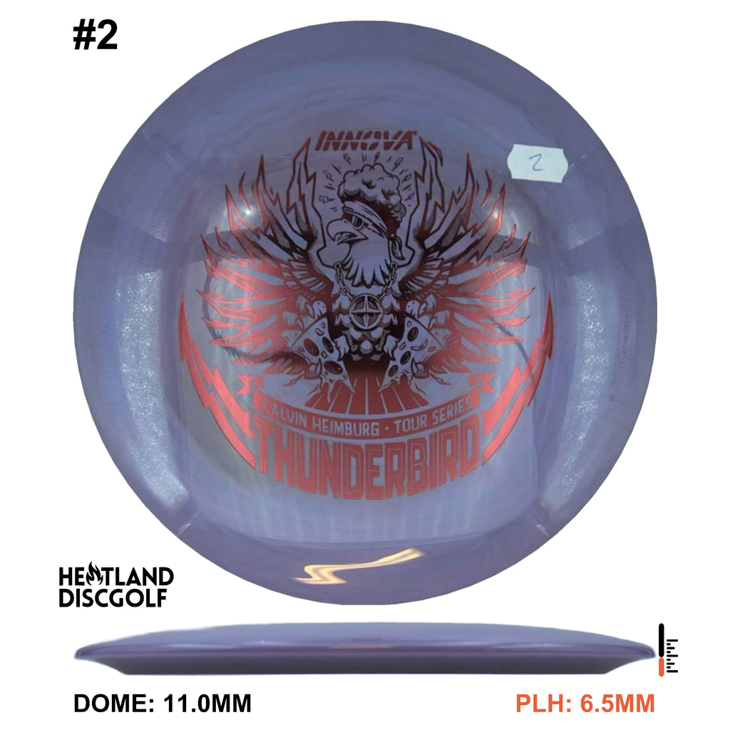 For Calvin, the [9|5|0|2] Innova Thunderbird is an ideal blend of speed, aggressiveness, and predictability. Ready to juice up your fairway driver game? Add some spark to your bag w/ the 2025 Calvin Heimburg Tour Series Star Thunderbird!