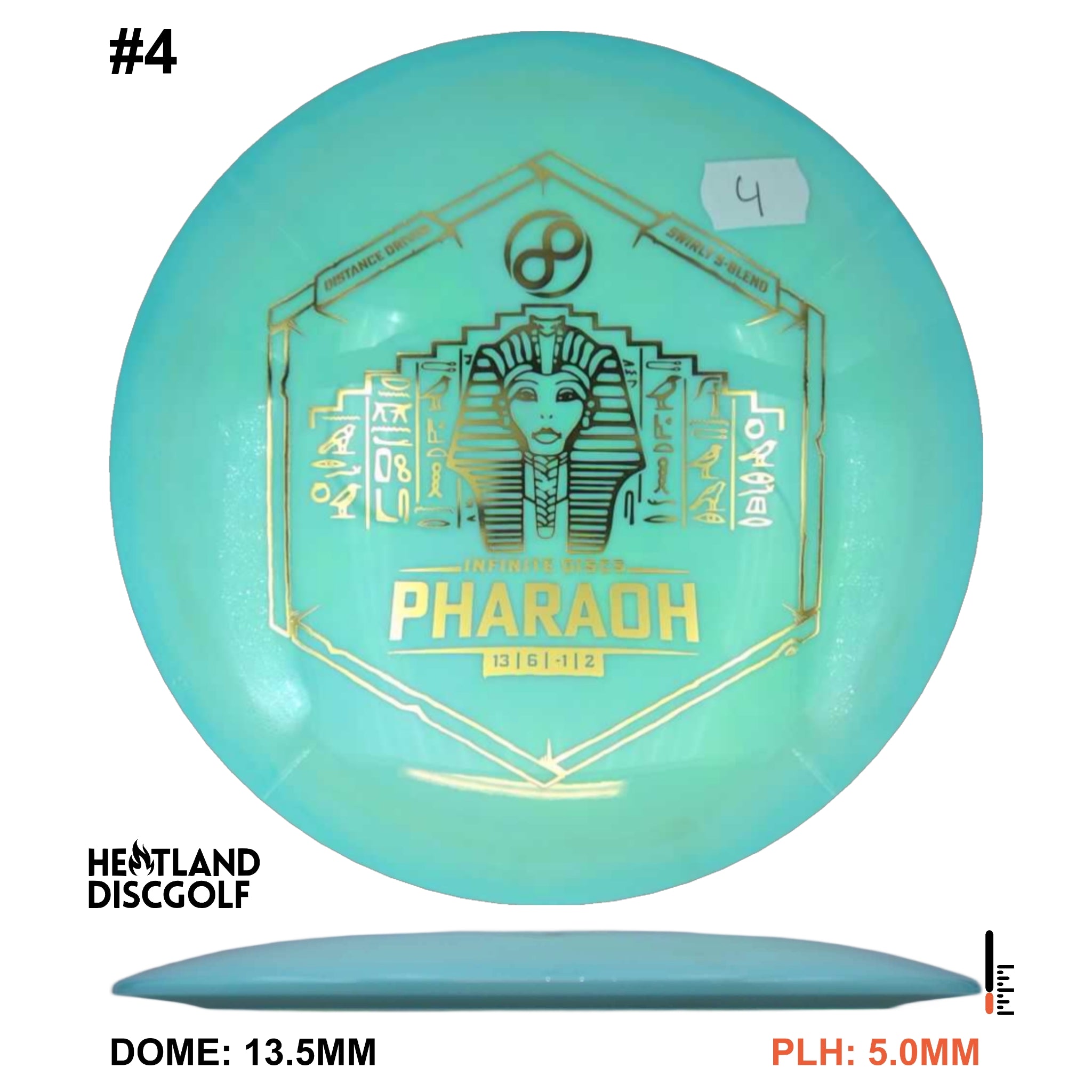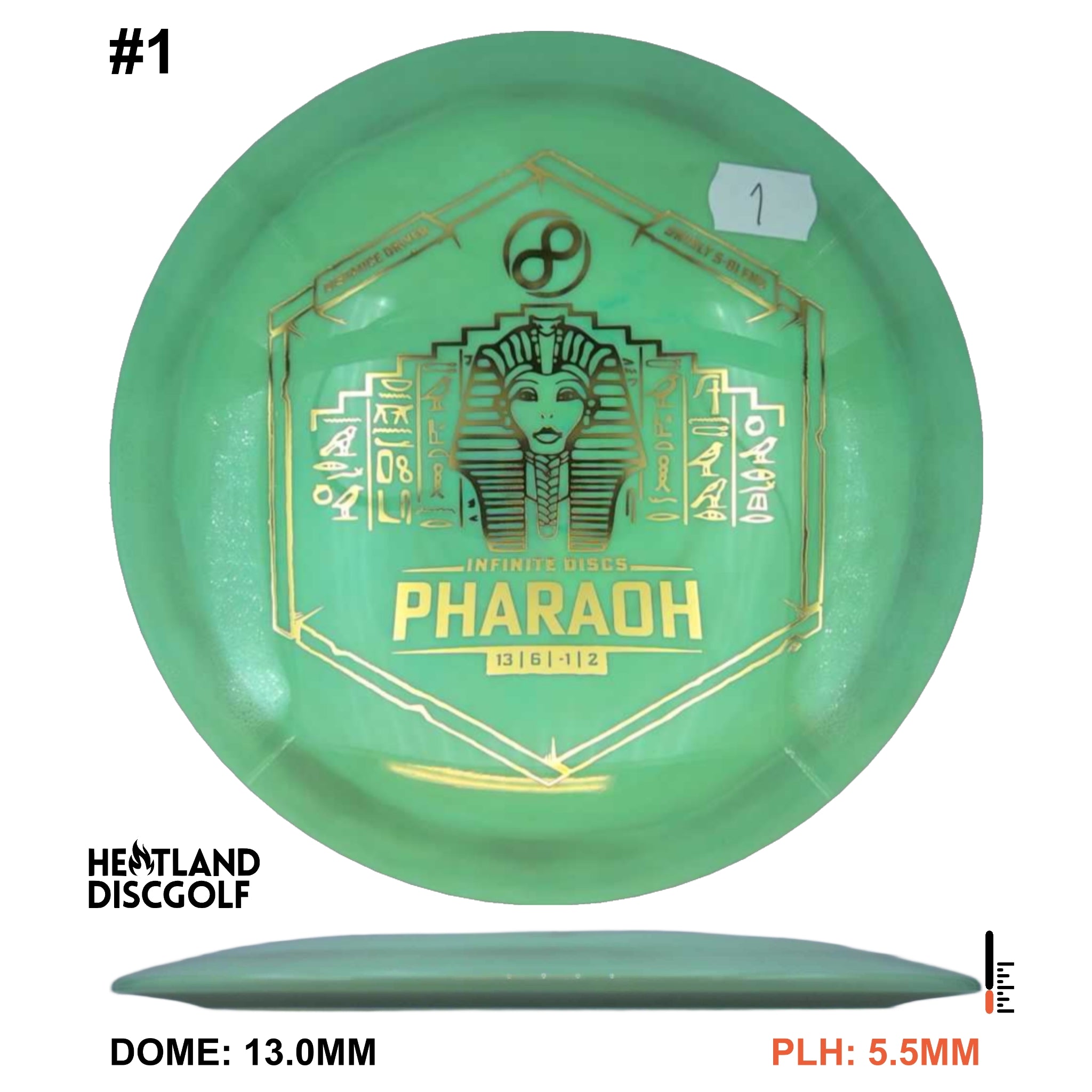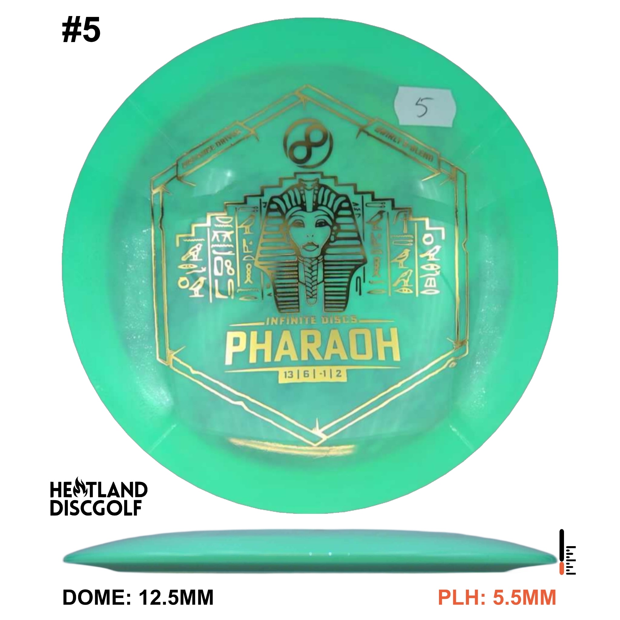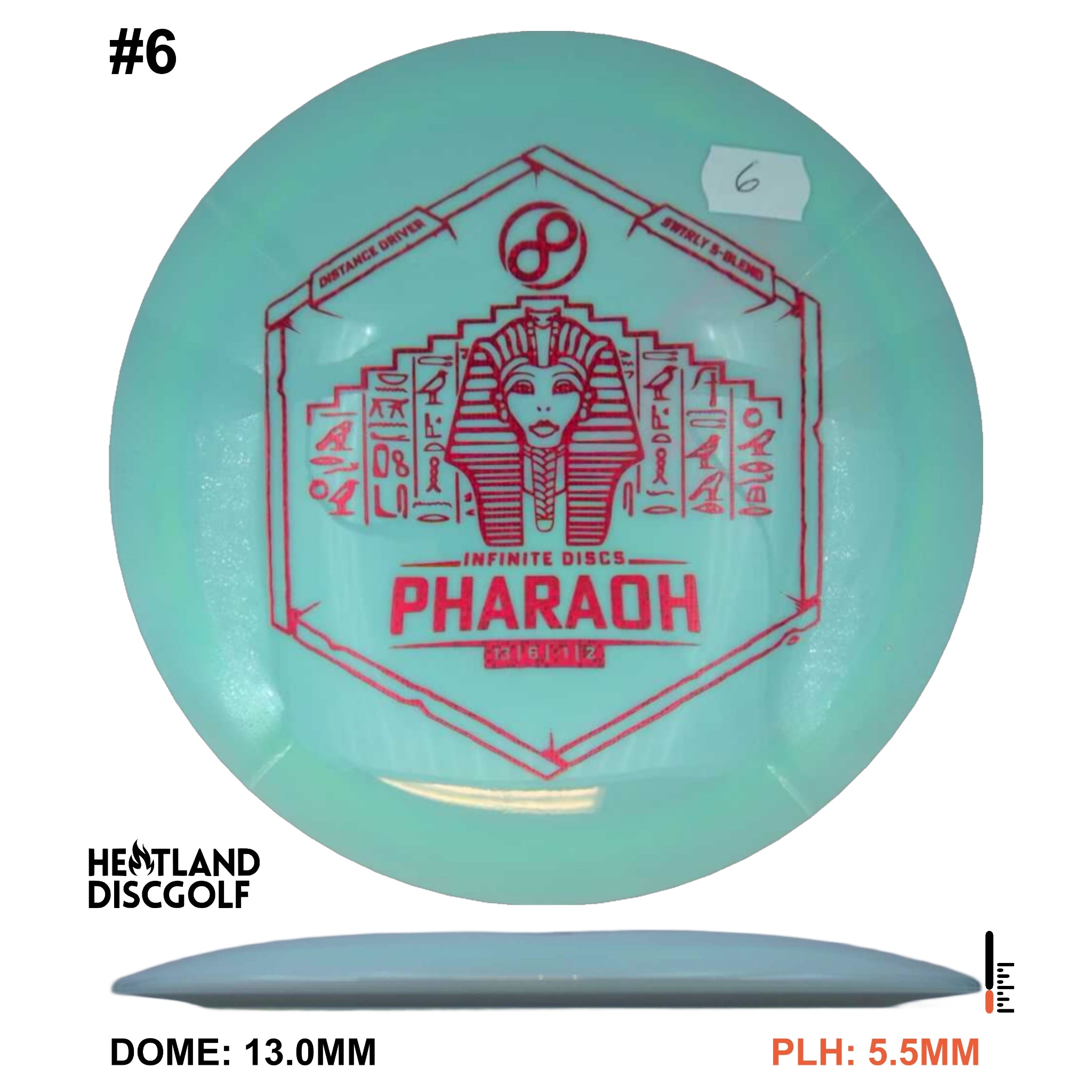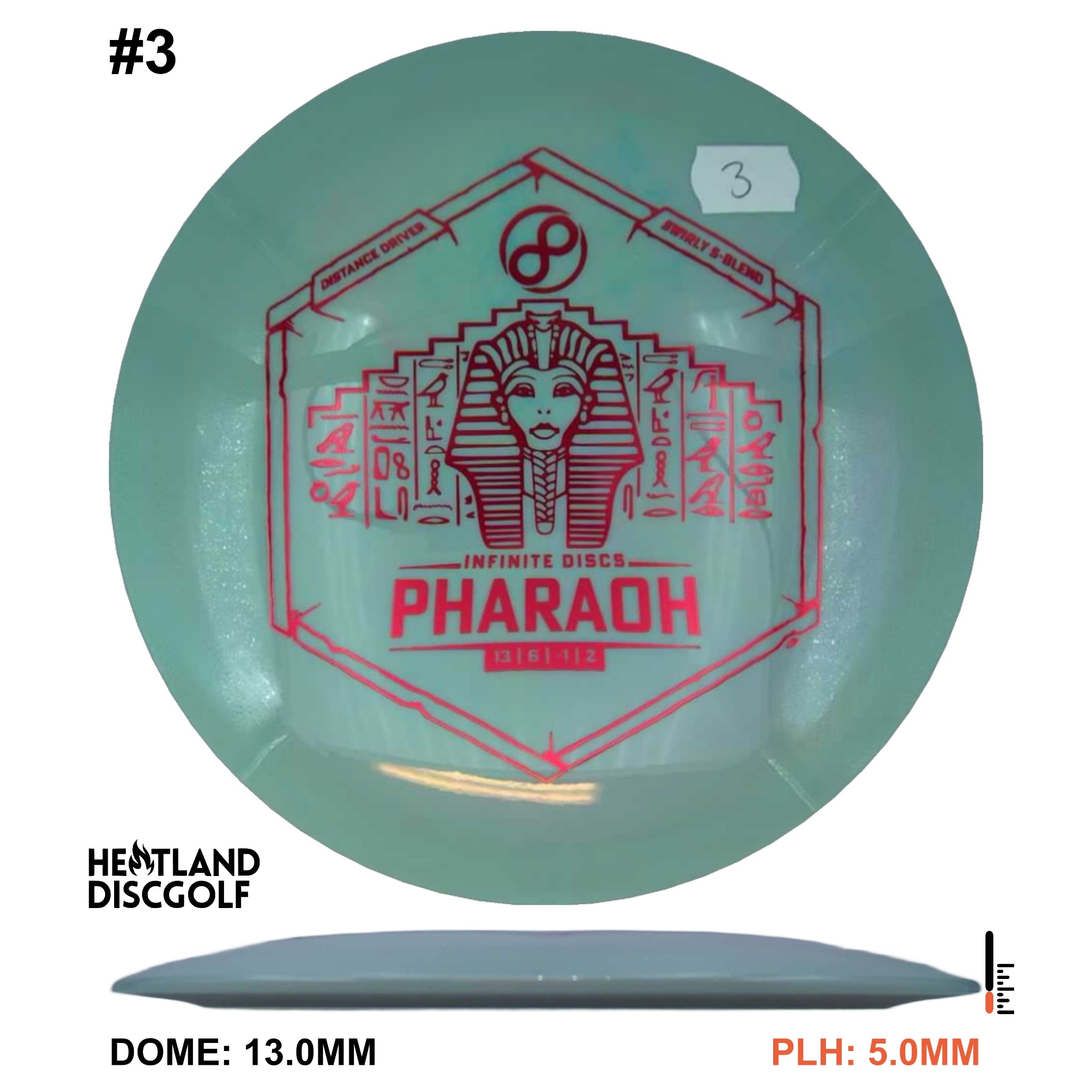 NOTE: The flight numbers may change on different runs. For example, the "Run 3" I-Blend Pharaoh is more understable and has a flight rating of 13 / 6 / -2 / 2 which is different than the first two runs which were on Swirly S-Blend plastic. The Run 5 Swirly S-Blend Pharaoh is more overstable than any previous run.