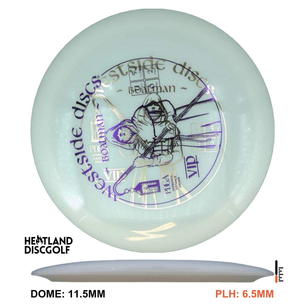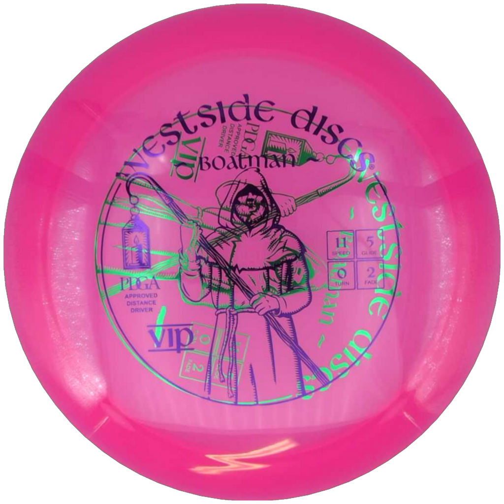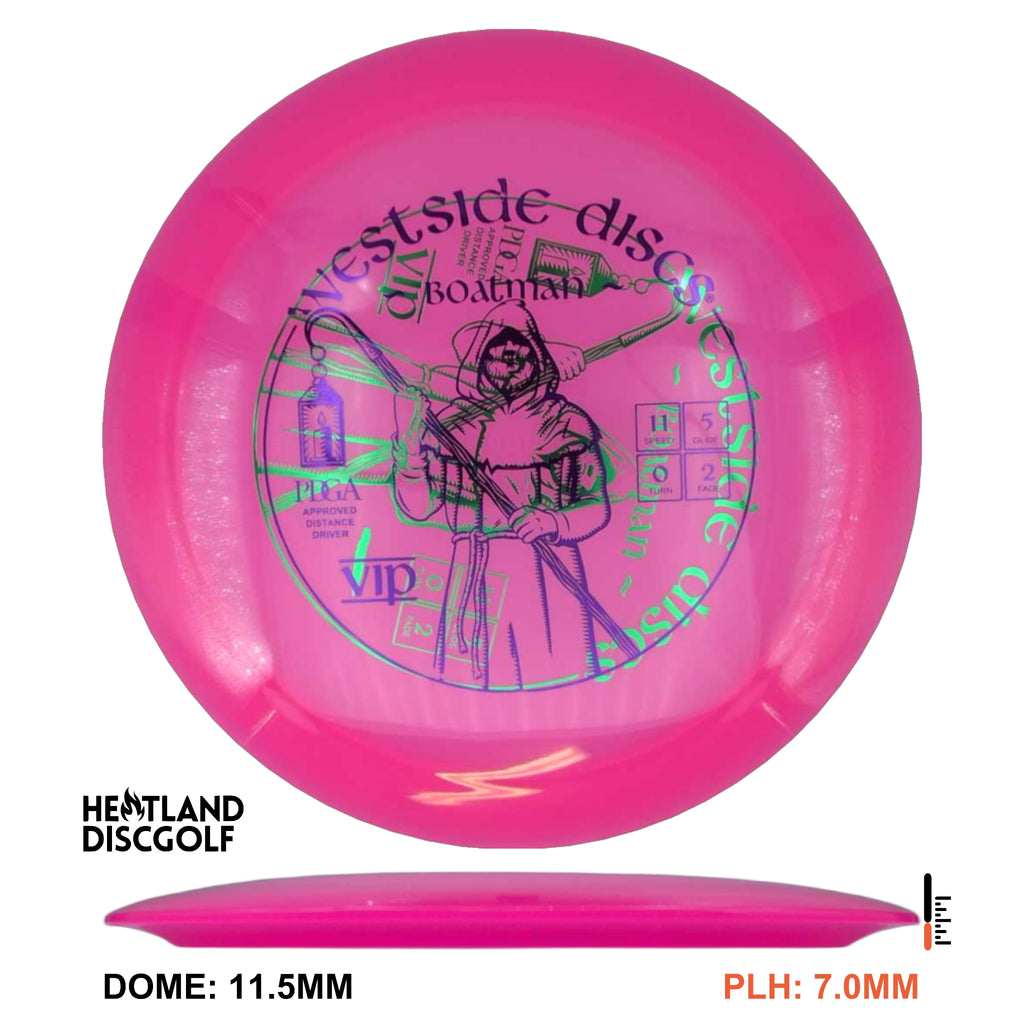 The Westside Boatman is one of our fastest drivers that was designed to fit all sizes of hands. It will give you that fast flight and is very predictable. It has a very long glide with very little fade. For faster arm speeds it will hold the line and has a very overstable finish. For slower arm speeds you will be able to count on an overstable finish but will give you that extra glide you are looking for without having to grip such a big rim.
