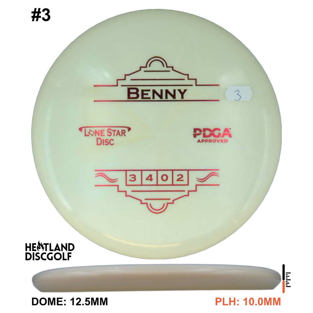The Benny is a beaded, straight-to-stable complement to our flagship Penny Putter. It promises a consistent and straight flight with a touch a reliable fade at the end of its flight: an ideal throwing putter.