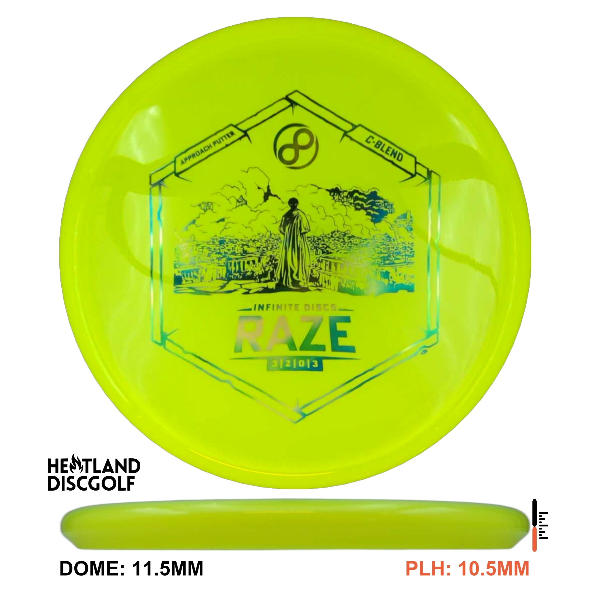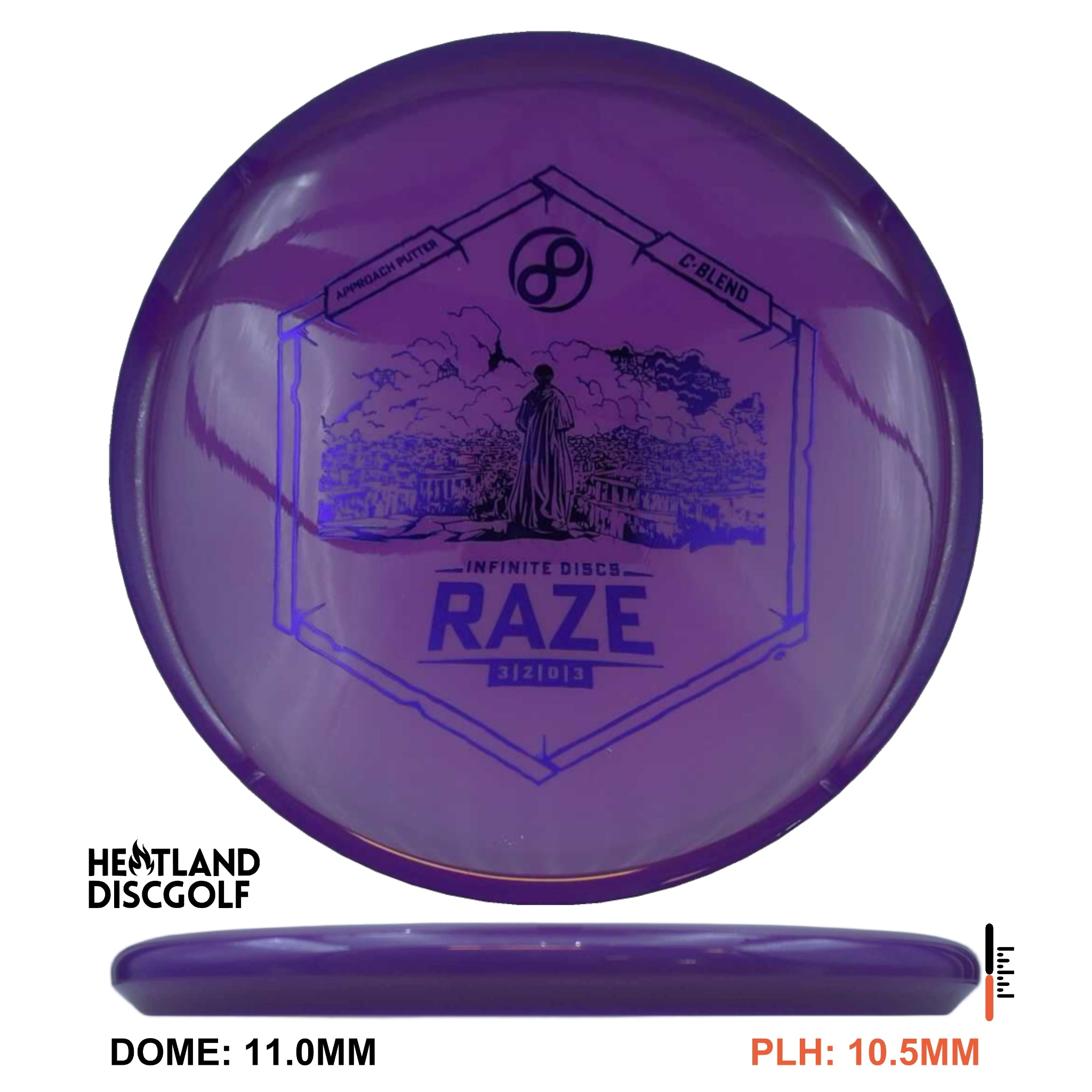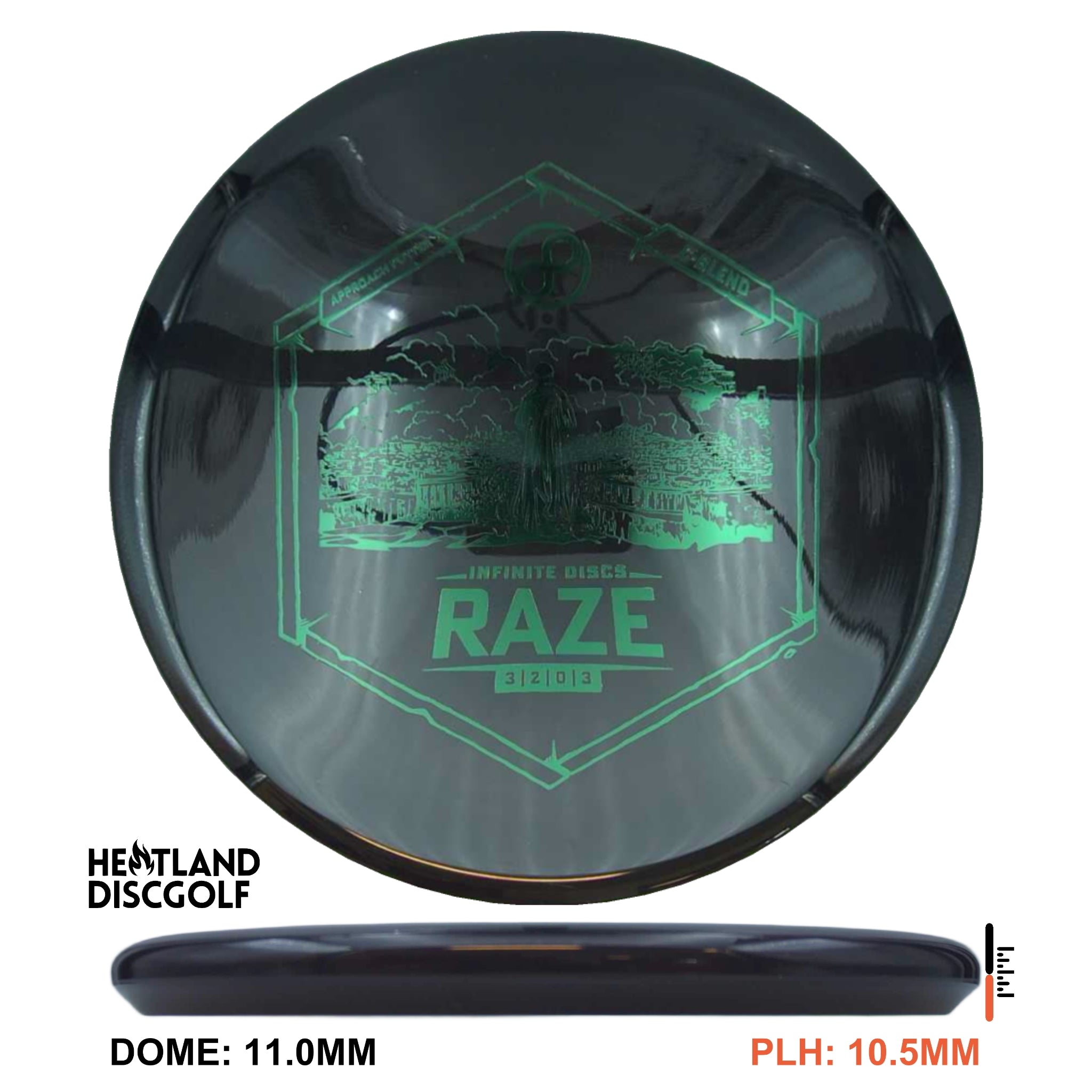The Raze by Infinite Discs is an overstable approach putter. This disc is ideal for off the tee and approaching the green. Its flat top makes it ideal for forehand shots.