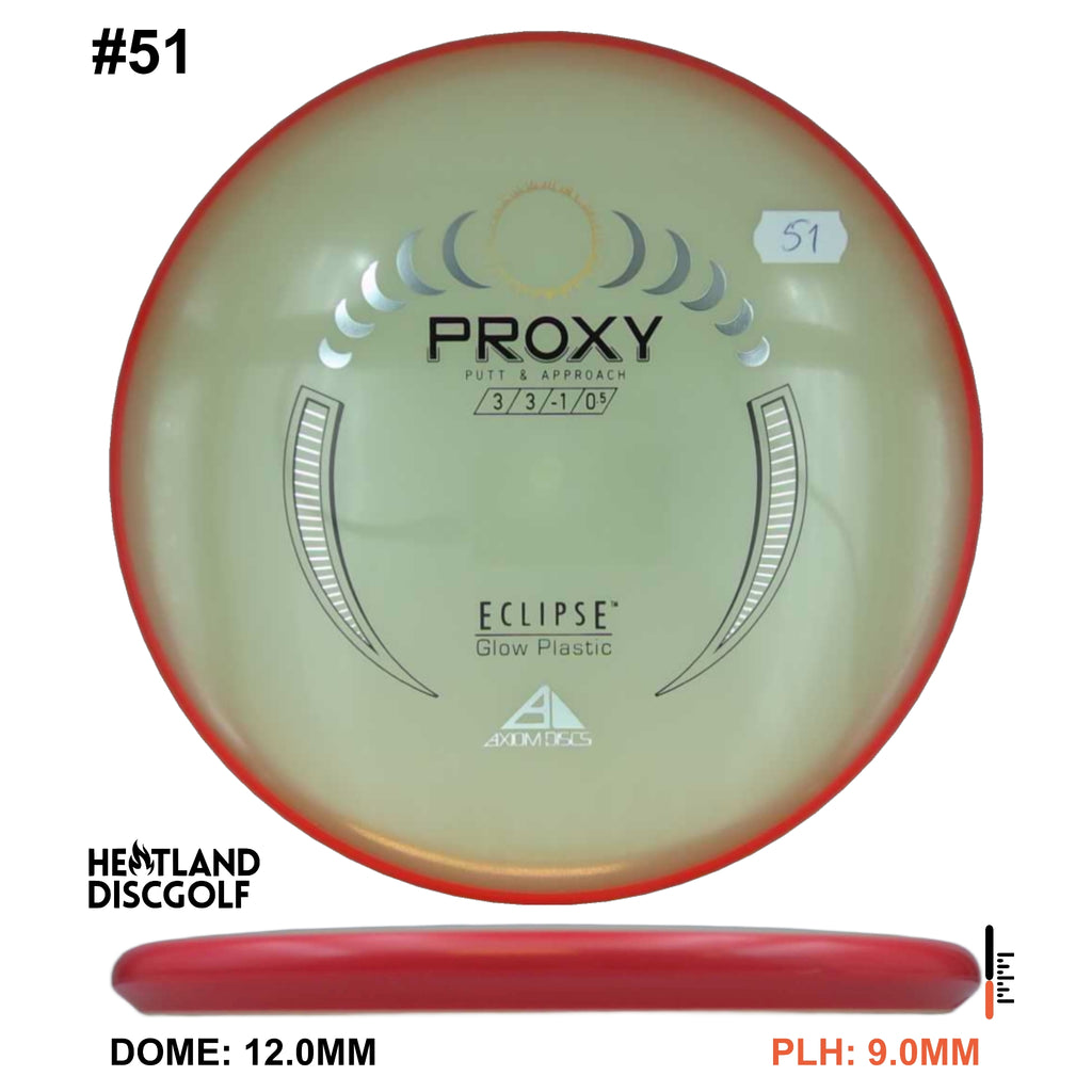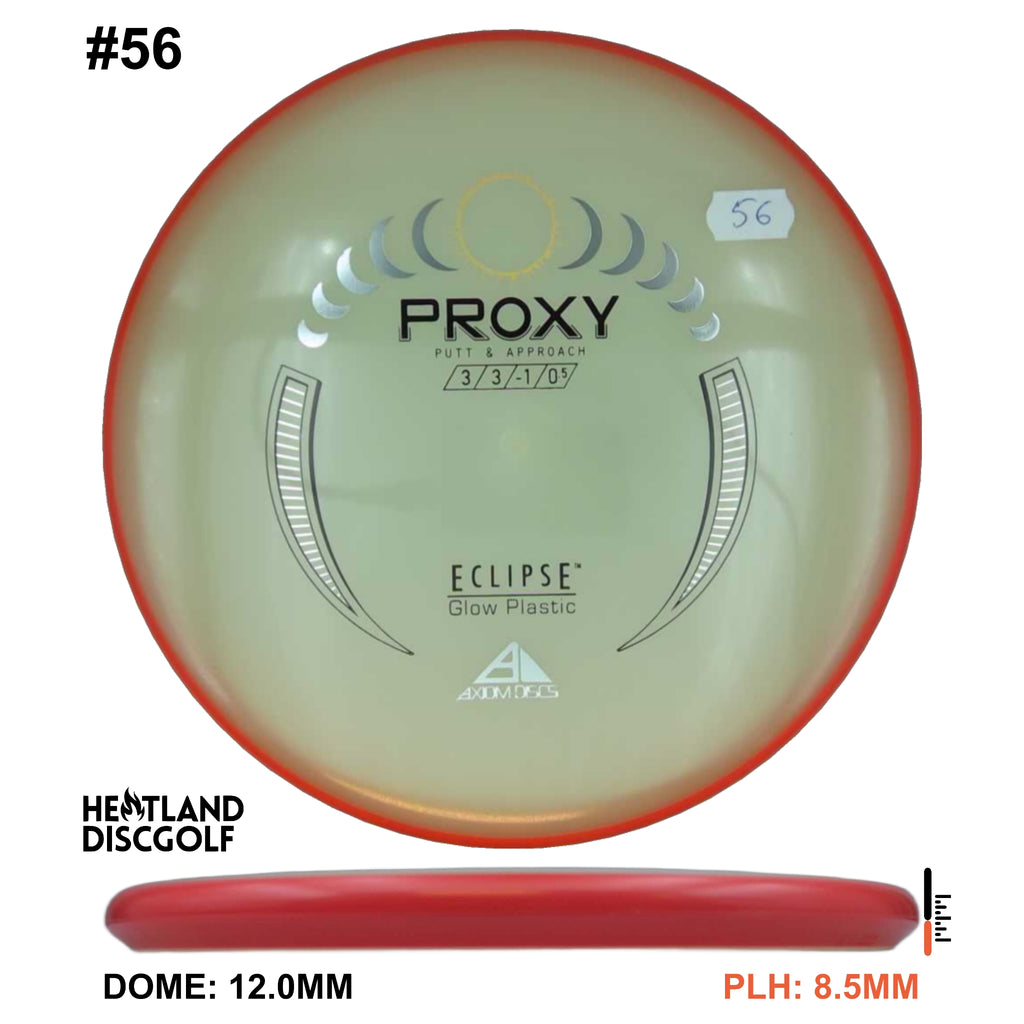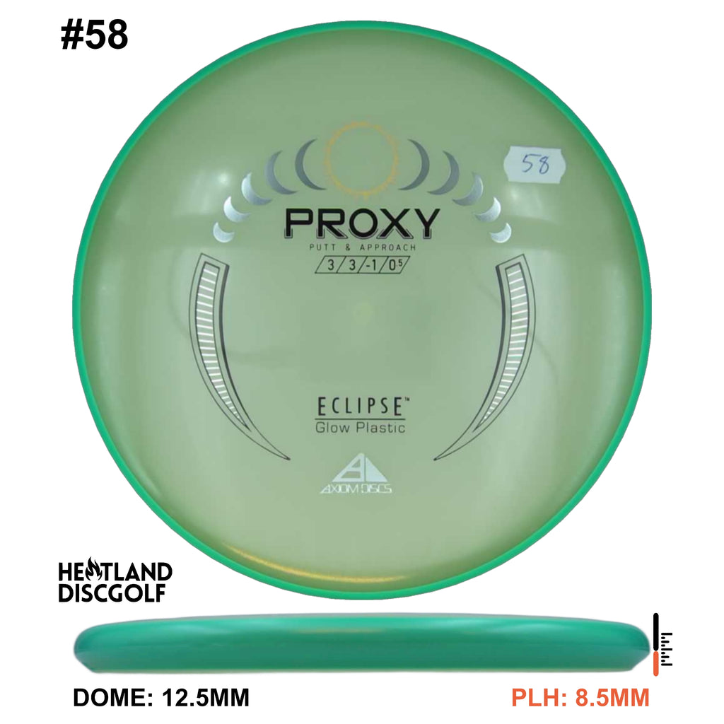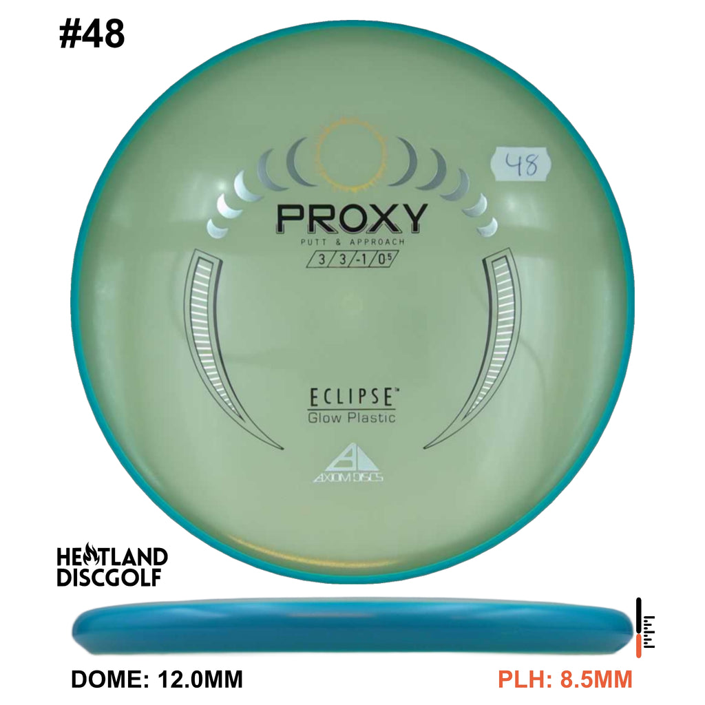 Description: The Proxy is our straightest flying putter. It can hold a very straight line even with low power. Throwers with moderate power will be able to achieve hyzers, panning anhyzers, as well as straight shots depending on the angle of release. It features a similar comfortable feel as the Envy which makes it very reliable and forgiving. The Proxy is set to release this winter." - by Axiom Discs