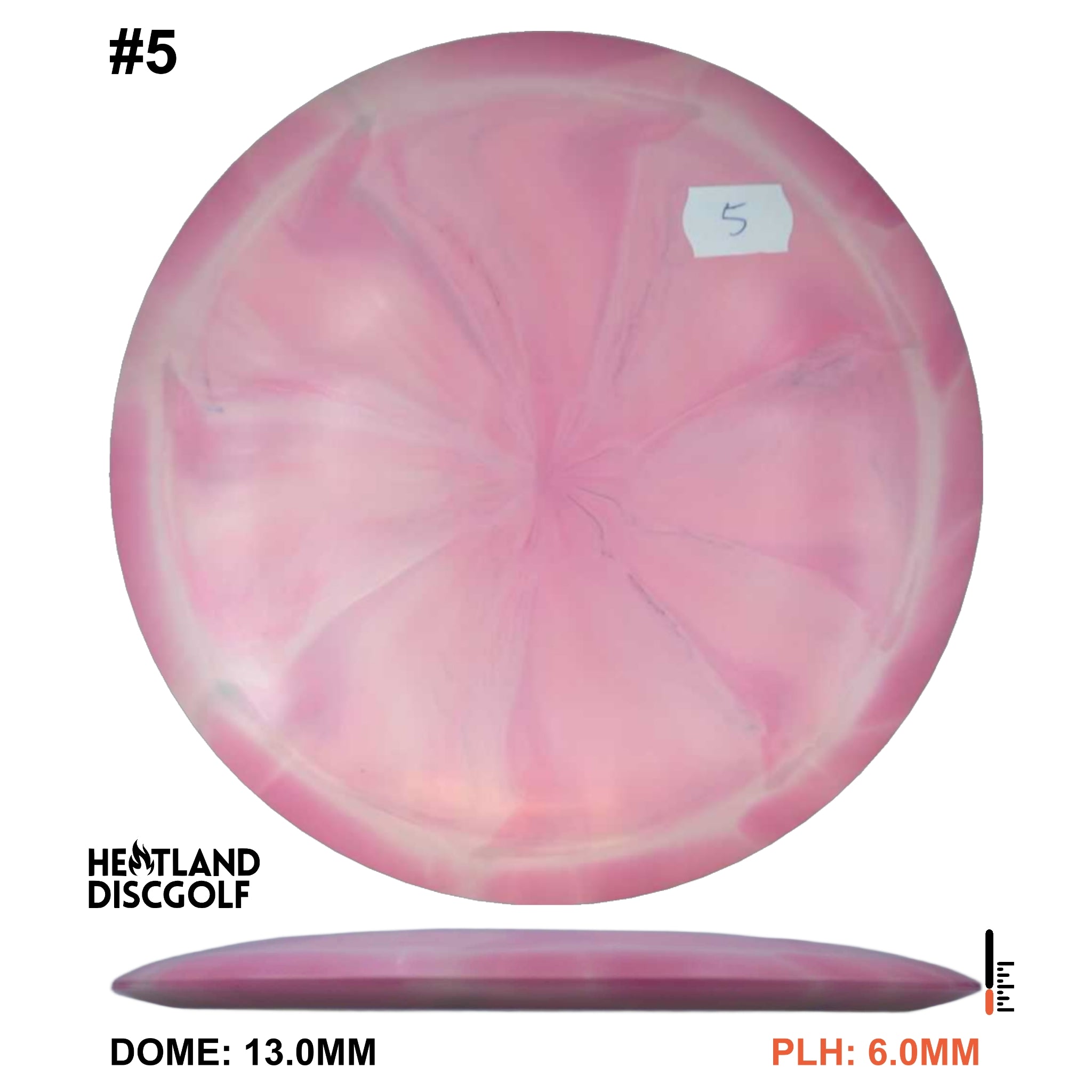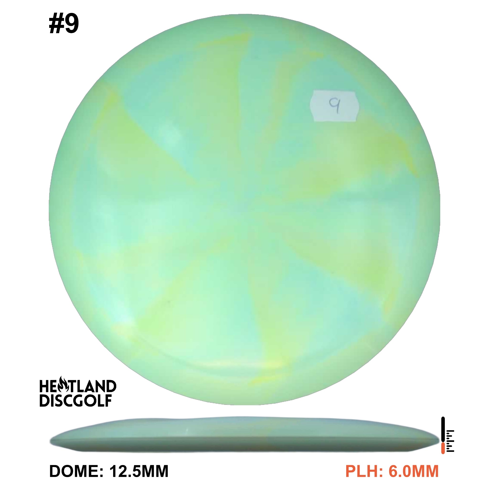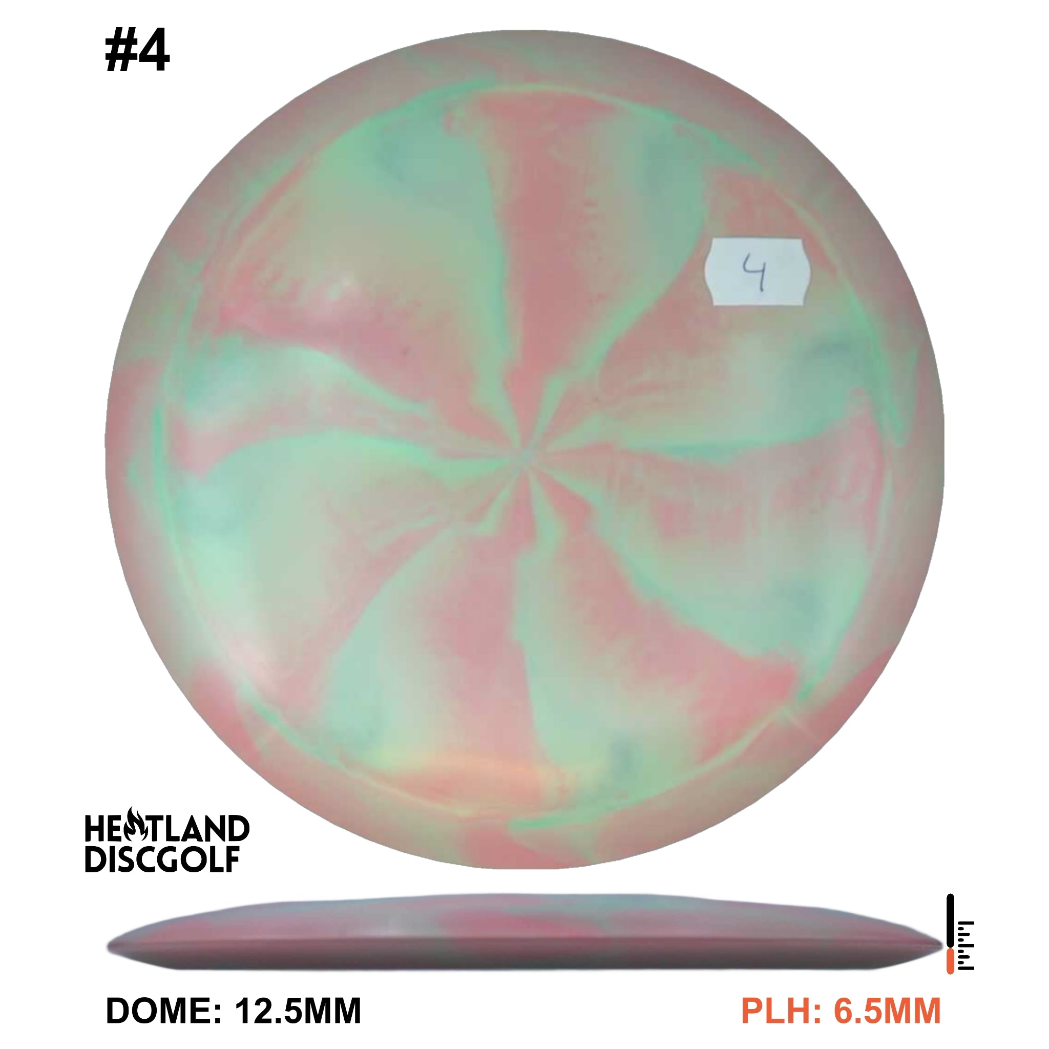 The Heat is an understable Discraft fairway driver that is great for long turnovers in the woods, big rollers in the open or hyzer flip shots. These Uli Heats have a bottom stamp with the Uli shield logo and were run in ESP Swirl plastic.