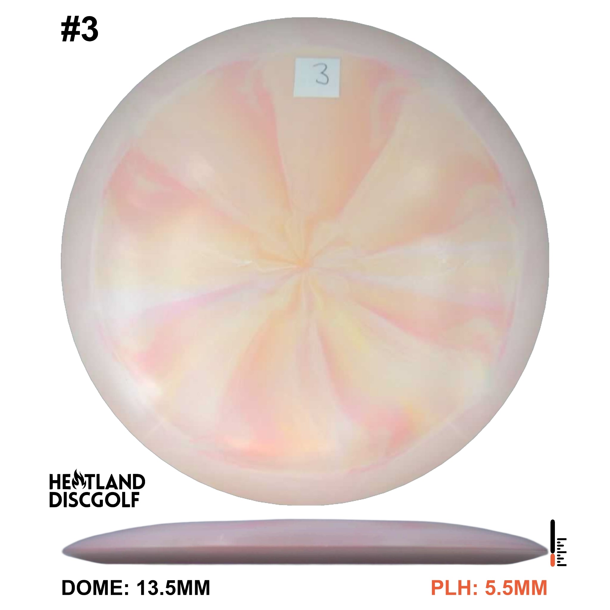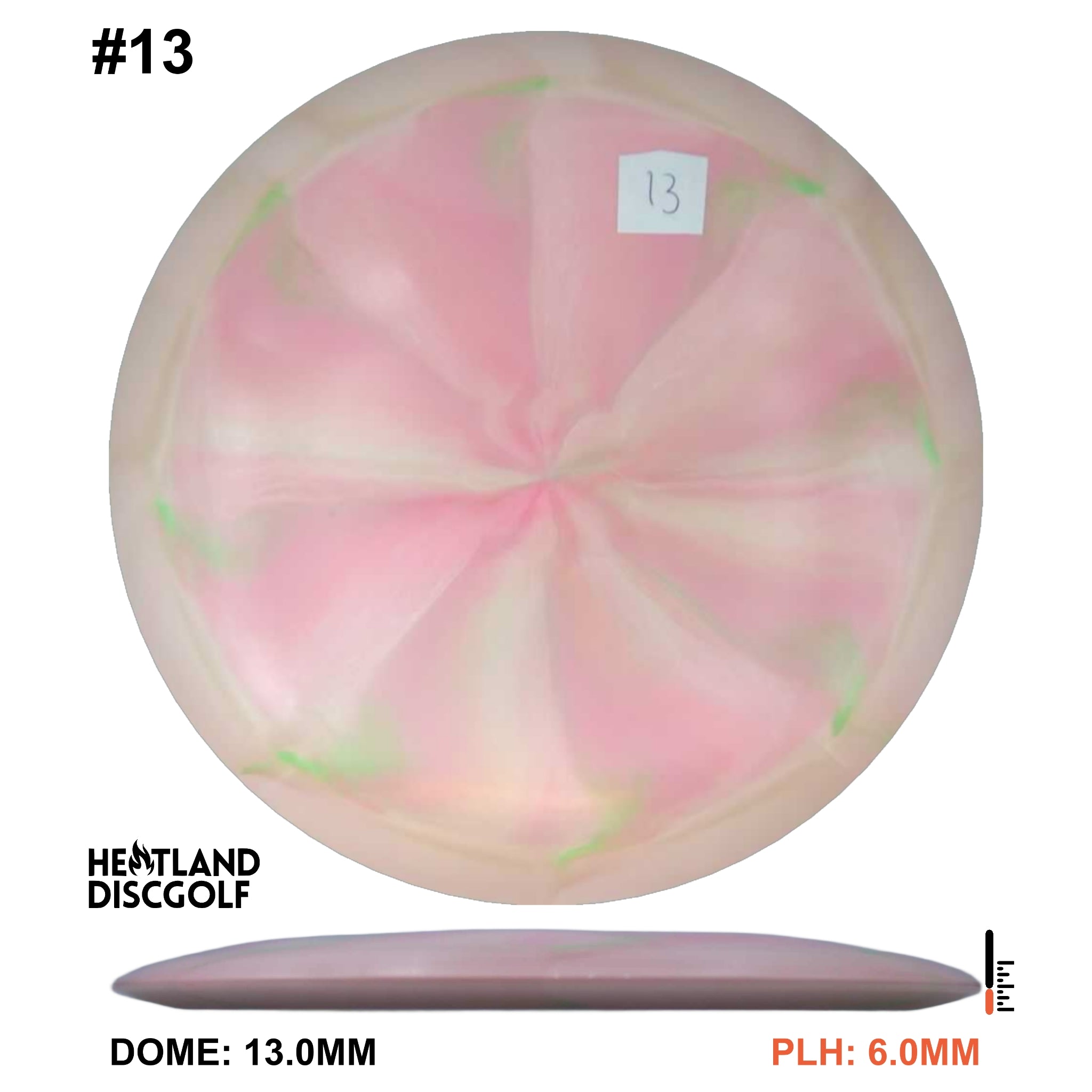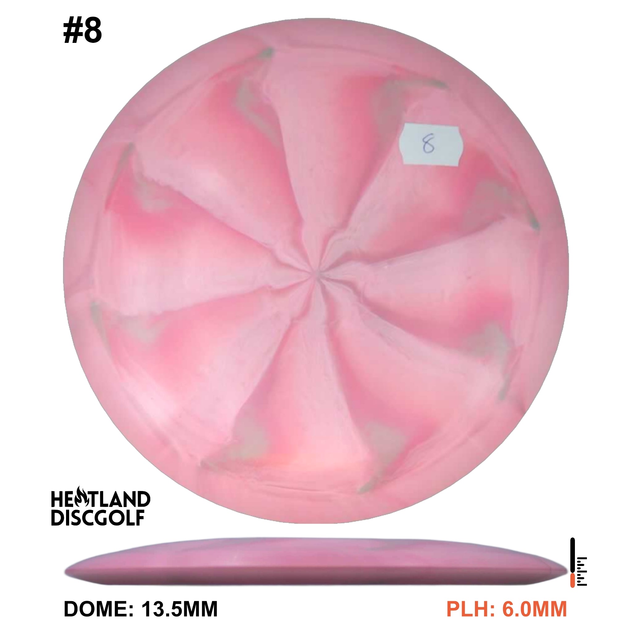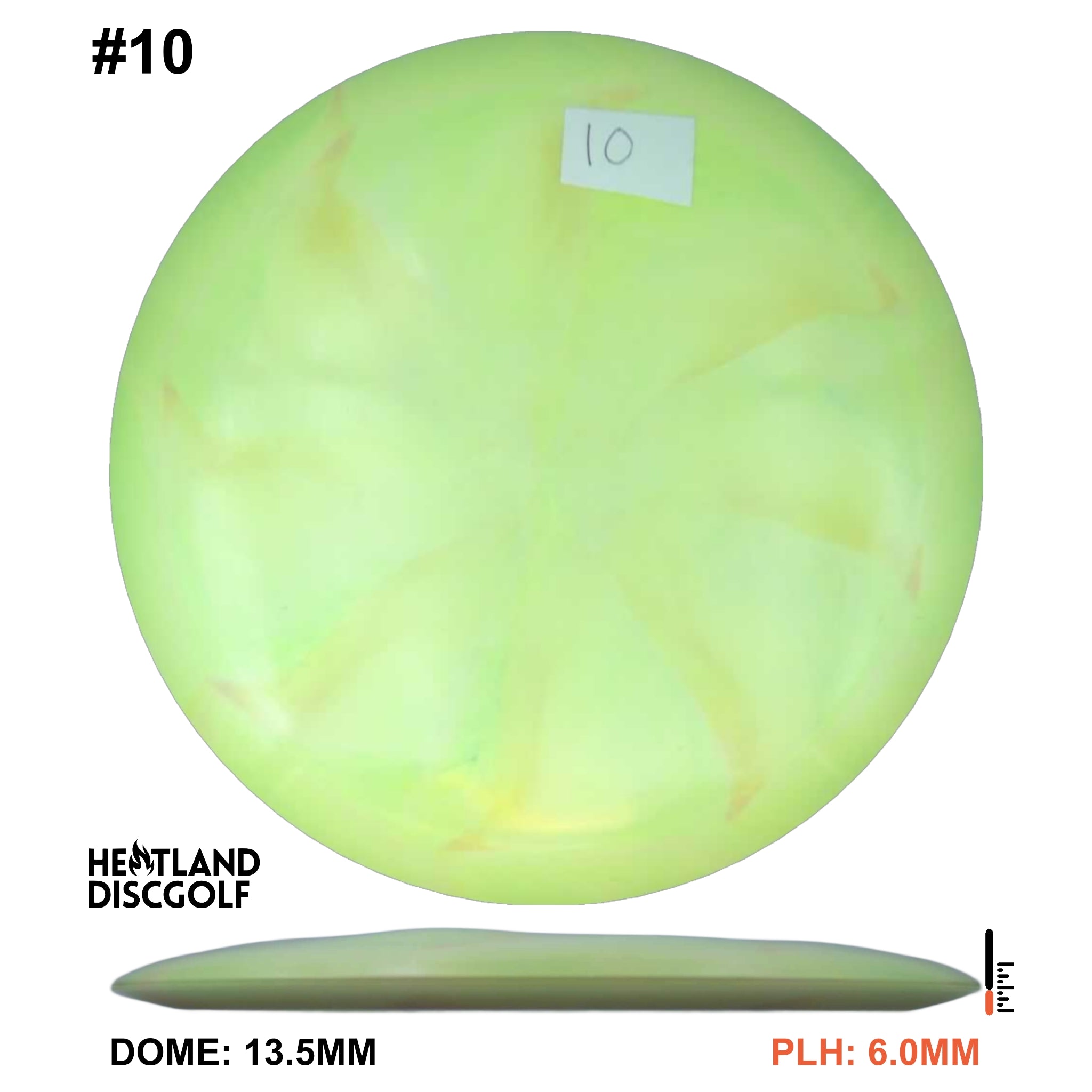 The Heat is an understable Discraft fairway driver that is great for long turnovers in the woods, big rollers in the open or hyzer flip shots. These Uli Heats have a bottom stamp with the Uli shield logo and were run in ESP Swirl plastic.