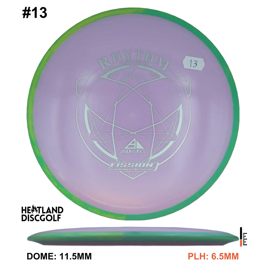PLEASE WELCOME THE NEXT GREAT UNDERSTABLE DISC FROM AXIOM – THE RHYTHM! WITH A SPEED OF 7, GLIDE OF 5, TURN OF -2, AND A FADE OF 1, THE RHYTHM WAS DESIGNED TO BE EITHER A GREAT FIRST DRIVER OR A LINE SHAPING FAIRWAY DRIVER FOR POWER ARMS.