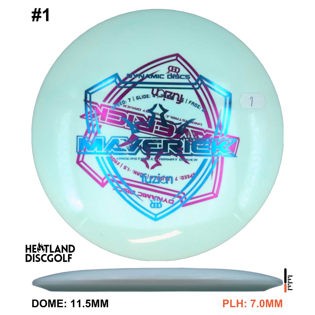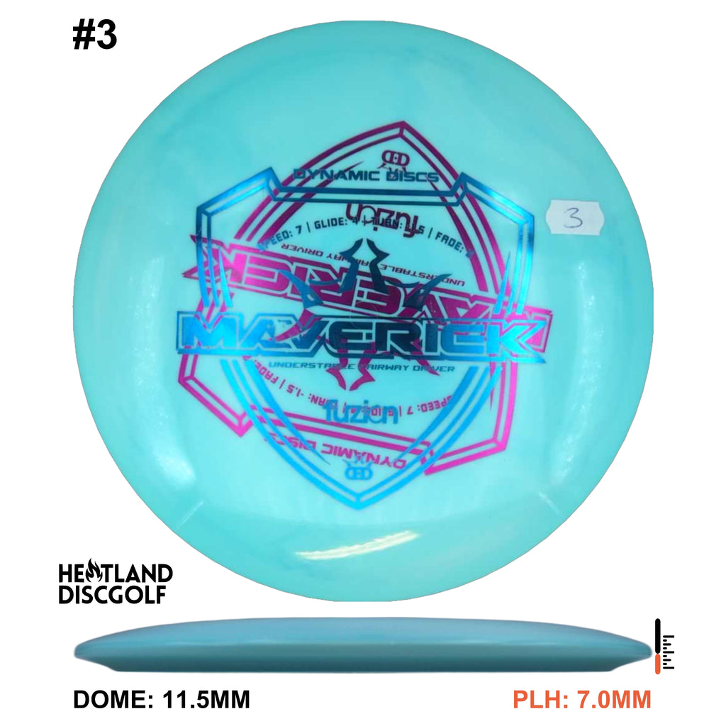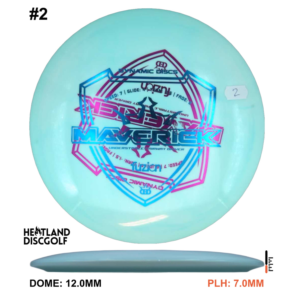The Maverick can fit in nearly every player’s bag. The Maverick's smaller rim offers controllable fairway speed and straighter flights for slower arms with trustworthy anhyzers and slow turns for experienced players. The Maverick shines in the woods with low ceilings and tunnel shots. Versatility and workable speed allow the Maverick to steal throws from even the most established bags.