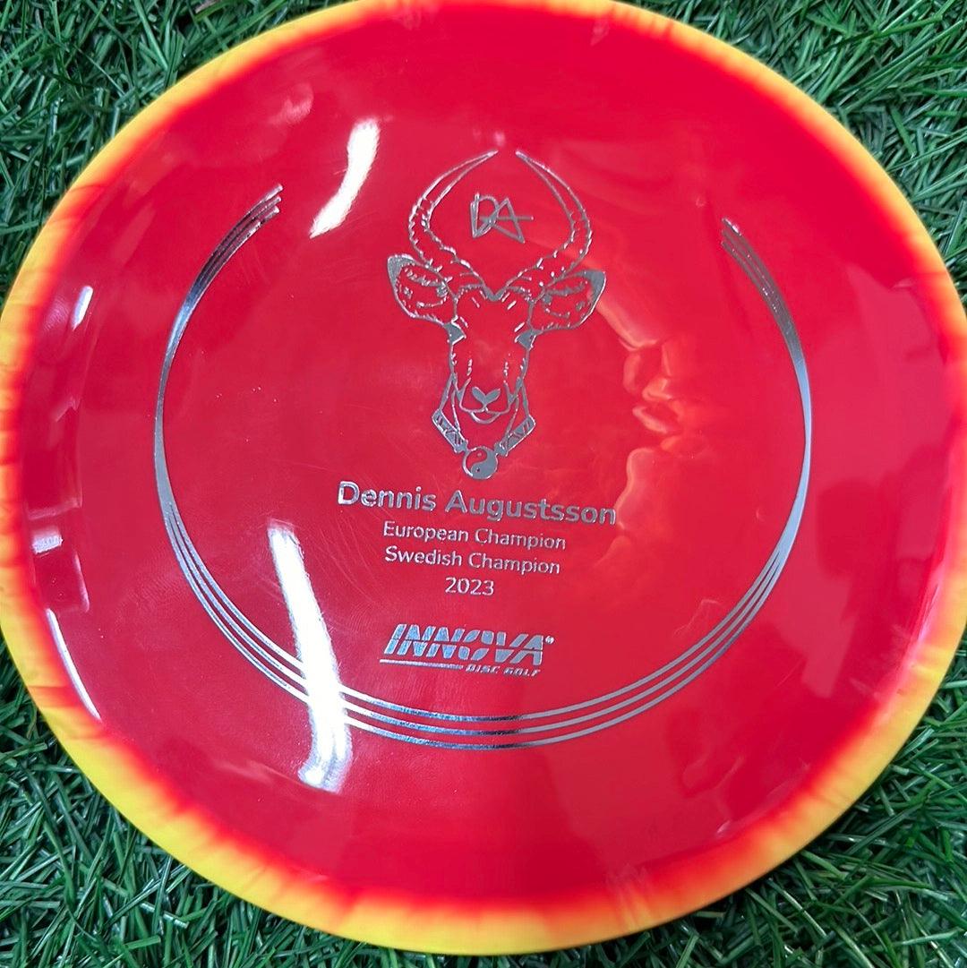 This is the Dennis Augustsson Commemorative Disc celebrating his accomplishments for the 2023 season winning and dominating the Swedish Championships and the European Championships.