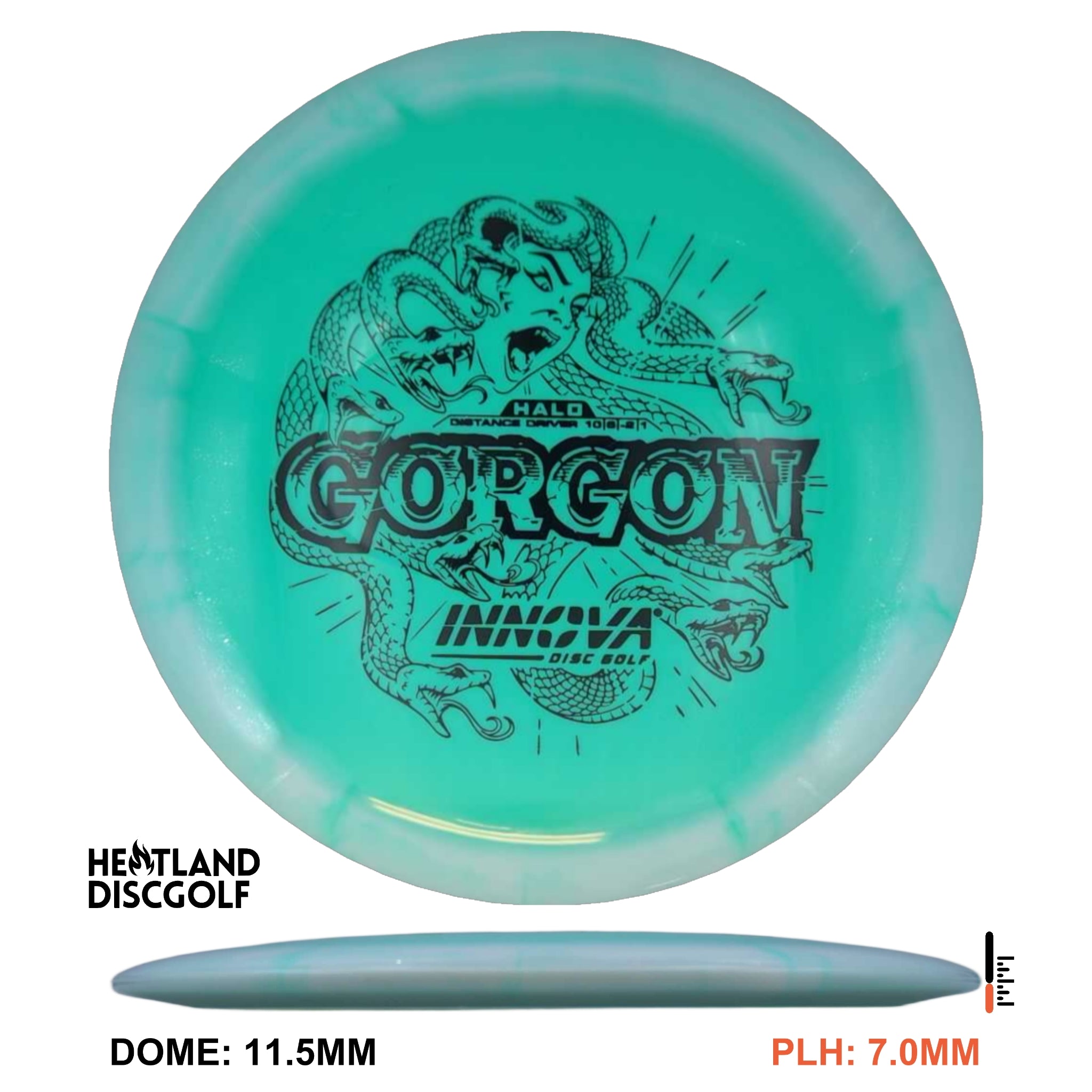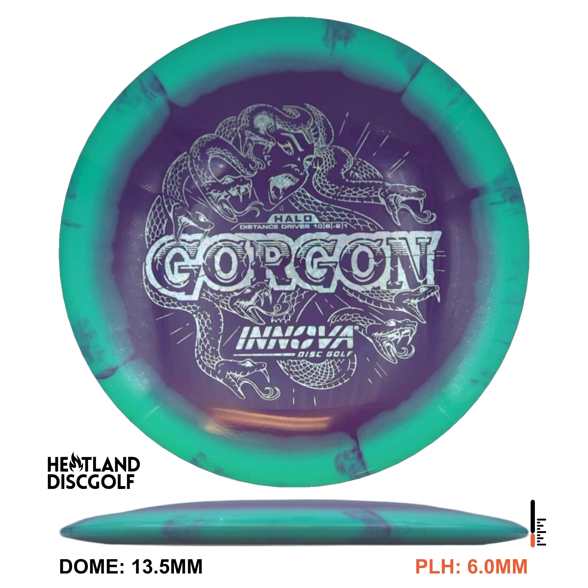 Introducing the Gorgon, a disc that merges the feel, precision, and ease of a Fairway Driver with the reach of a Distance Driver. Its flight? Arrow-straight glide with a steadfast fade, mirroring the Gorgon's unwavering gaze. Experience the legend—drive like a deity, conquer the course.