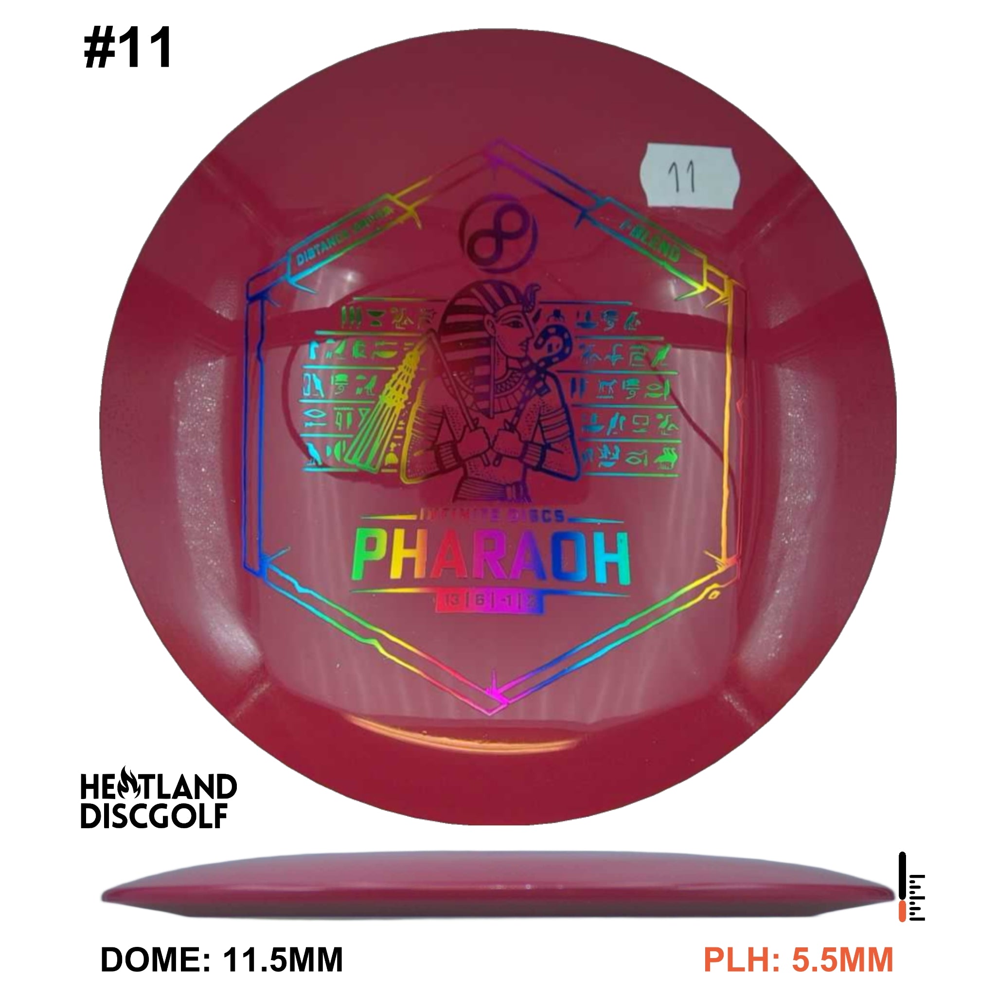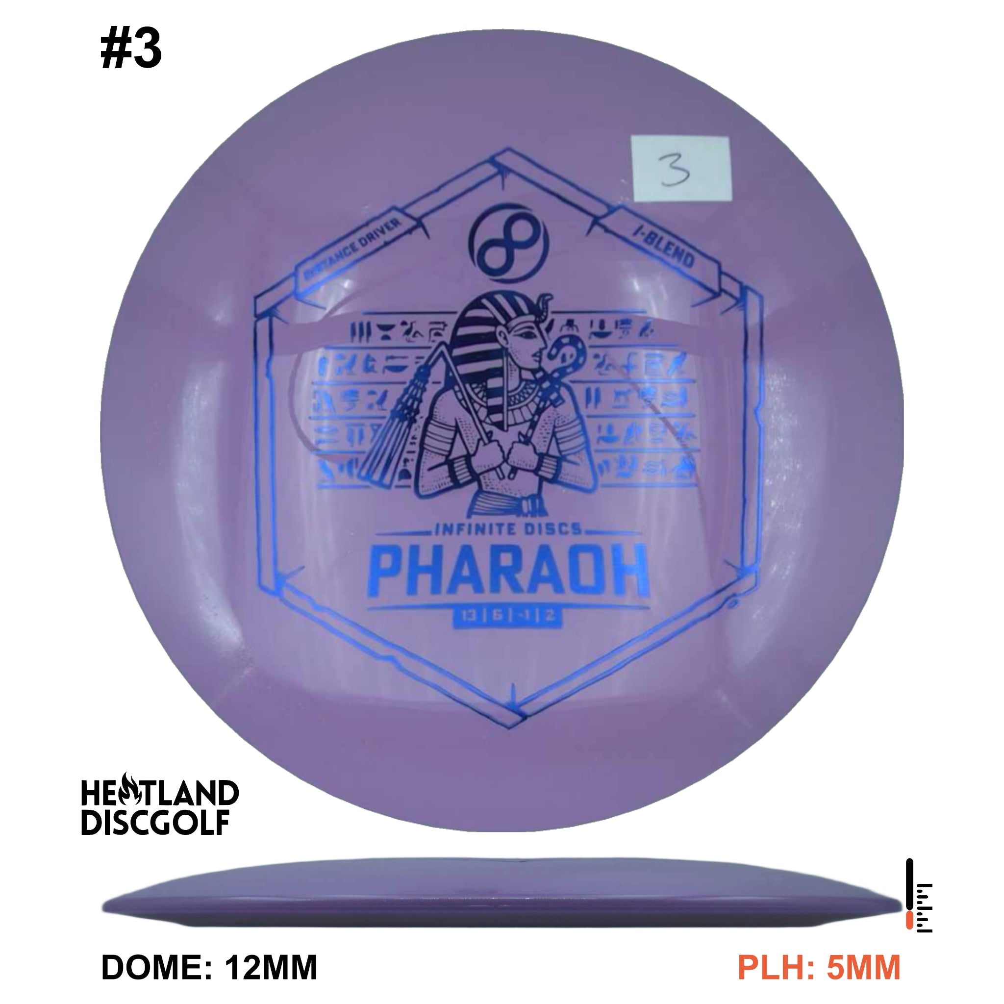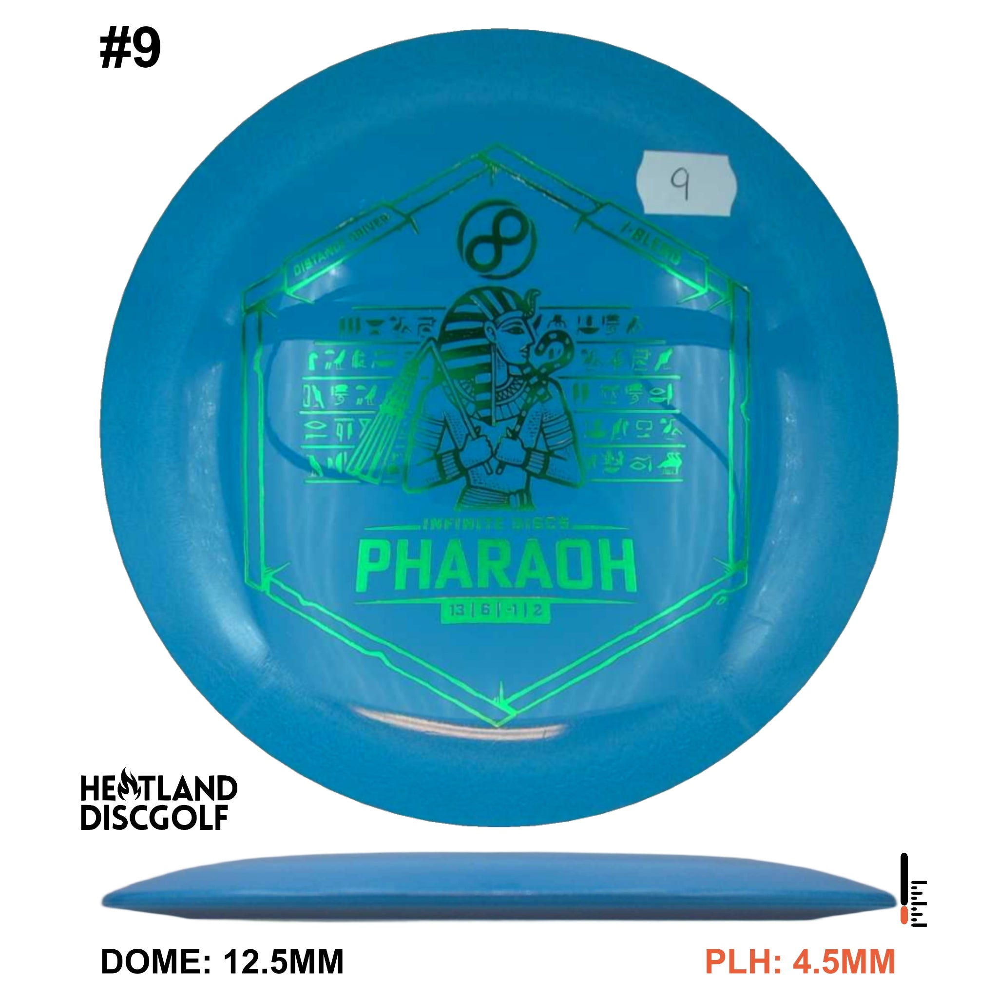 NOTE: The flight numbers may change on different runs. For example, the "Run 3" I-Blend Pharaoh is more understable and has a flight rating of 13 / 6 / -2 / 2 which is different than the first two runs which were on Swirly S-Blend plastic. The Run 5 Swirly S-Blend Pharaoh is more overstable than any previous run.